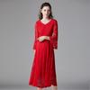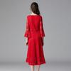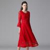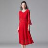 Vestido de mujer de talla grande europeo y americano de calidad otoño 2019 nuevo vestido de encaje ajustado con escote en V y cintura alta