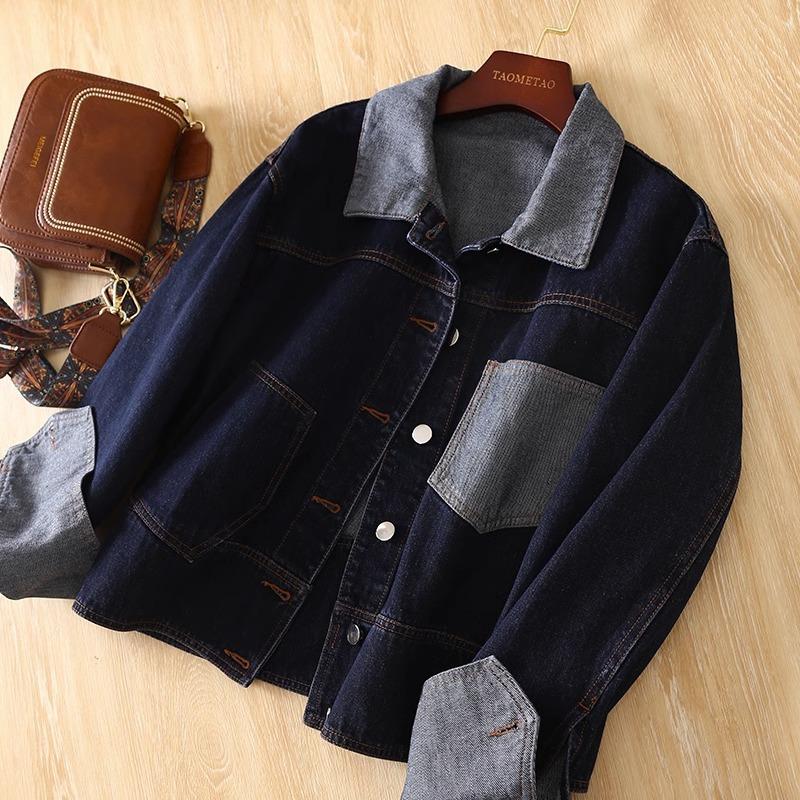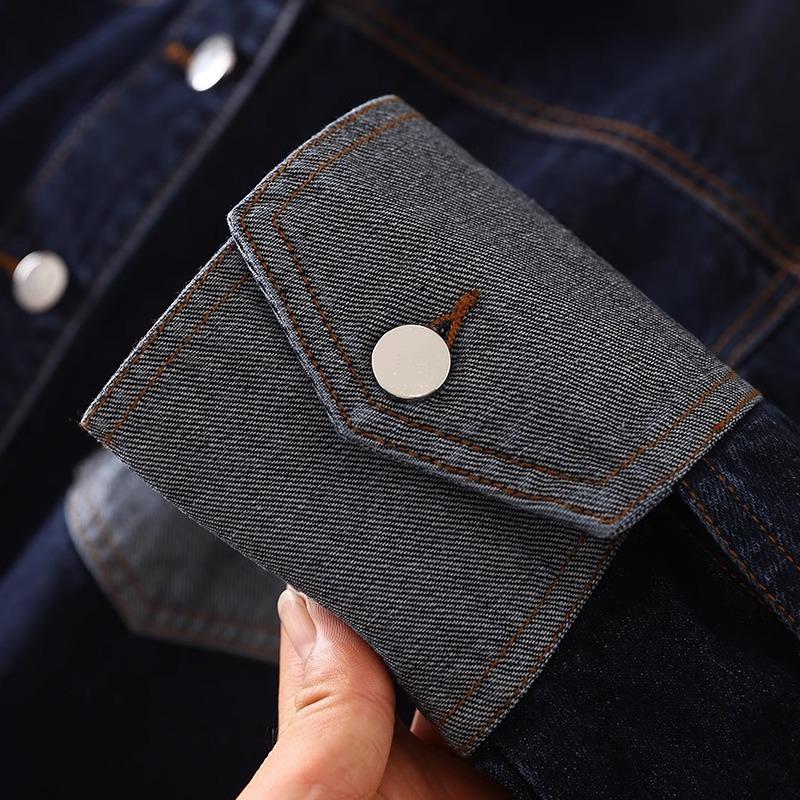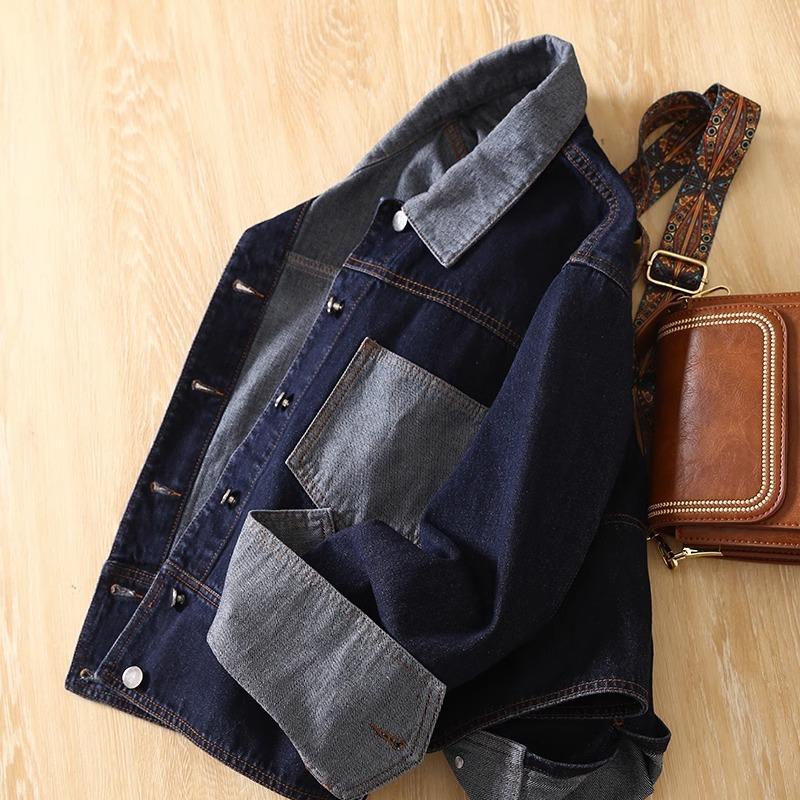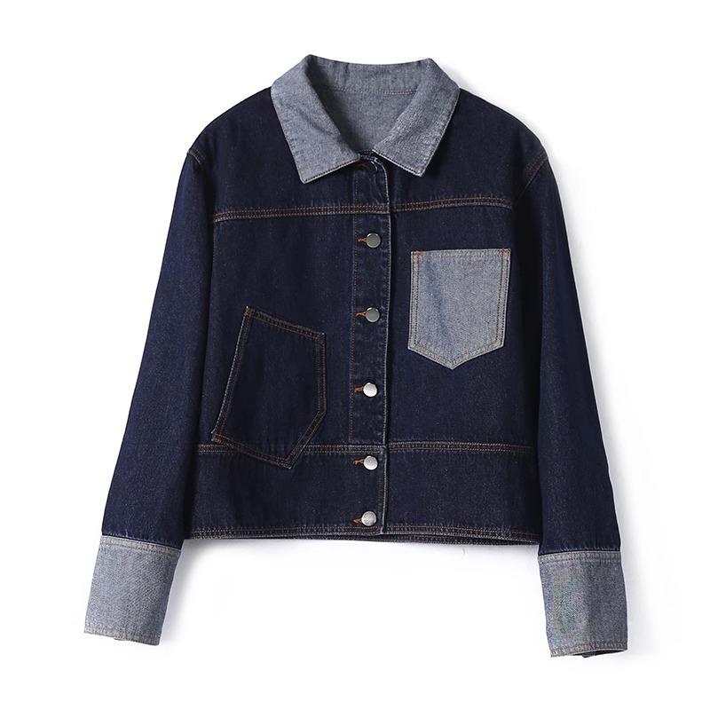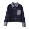 ¡Es de un gusto extraordinario y me queda pulcro y guapo! Abrigo de mezclilla de solapa de color contrastante lavado personalizado de nicho para mujer