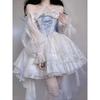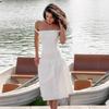 Vestido Francés Falda de Hada Mujer Socialité Verano 2025 Azul Marino Cuello Primer Amor Diseño de Falda Dulce