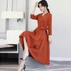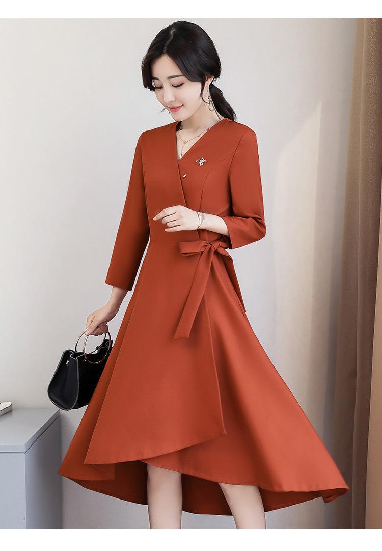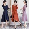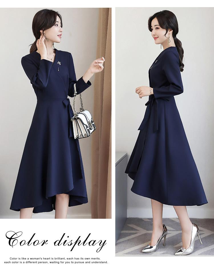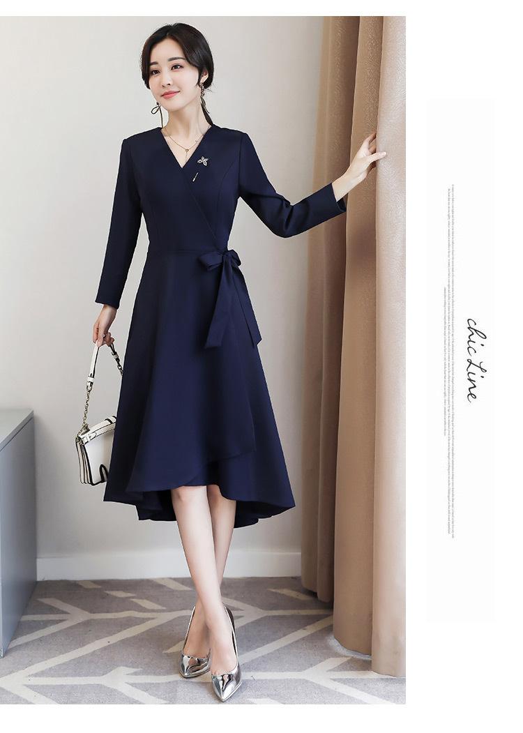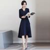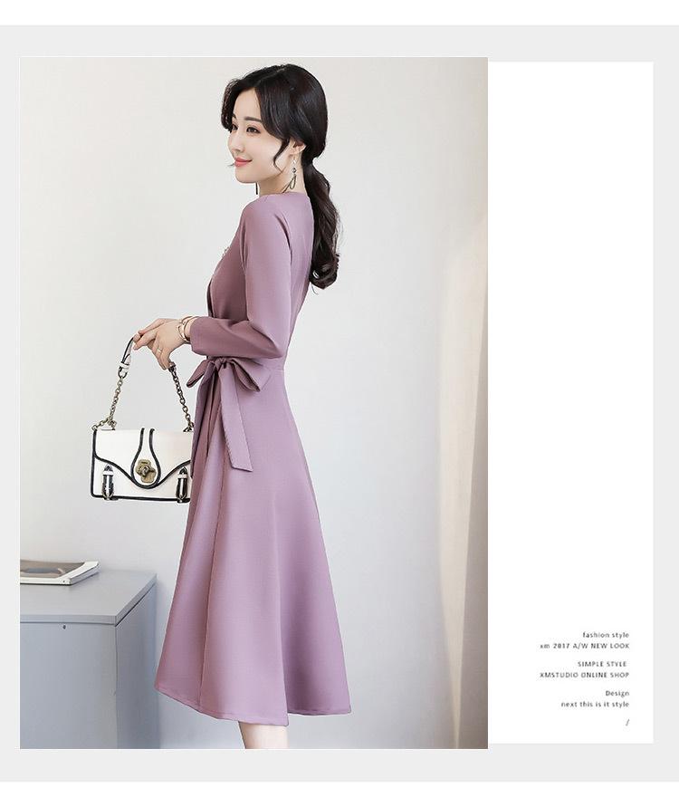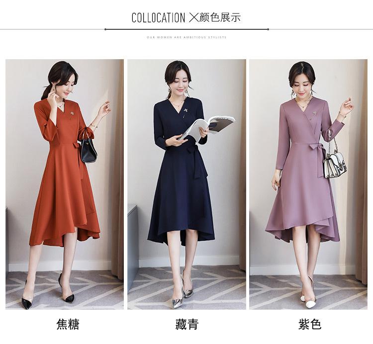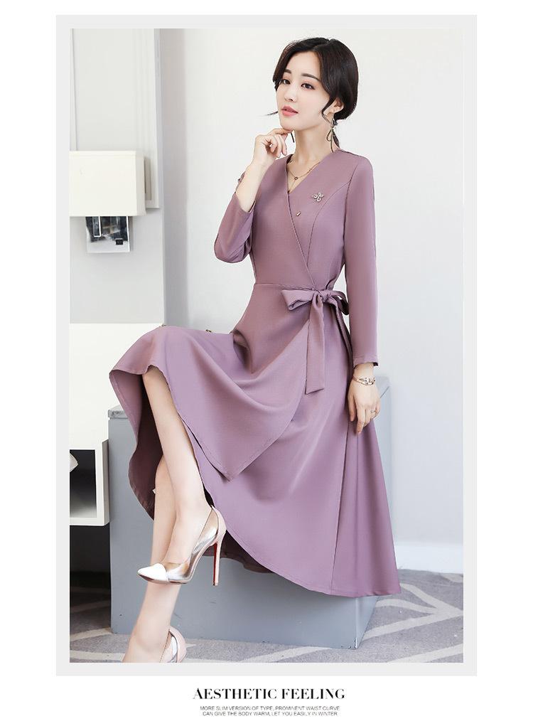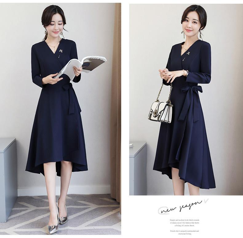 Vestido Elegante de Manga Larga con Cuello en V Nuevo de Primavera y Otoño Estilo Coreano Moderno Vestido Cola de Pato Largo Vestido Midi de Vuelo Amplio