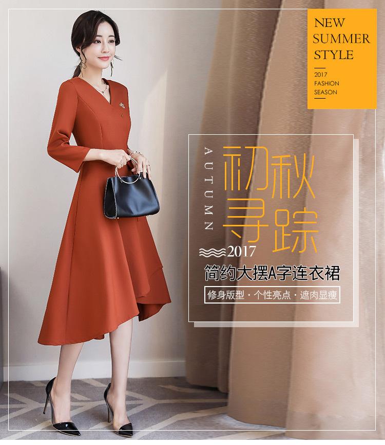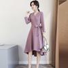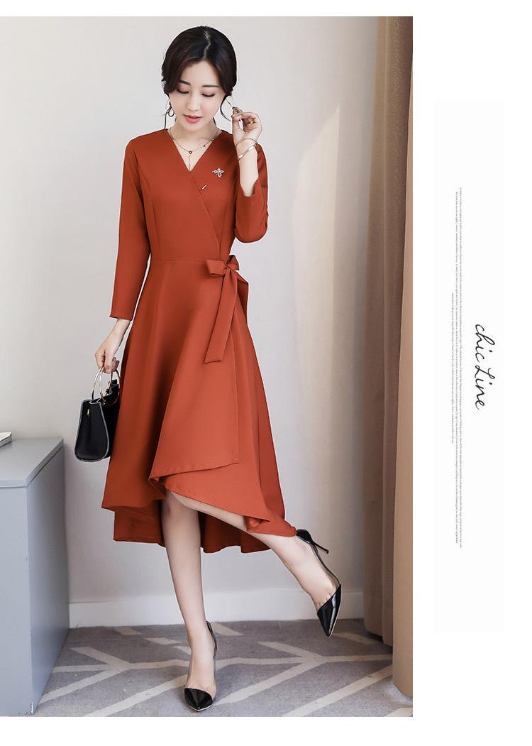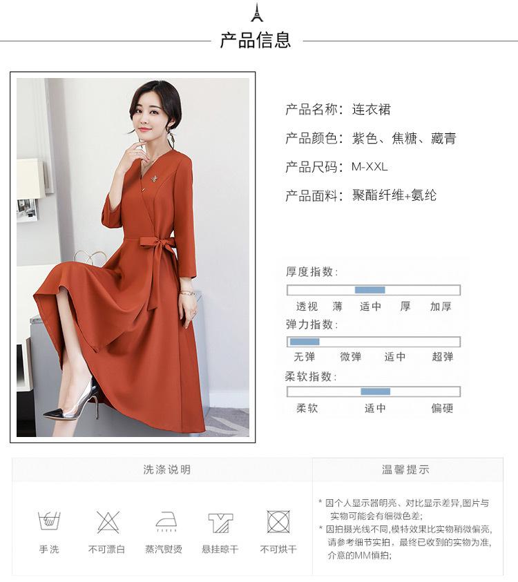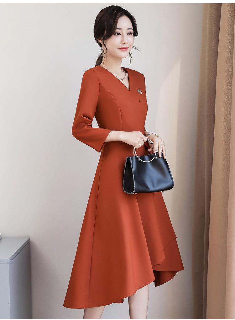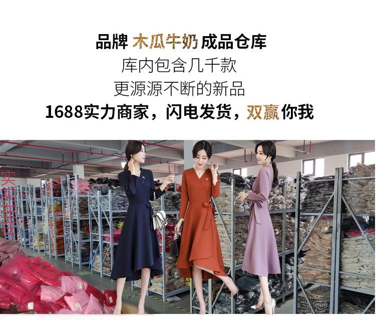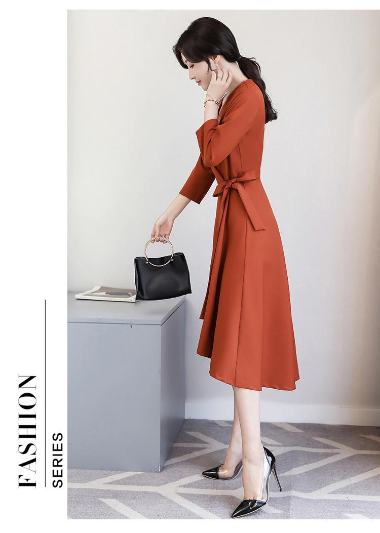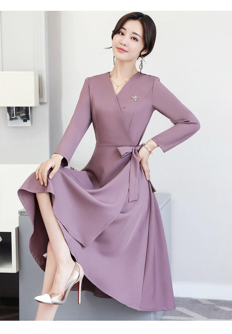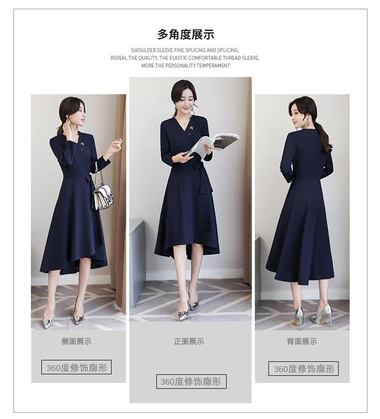 Vestido Elegante de Manga Larga con Cuello en V Nuevo de Primavera y Otoño Estilo Coreano Moderno Vestido Cola de Pato Largo Vestido Midi de Vuelo Amplio