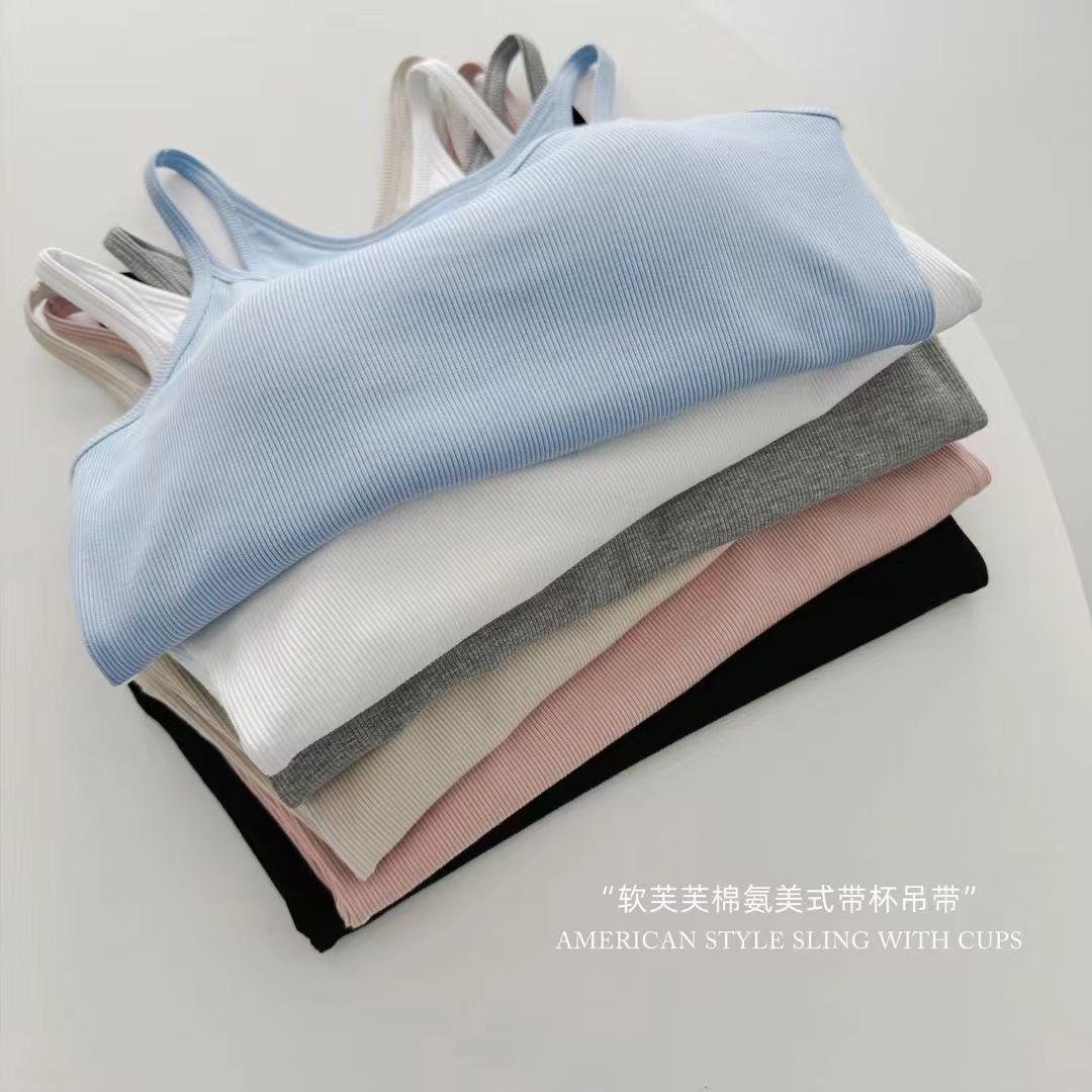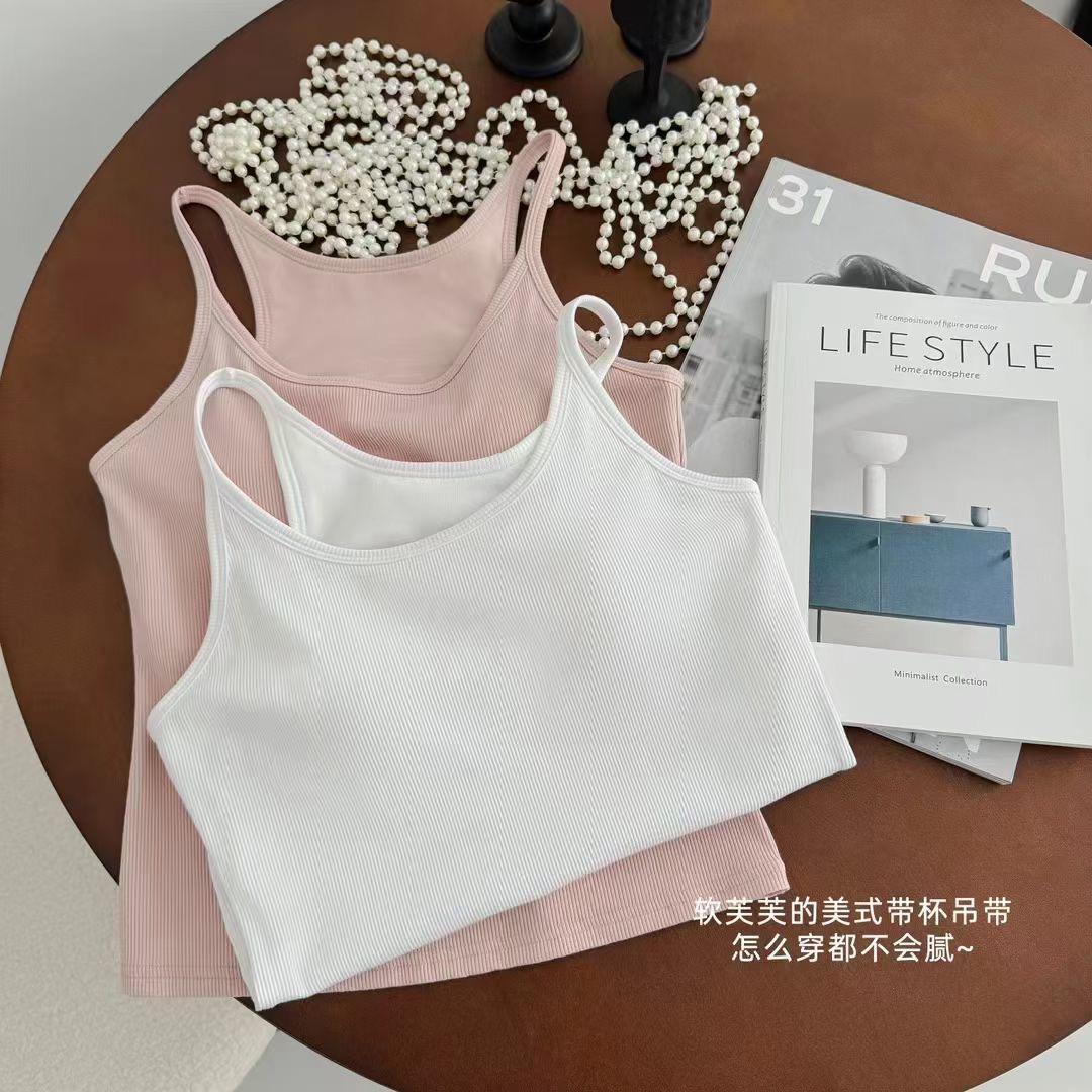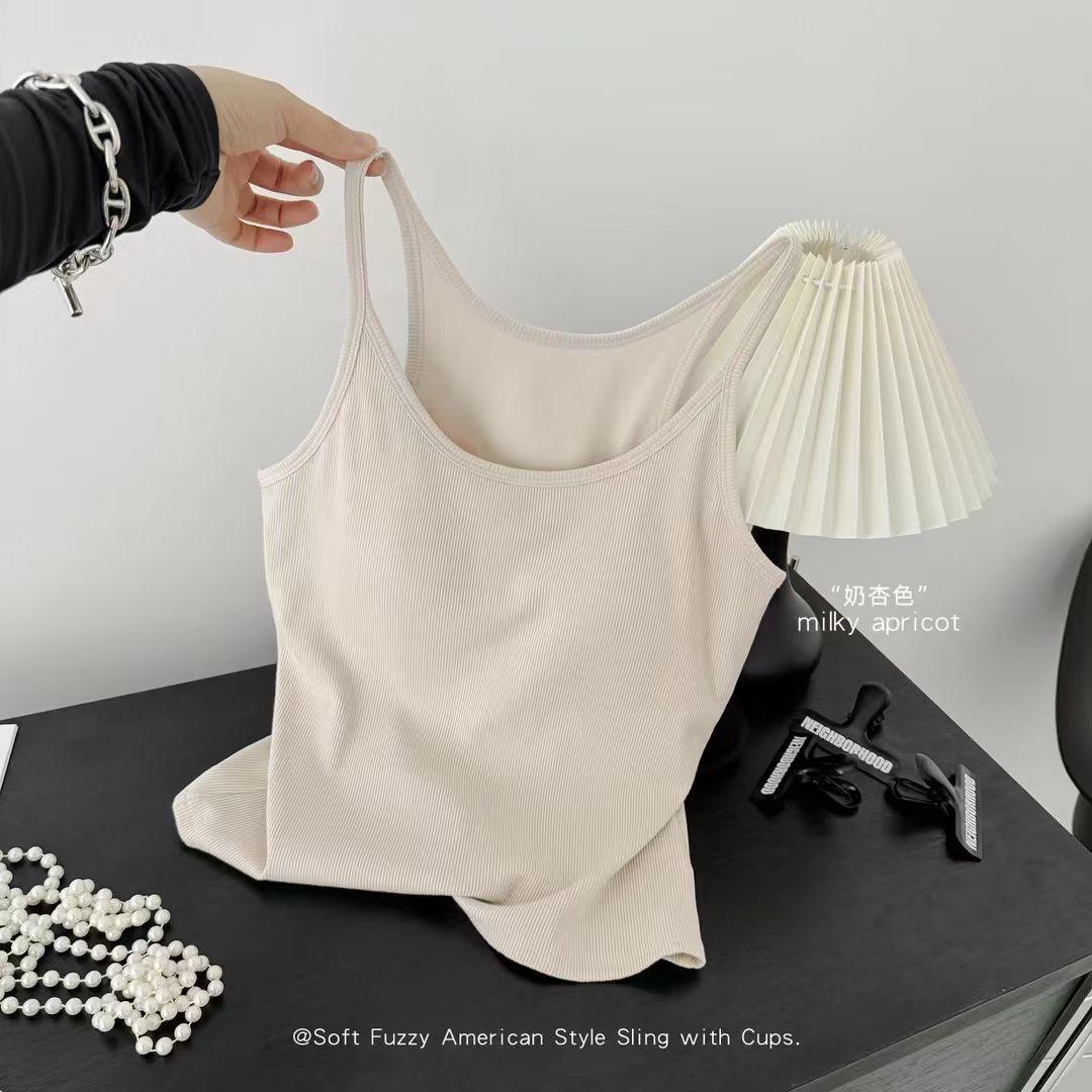 Tirantes Finos, Cabestrillo de Una Copa, Capa Interior Elástica Acanalada, Chaleco Delgado de Color Puro, Ropa Exterior, Hermoso Top de Tubo para la Espalda Íntimos