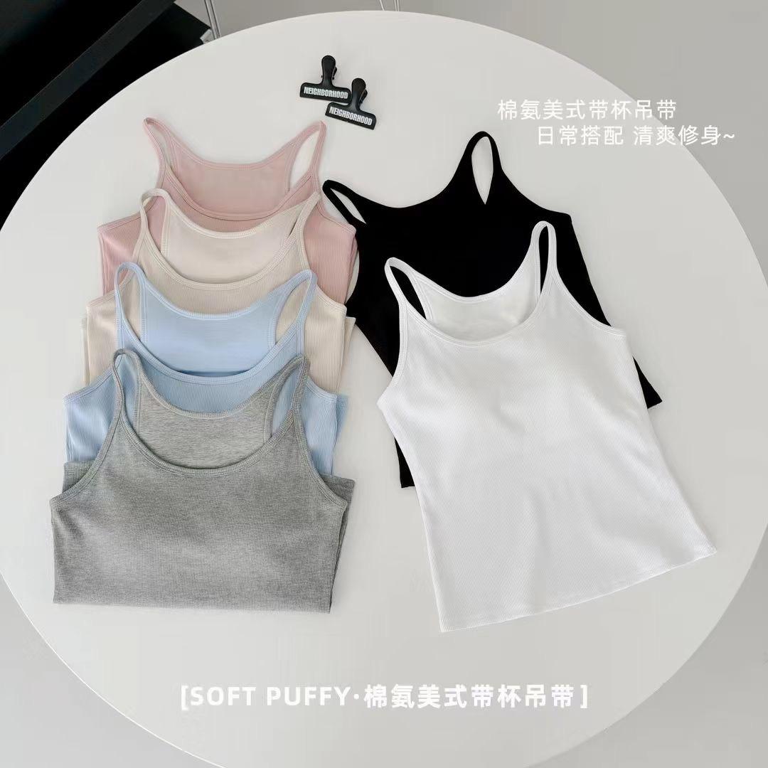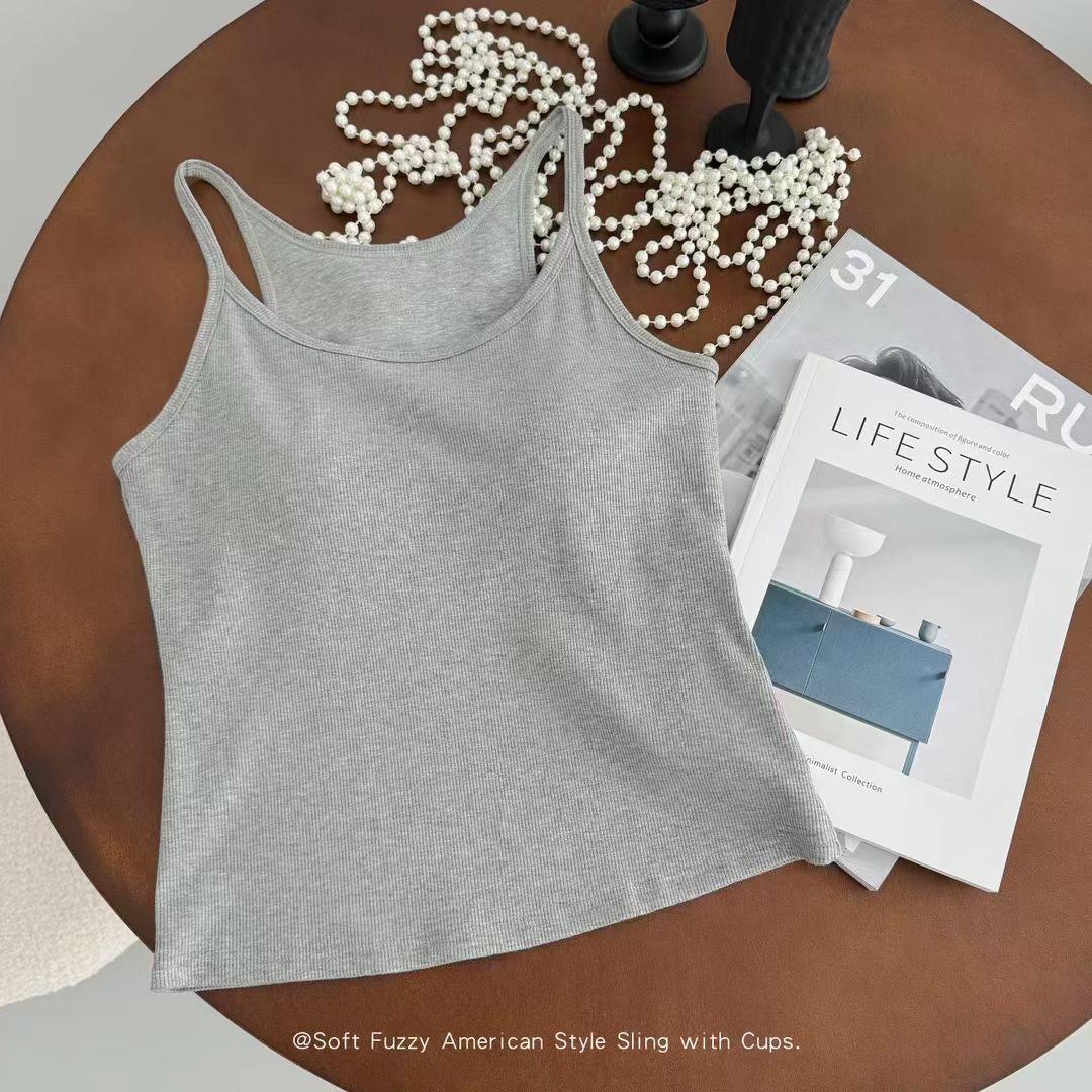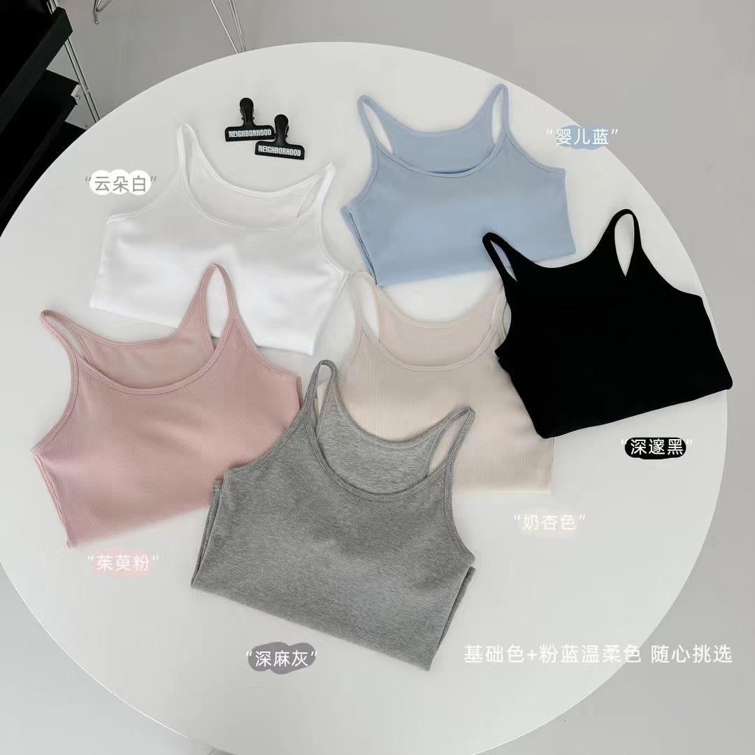 Tirantes Finos, Cabestrillo de Una Copa, Capa Interior Elástica Acanalada, Chaleco Delgado de Color Puro, Ropa Exterior, Hermoso Top de Tubo para la Espalda Íntimos