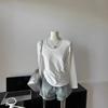 2023 Primavera y Otoño Nueva Camiseta Blanca Sencilla de Manga Larga para Mujer Camisa de Base de Moda Superior