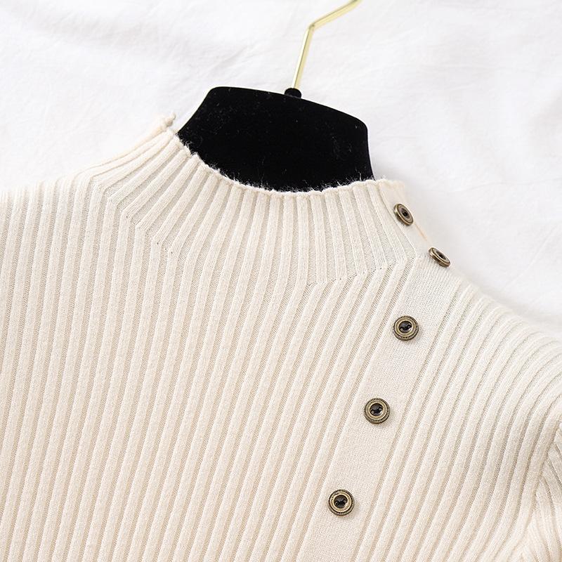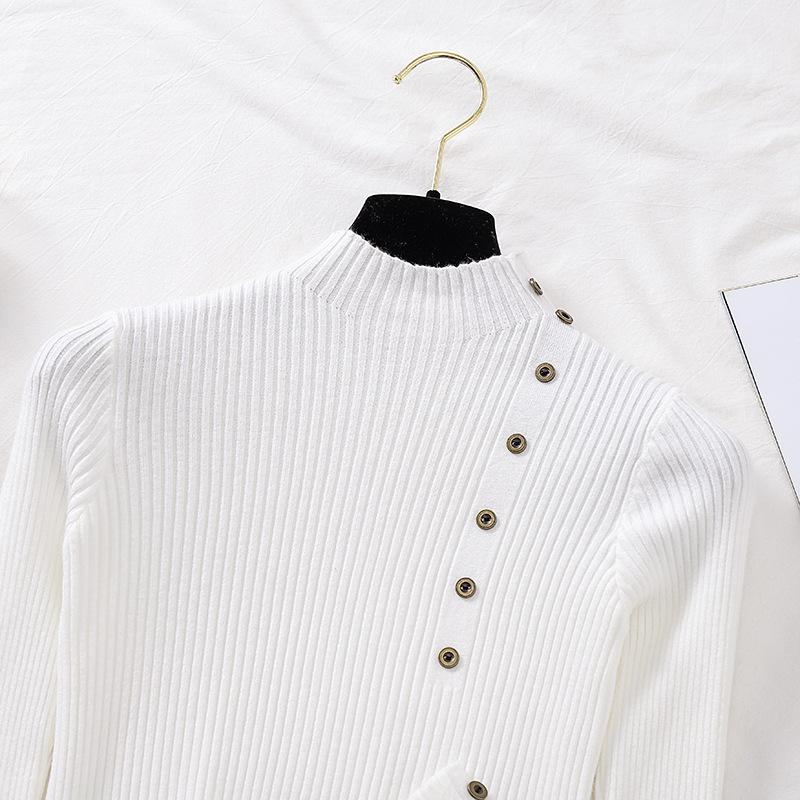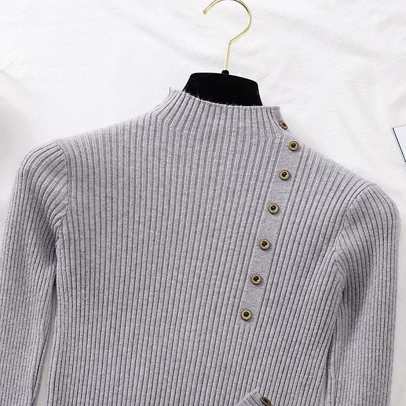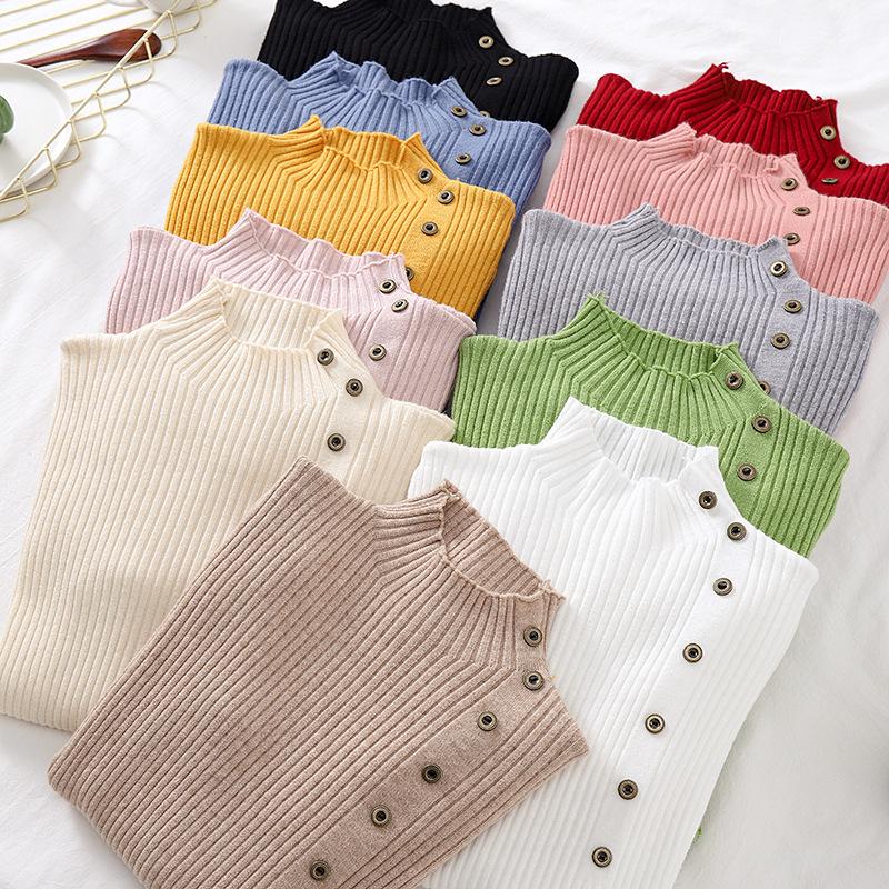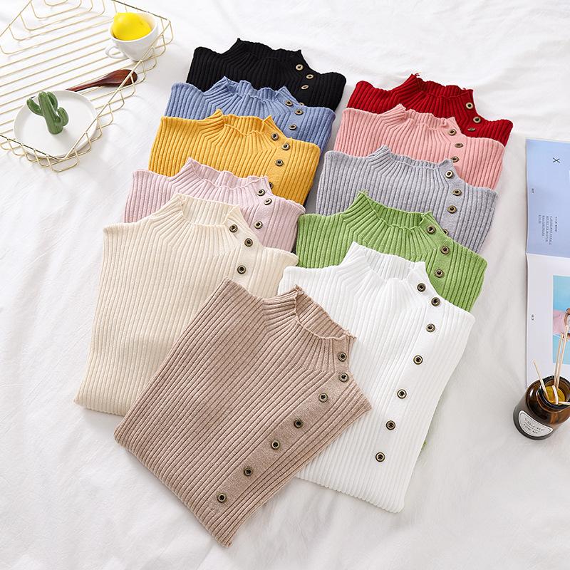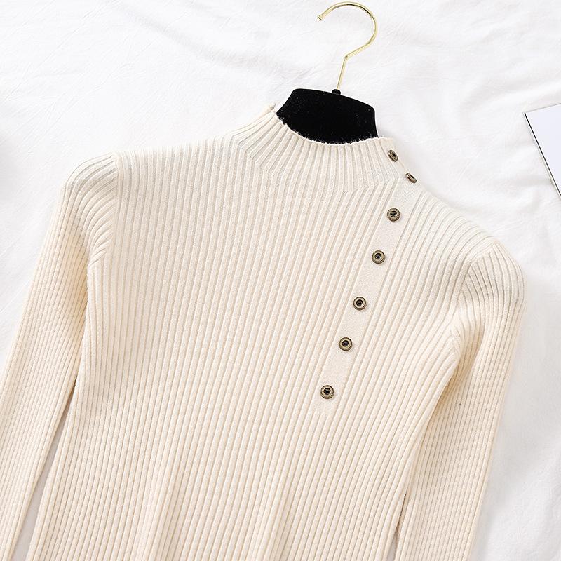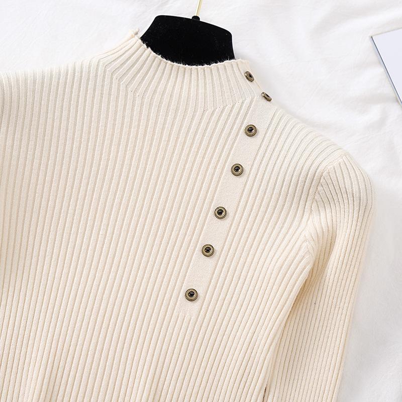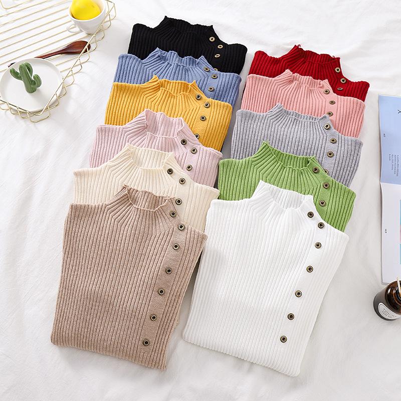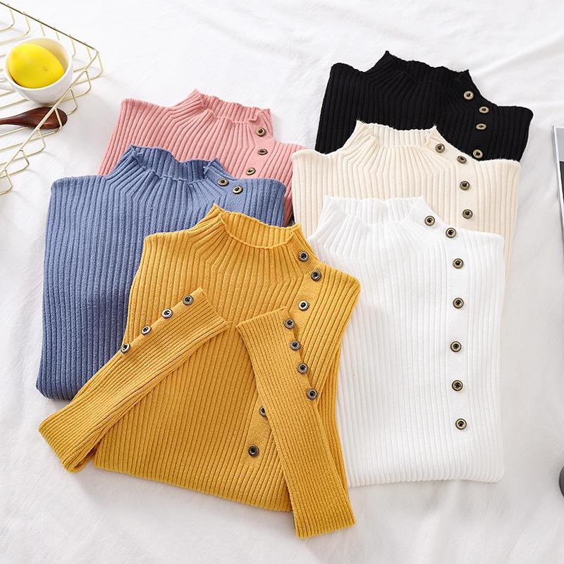 Suéter de Cuello Alto Medio Ropa Exterior para Mujer Nuevo Estilo 2023 Otoño e Invierno Estilo para Mujer Top de Punto Ajustado Camiseta Básica Mangas Largas para Mujer