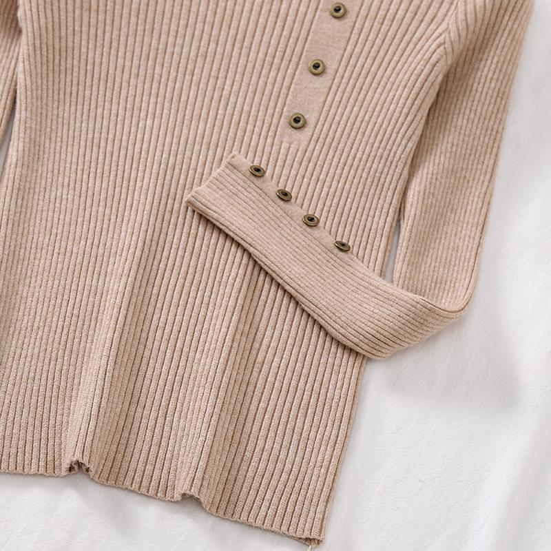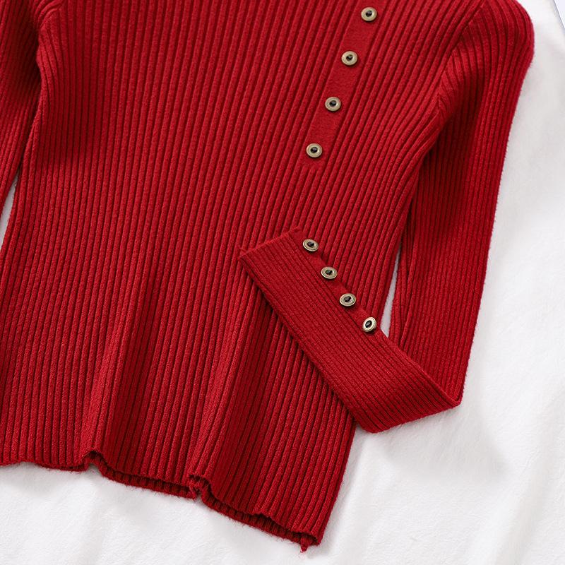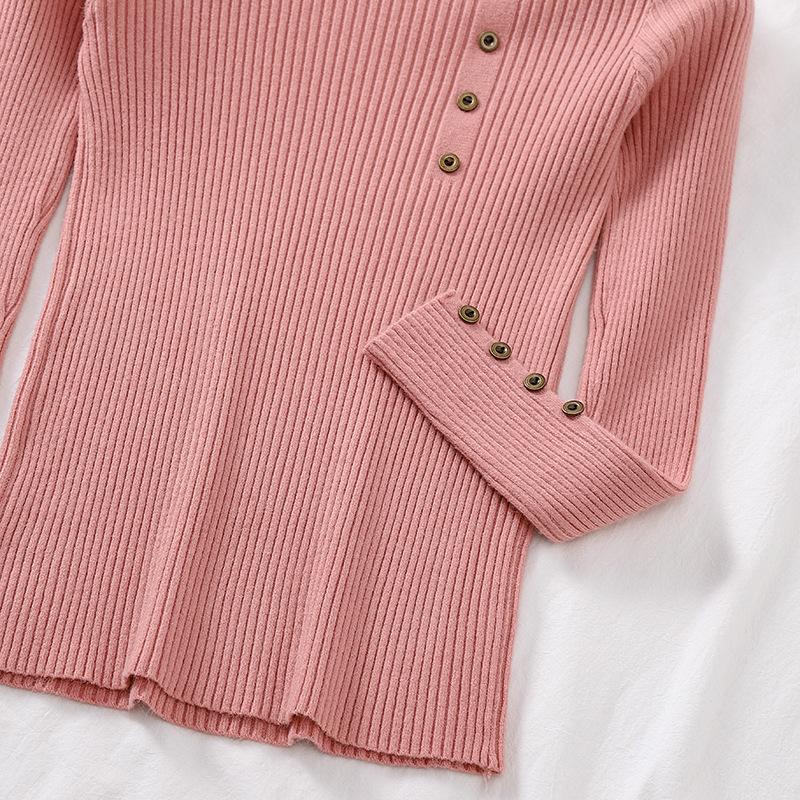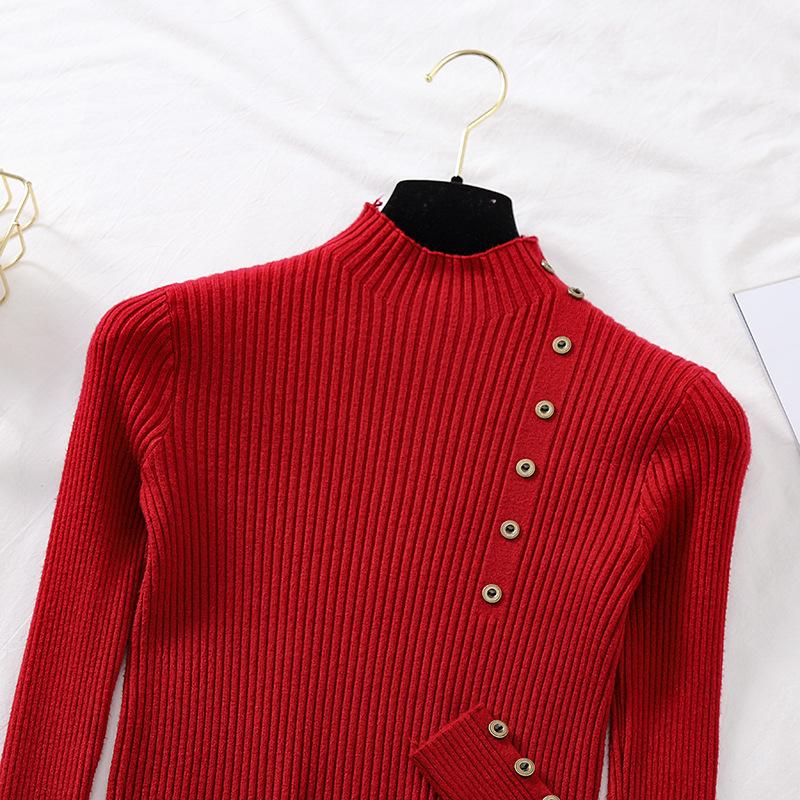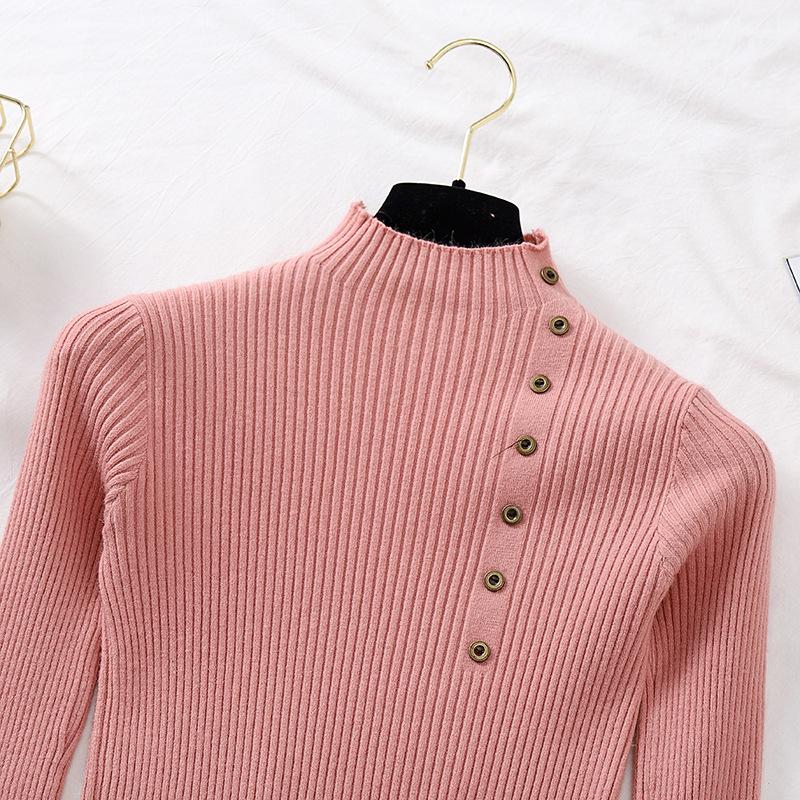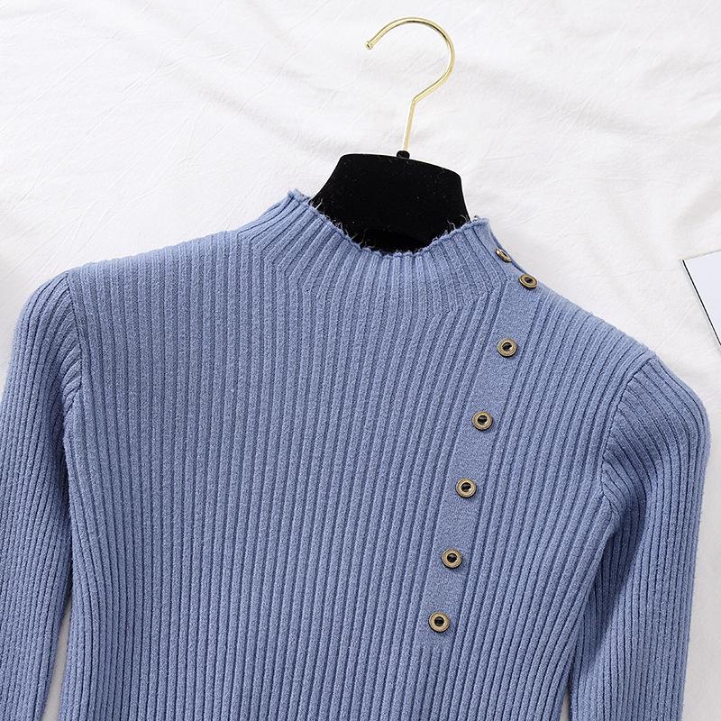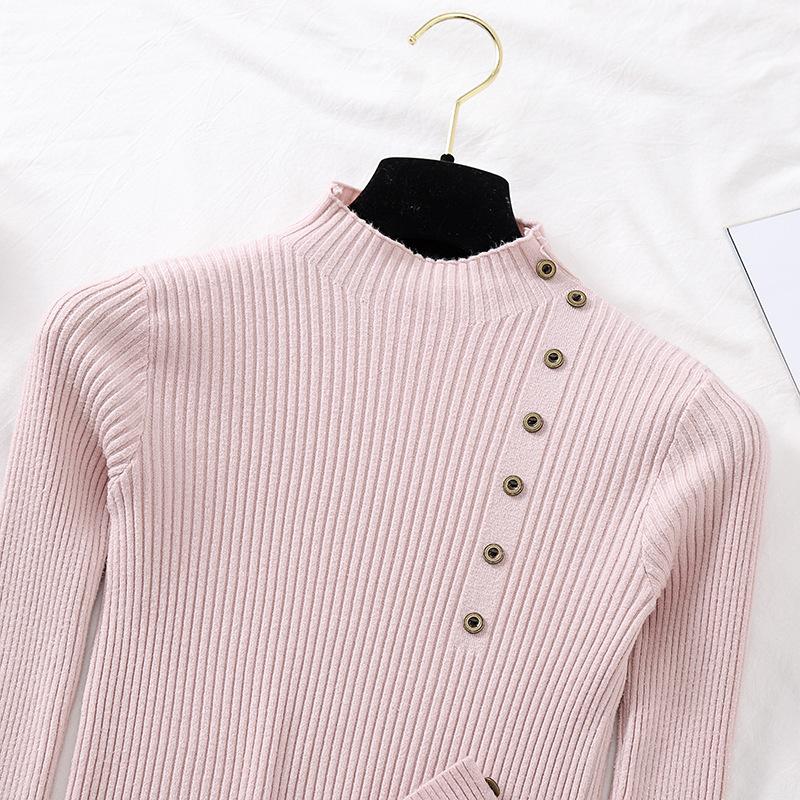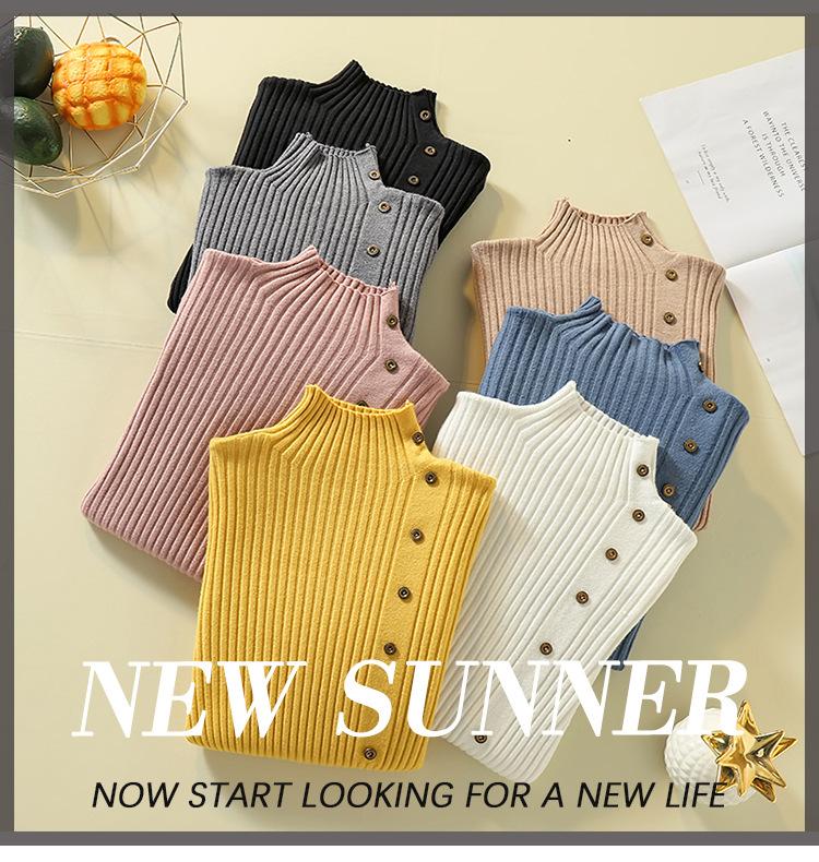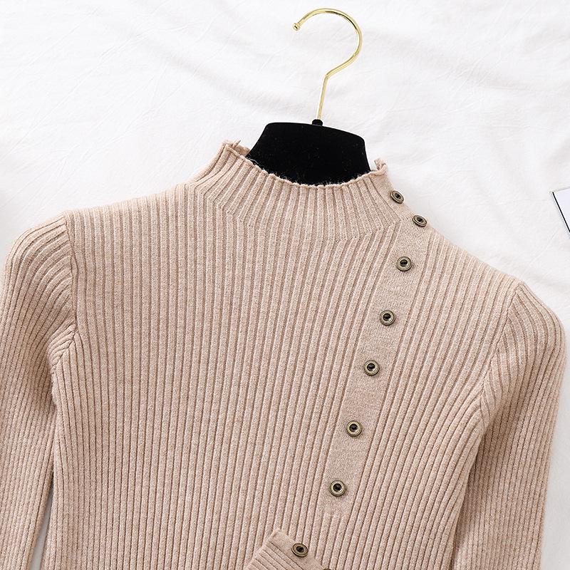 Suéter de Cuello Alto Medio Ropa Exterior para Mujer Nuevo Estilo 2023 Otoño e Invierno Estilo para Mujer Top de Punto Ajustado Camiseta Básica Mangas Largas para Mujer