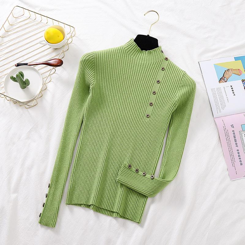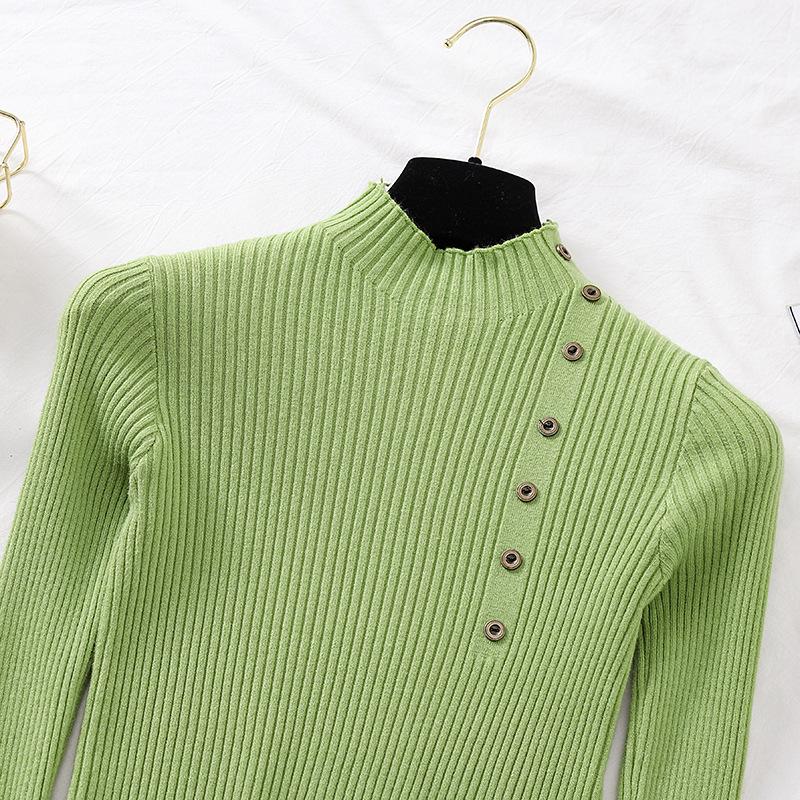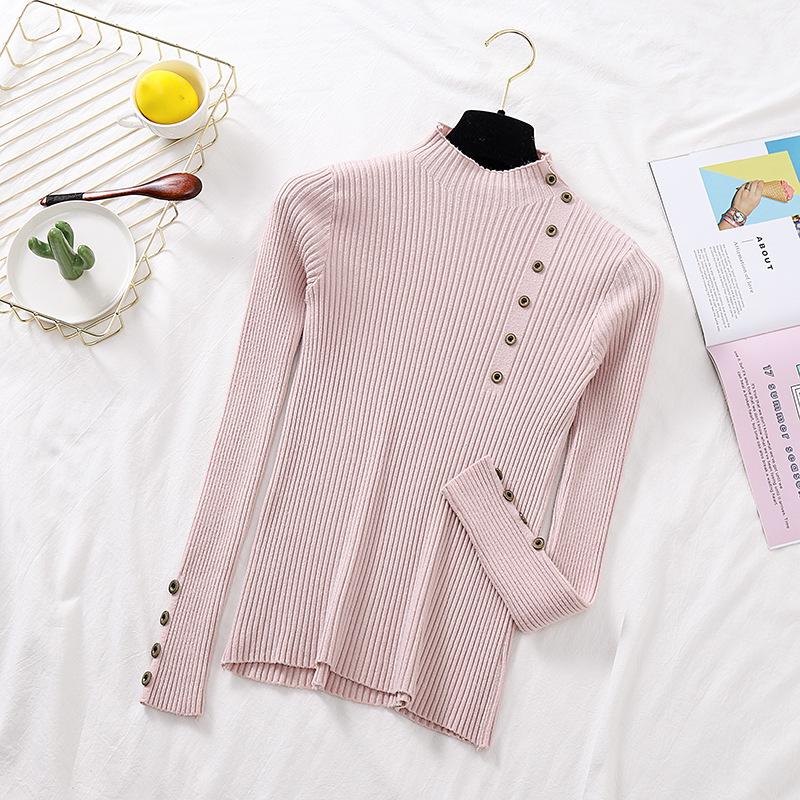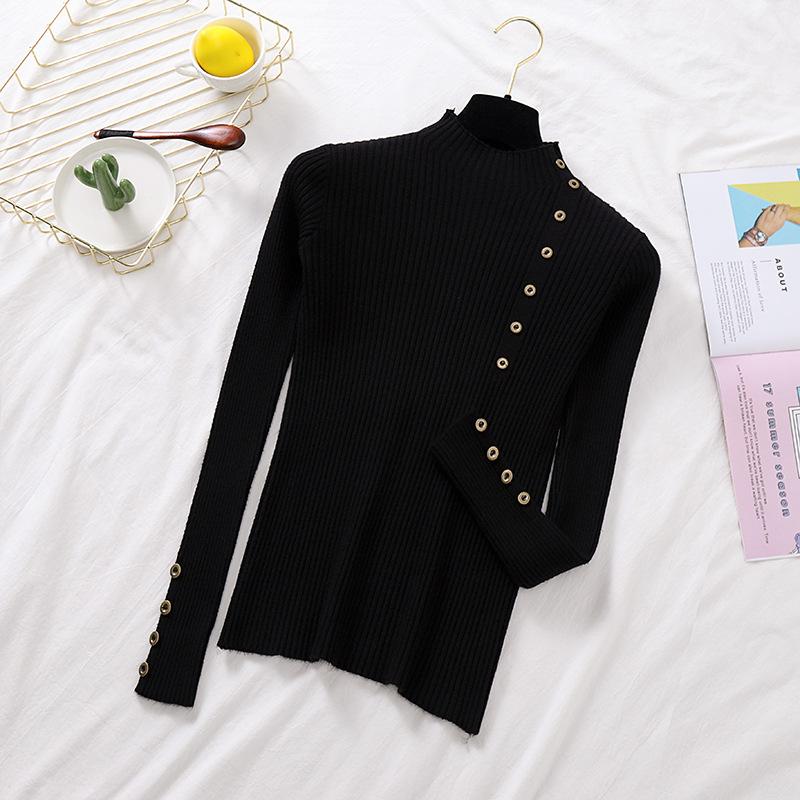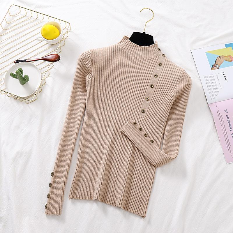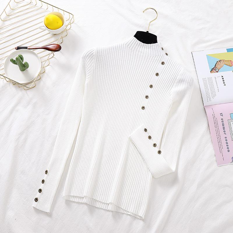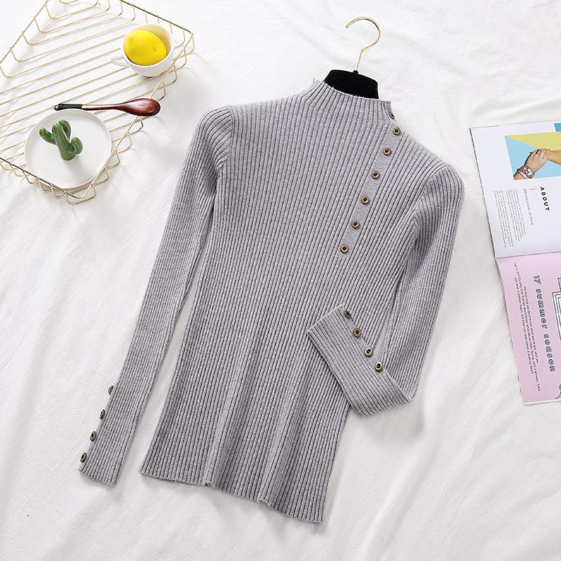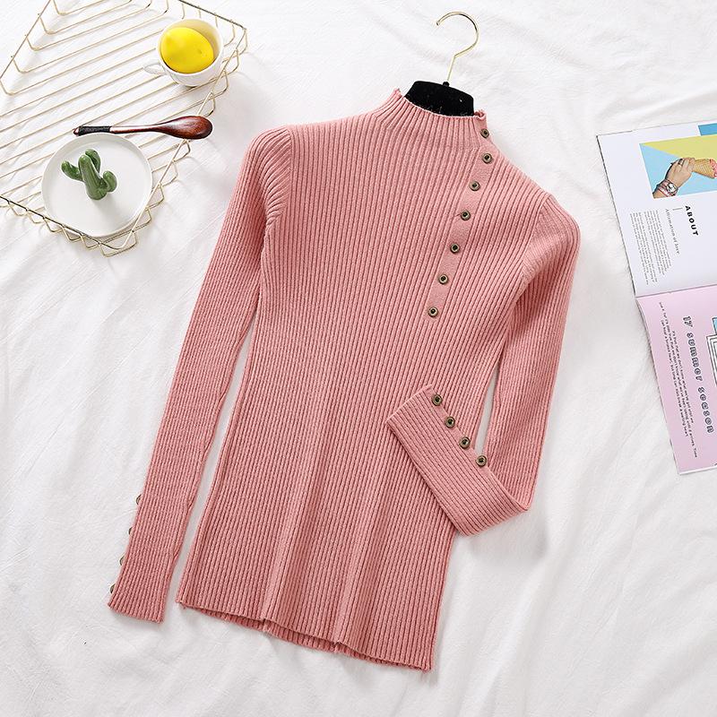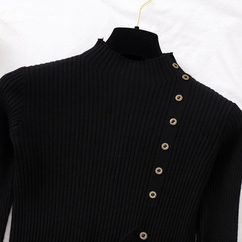 Suéter de Cuello Alto Medio Ropa Exterior para Mujer Nuevo Estilo 2023 Otoño e Invierno Estilo para Mujer Top de Punto Ajustado Camiseta Básica Mangas Largas para Mujer