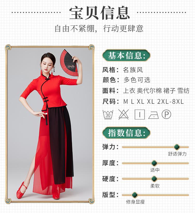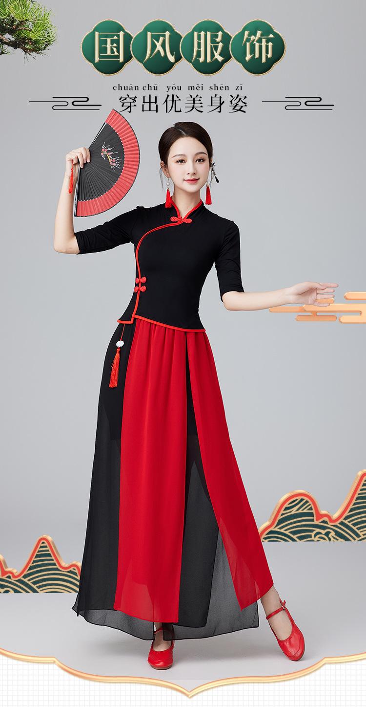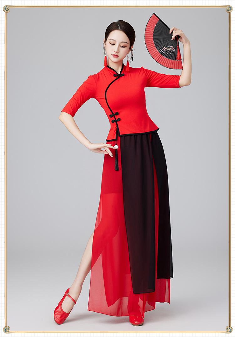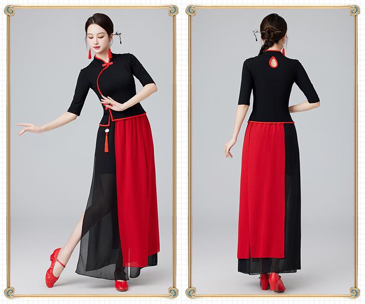 2402 Ropa de Danza Clásica Nueva Cuello Mao Ropa de Danza Top O'Dell Falda Elegante de Gasa Ropa de Actuación para Danza Cuadrada