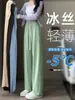 Pantalones de traje de seda fría con protección solar para mujer, de verano, finos, estrechos, informales, de pierna recta y ancha, novedad de 2024