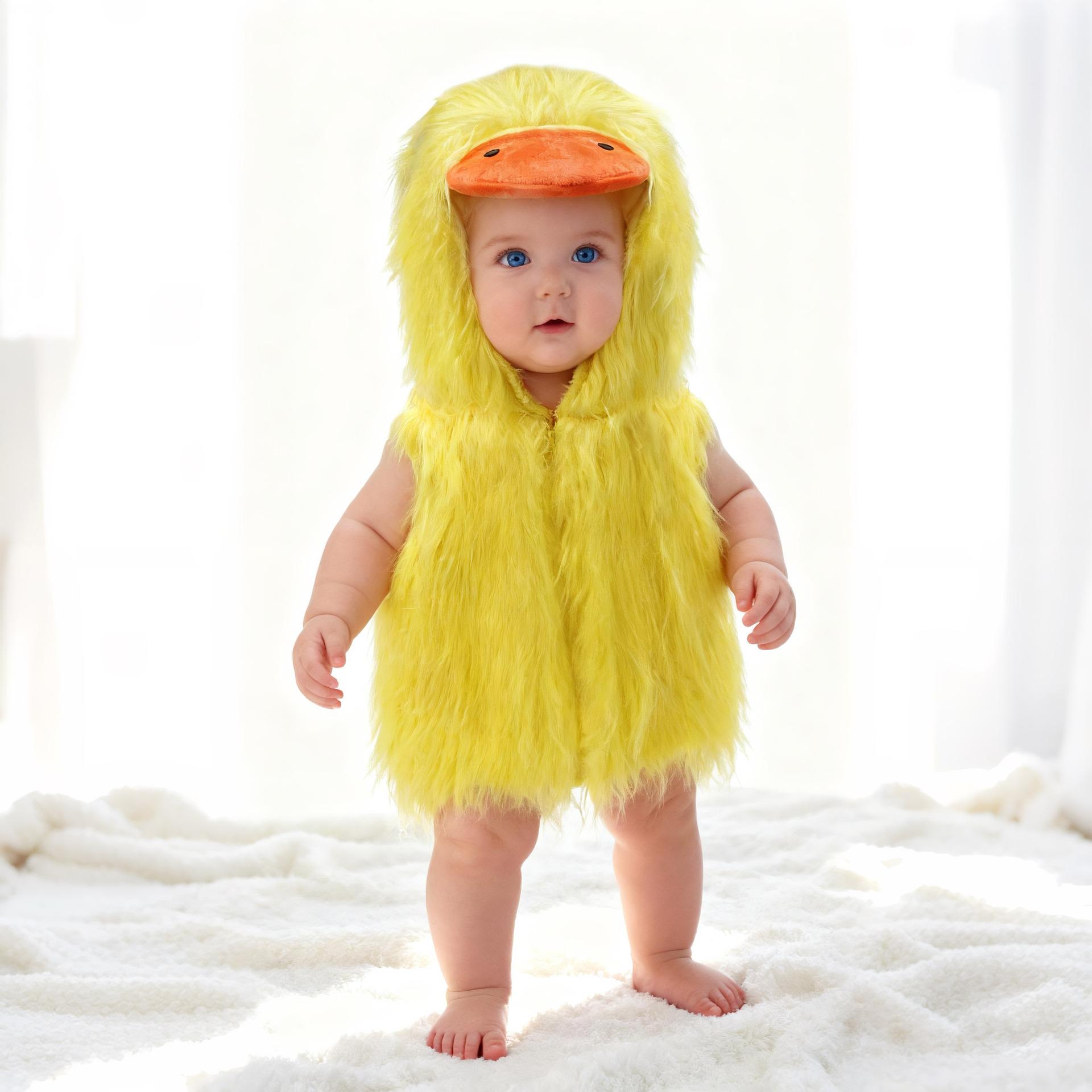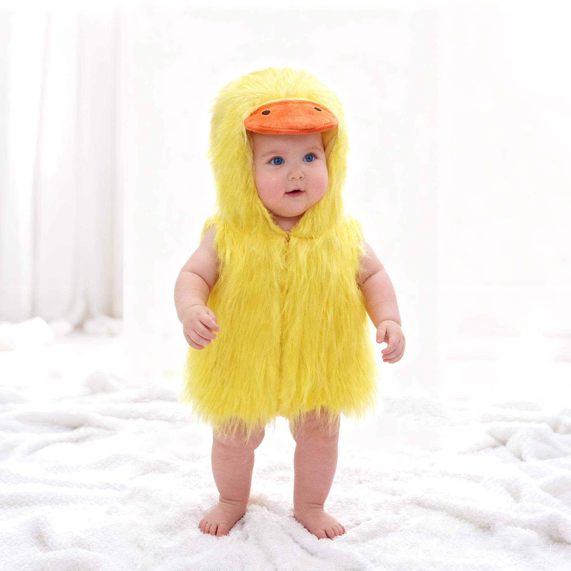 2025 Nuevo Halloween Nuevo Disfraz Patito Amarillo Infantil Chaleco con Capucha Juego de Roles Divertido Vestido de Escenario