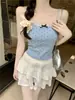 Estilo Coreano Estilo Deseo Puro Lazo Encaje Onda Lunares Camisola Chaleco Adelgazante Casual para Mujer con Almohadilla en el Pecho