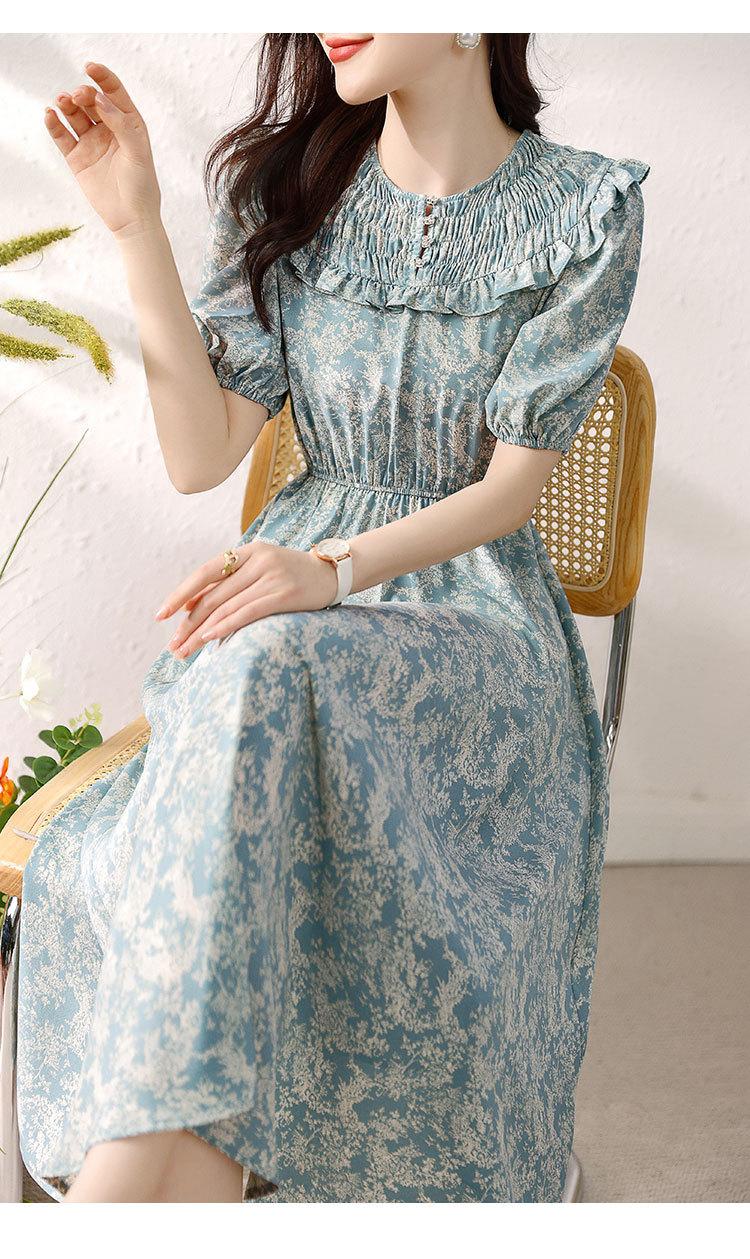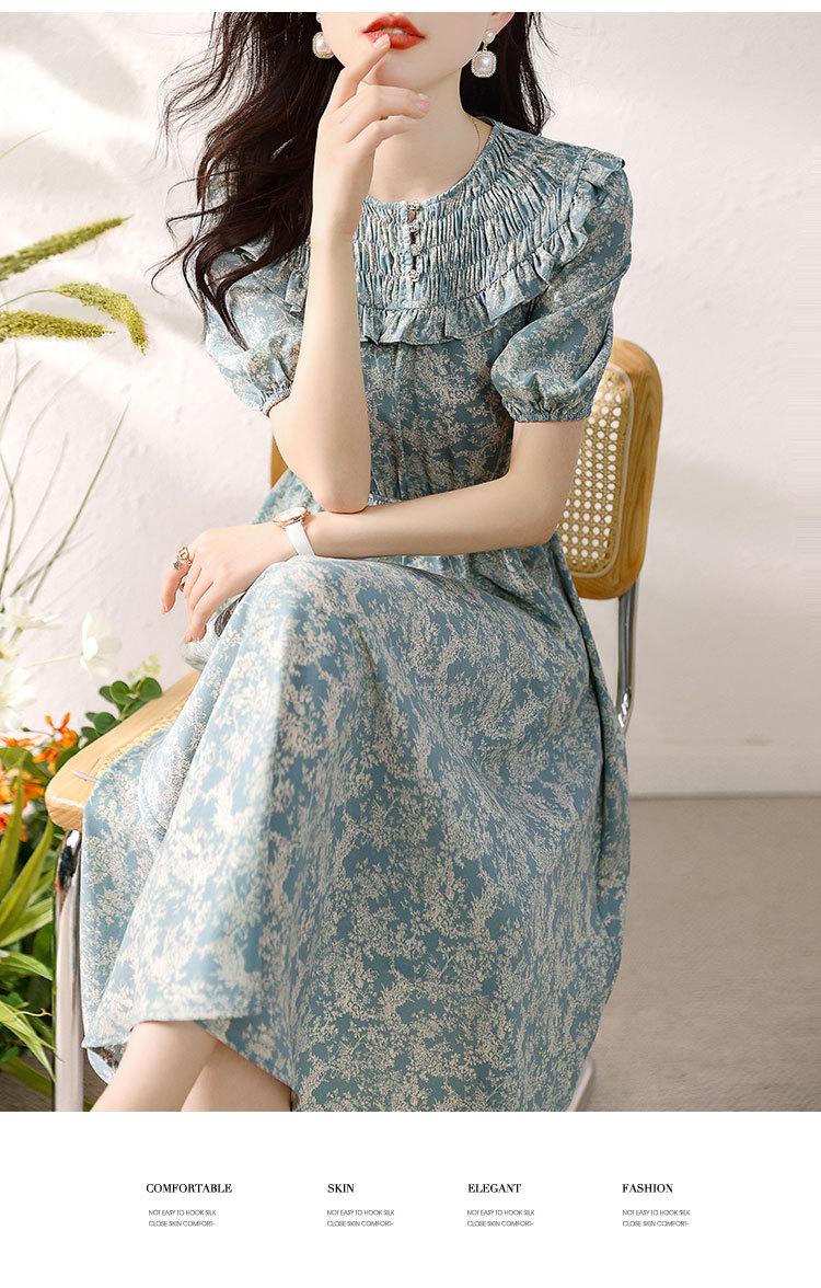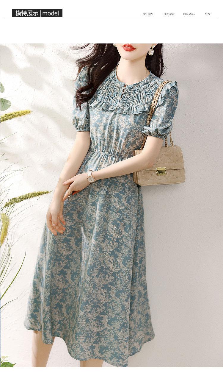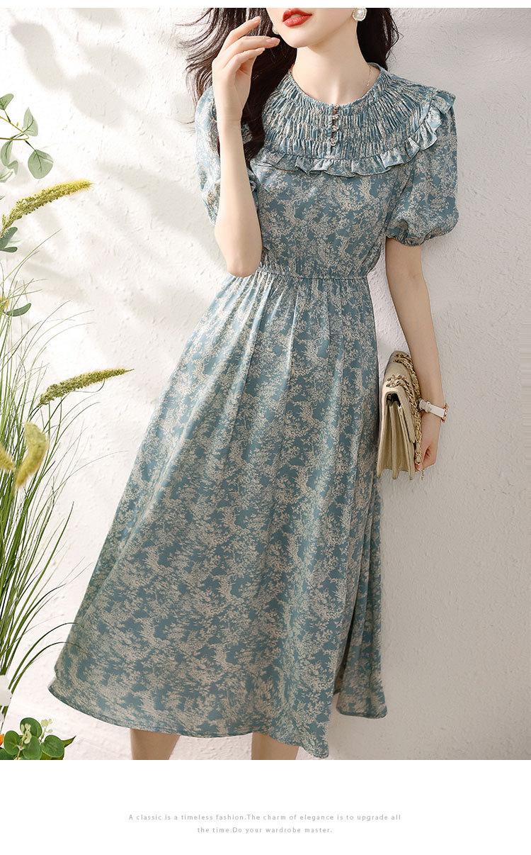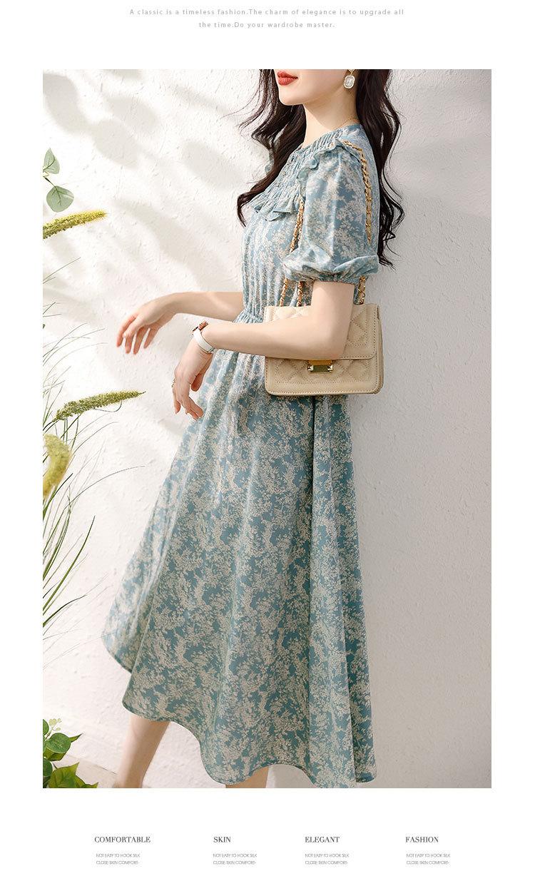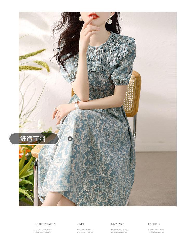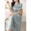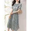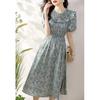2025 Nuevo Estilo de Verano Elegante Falda con Cuello de Encaje Adelgazante de Cintura Vestido Floral Slim para Mujer