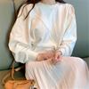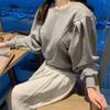 Nuevo Suéter de Punto de Cuello Redondo Estilo Coreano Primavera y Otoño 2025 Holgado de Aspecto Delgado Moda Casual Simple Manga Abullonada Color Sólido Sudadera para Mujer