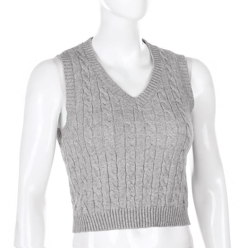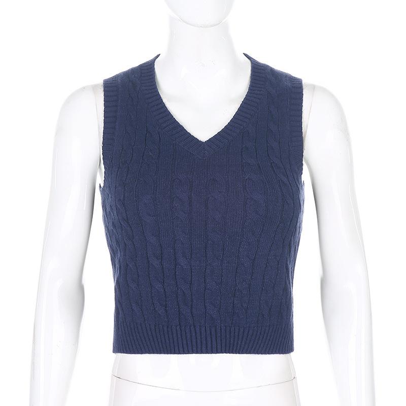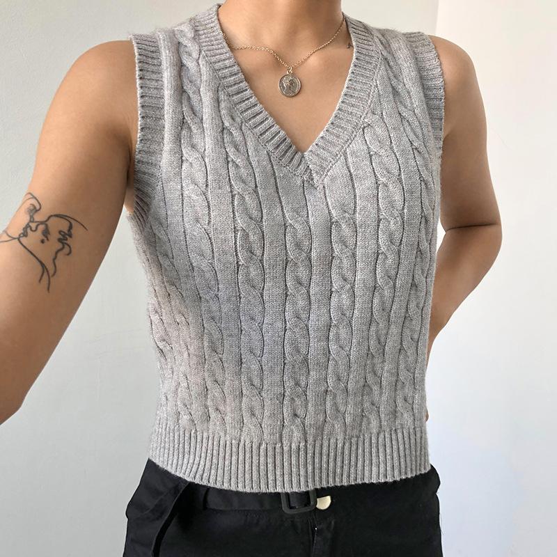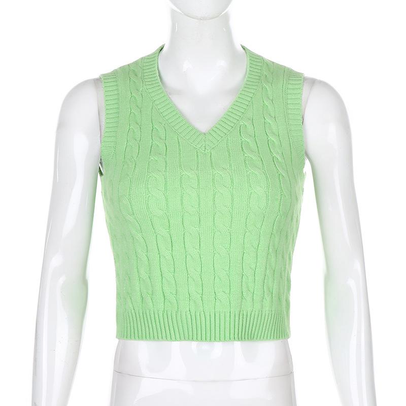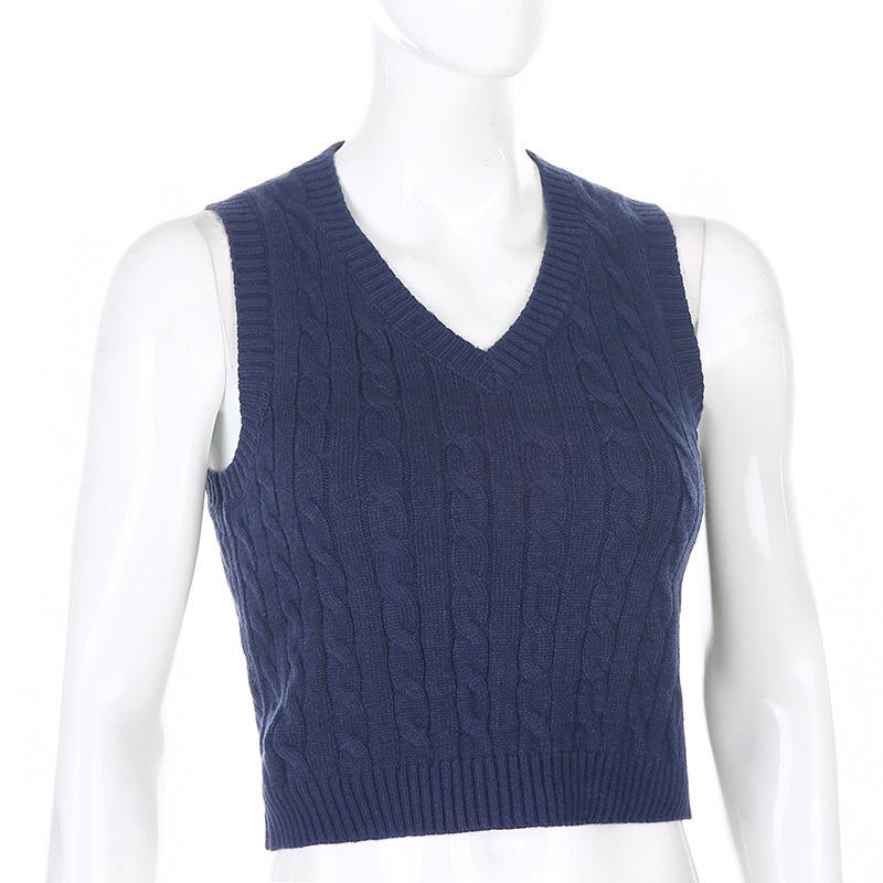 Chaleco sin mangas de lana de color sólido básico con cuello en V estilo universitario para mujer, estilo europeo y americano transfronterizo de otoño de 2020