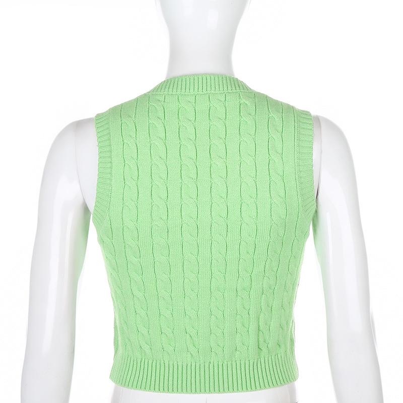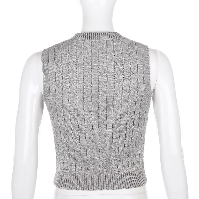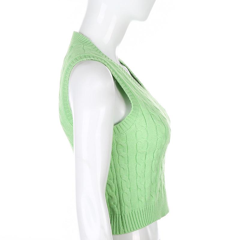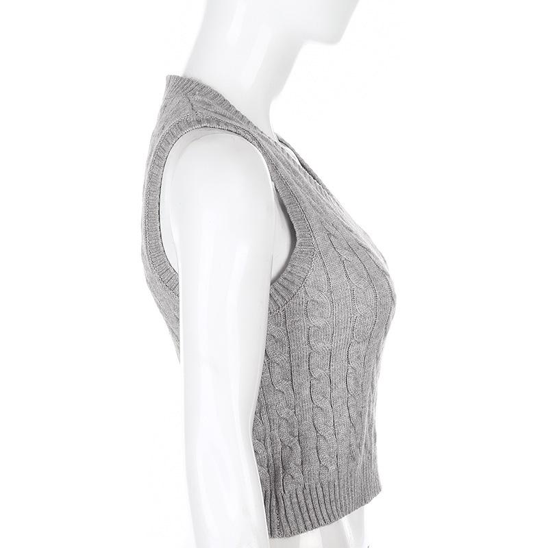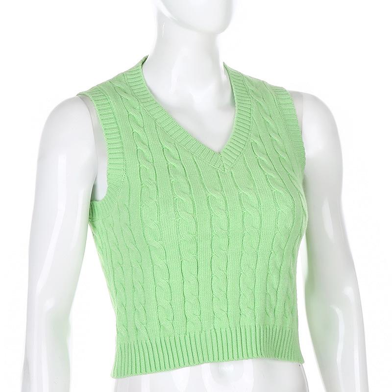 Chaleco sin mangas de lana de color sólido básico con cuello en V estilo universitario para mujer, estilo europeo y americano transfronterizo de otoño de 2020