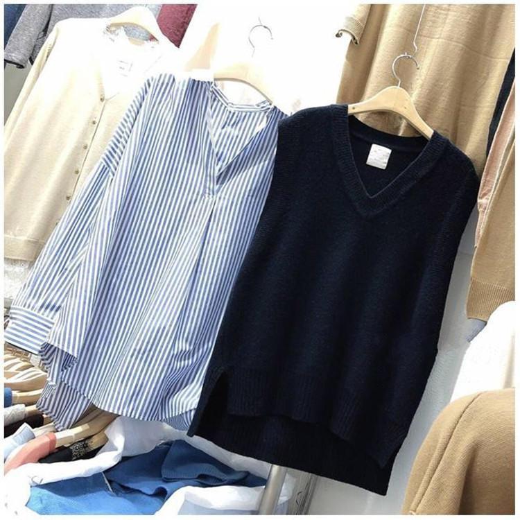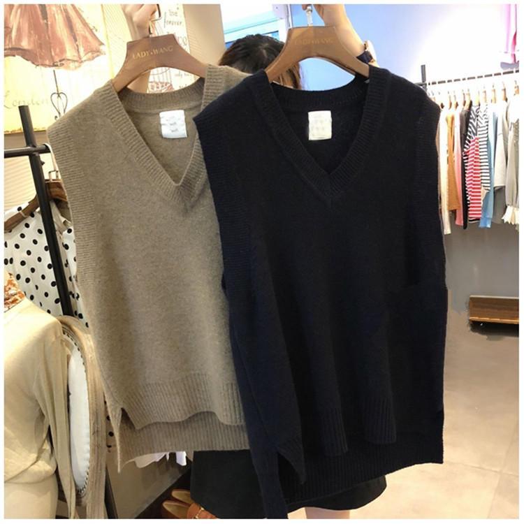 Chaleco de Lana Estilo Coreano Nuevo Otoño e Invierno 2023 para Mujer Engrosado Suelto Cuello en V Jersey sin Mangas Chaleco Suéter para Mujer