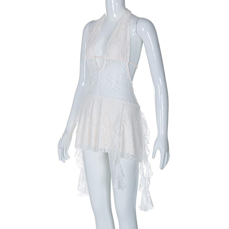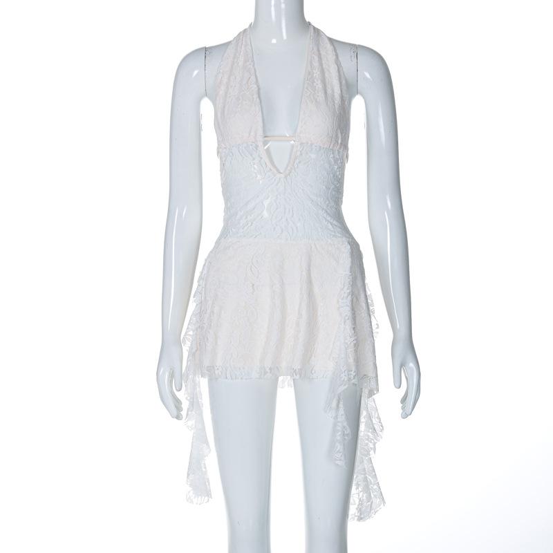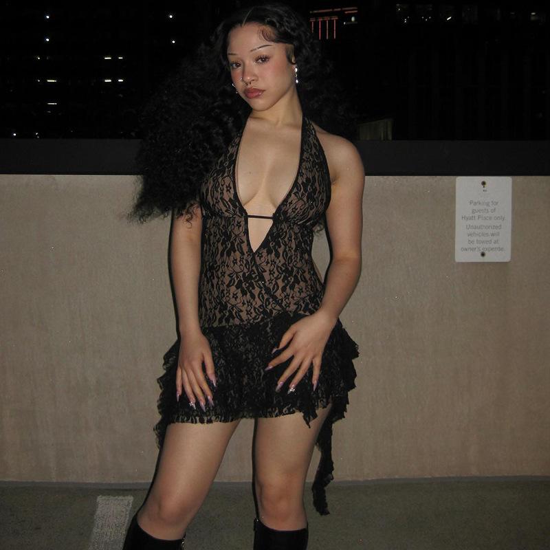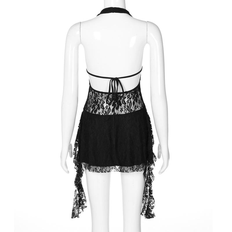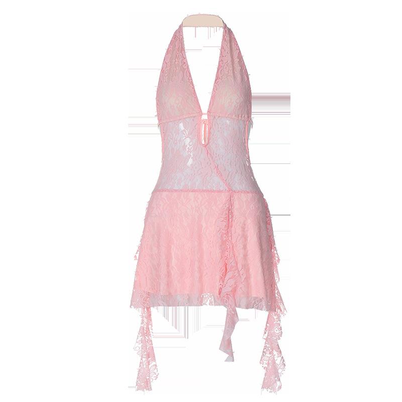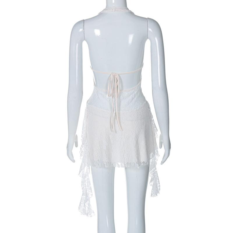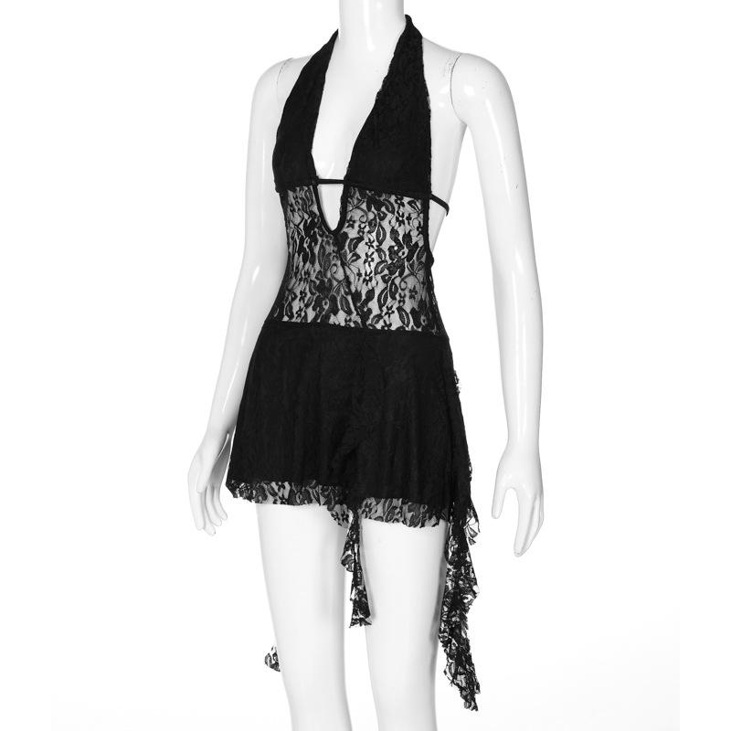 Ropa de Mujer Europea y Americana 2025 Otoño Nuevo Sexy Encaje Cuello en V Ajustado Largo Medio Estilo Urbano Color Sólido Vestido de Malla