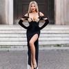 Amazon Transfronterizo Más Vendido Nueva Moda Temperamento Sexy Cuello Caído Sin Espalda Largo Ajustado Empalmado Vendaje Vestido