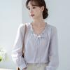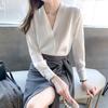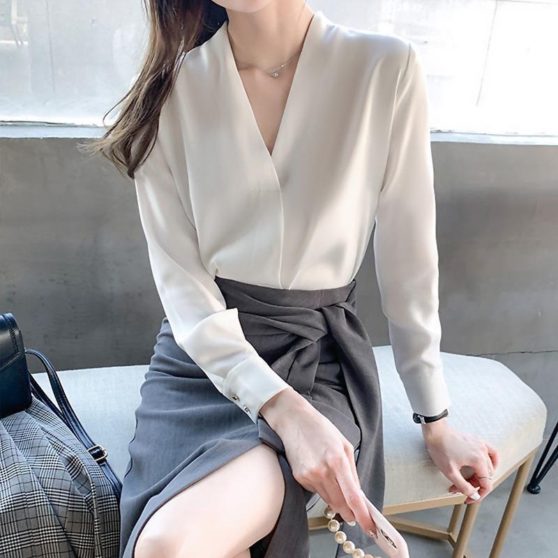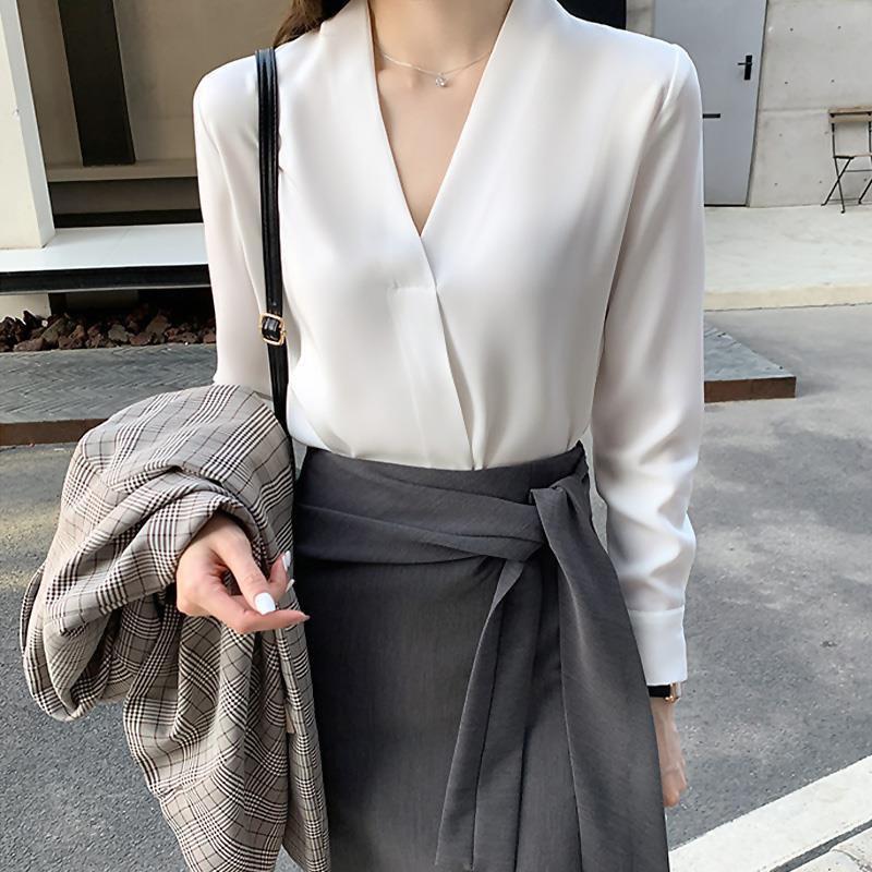 Camisa blanca de chifón con cuello en V para mujer, nueva para otoño 2020, manga larga, moderna, estilo occidental, para ir al trabajo, profesional, top francés
