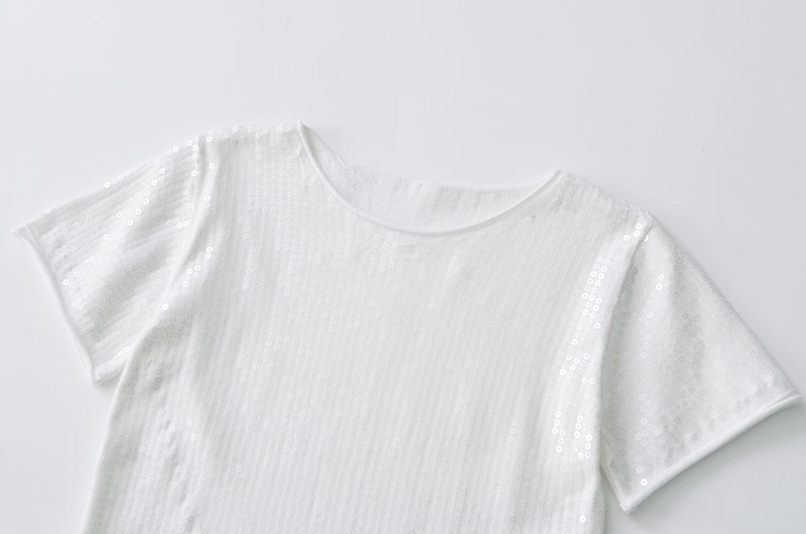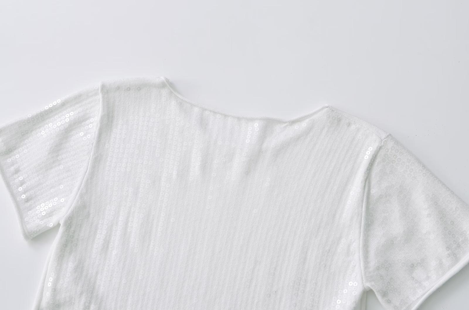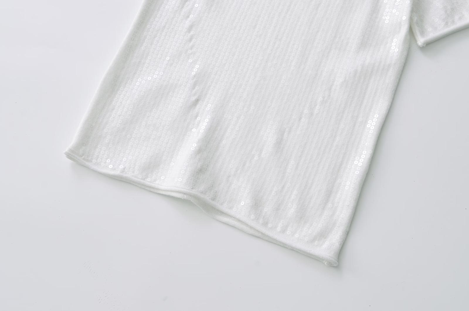 2024 Transfronterizo Nuevo Verano Camiseta de Mujer Estilo Callejero Cuello Redondo Ajustada Color Sólido Lentejuelas Manga Corta para Mujer G866305