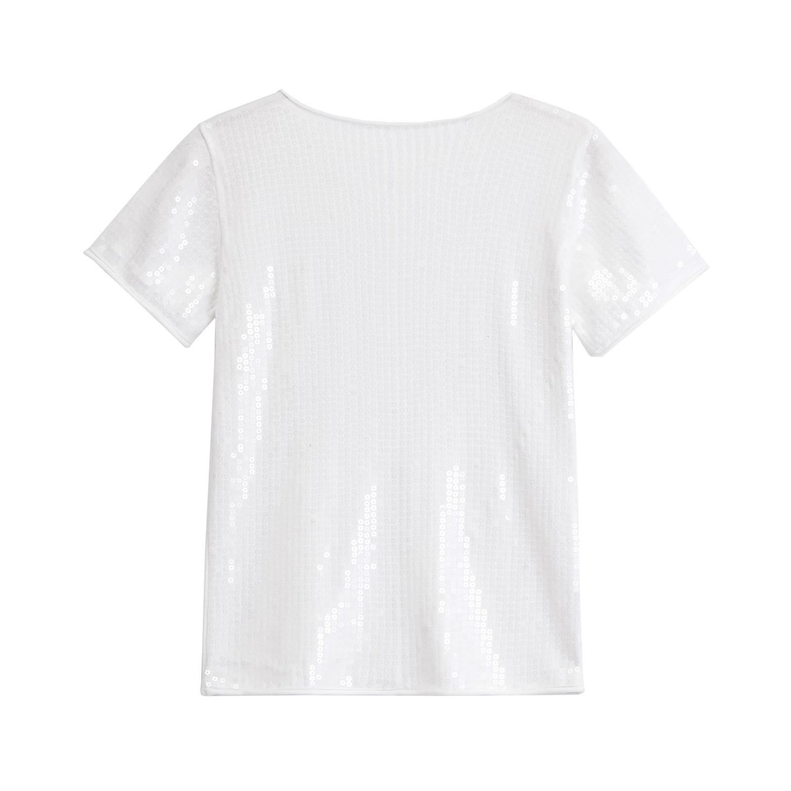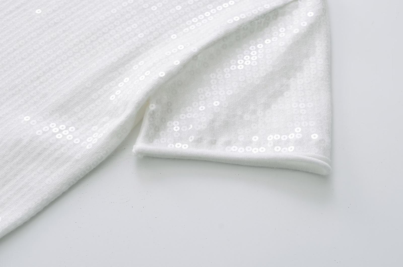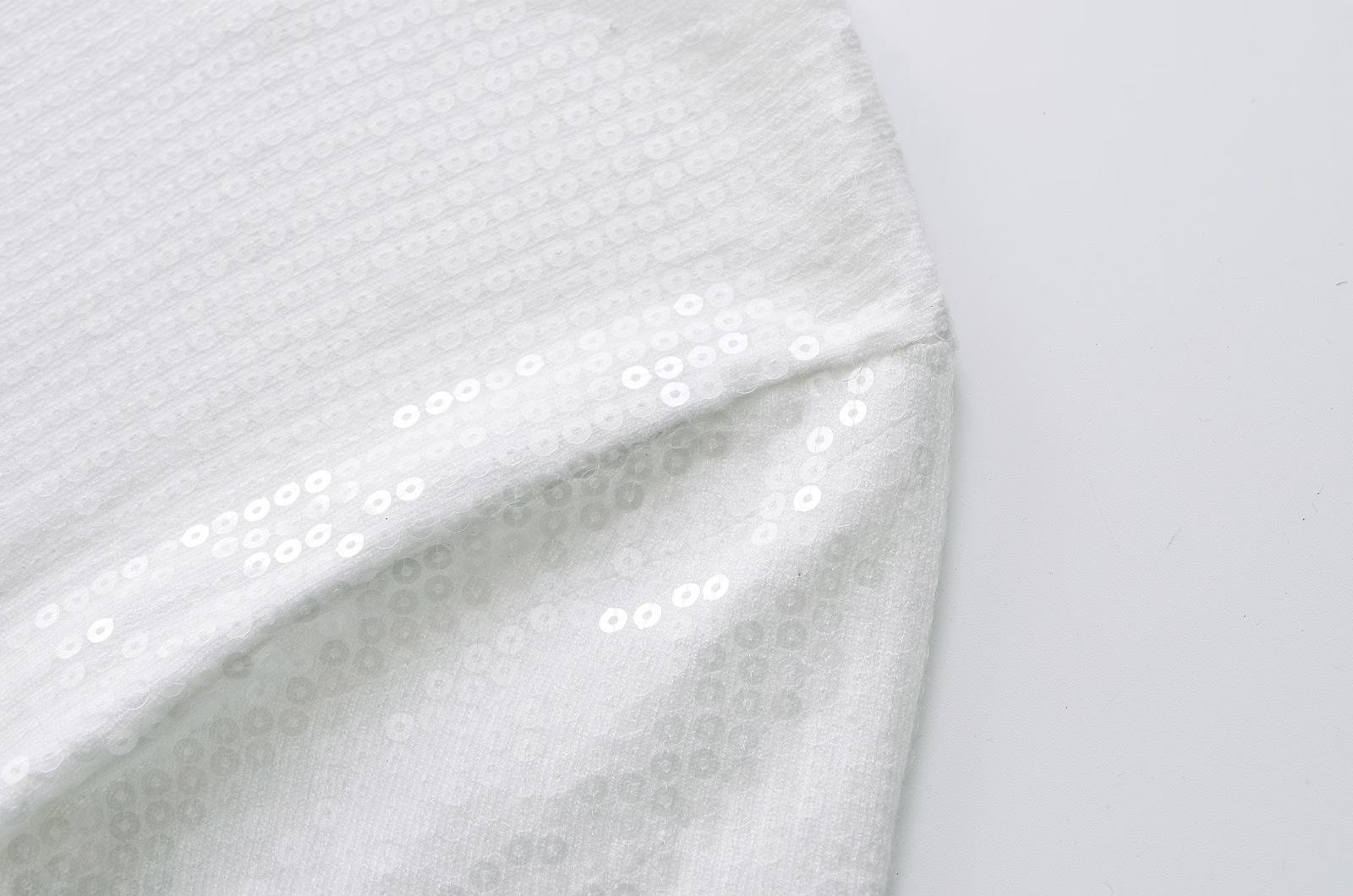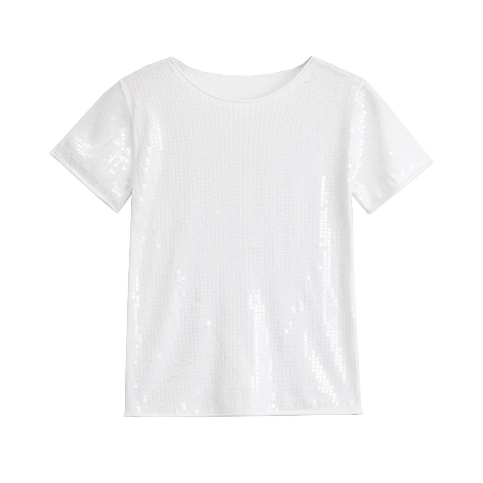 2024 Transfronterizo Nuevo Verano Camiseta de Mujer Estilo Callejero Cuello Redondo Ajustada Color Sólido Lentejuelas Manga Corta para Mujer G866305