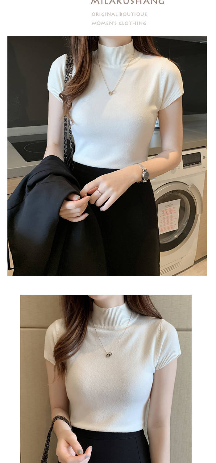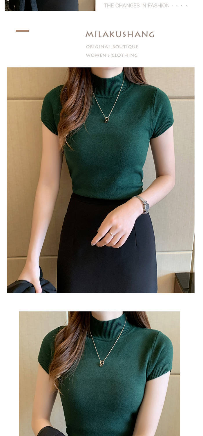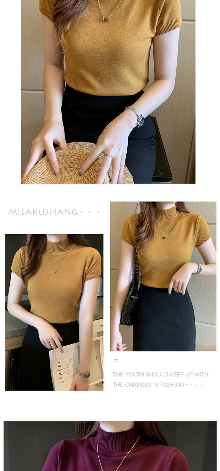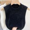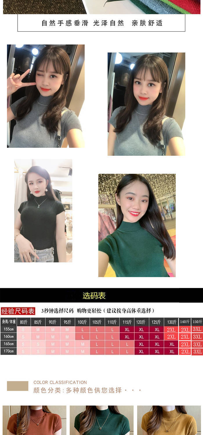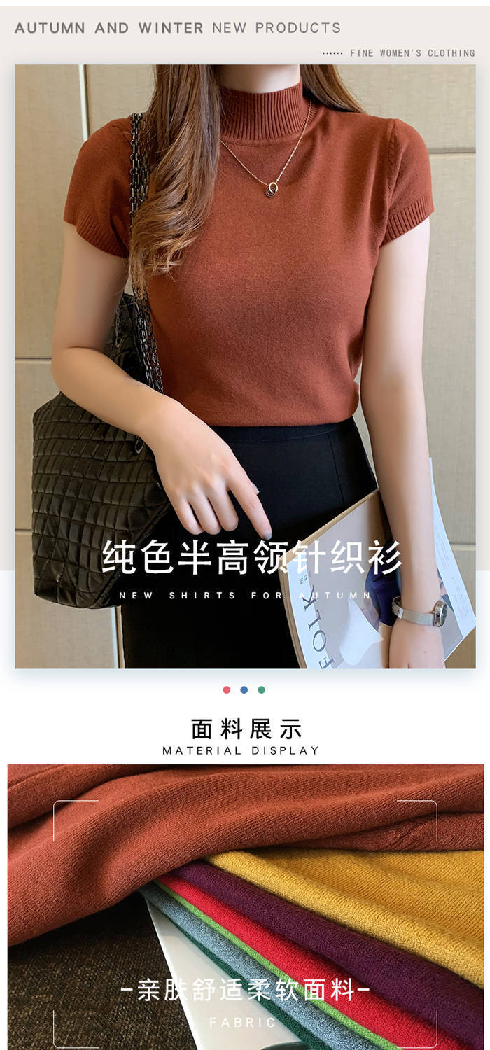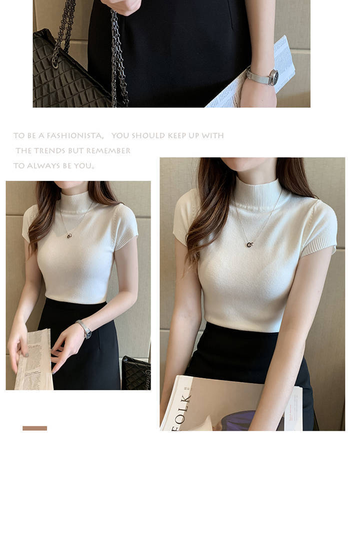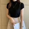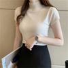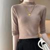 Suéter interior de punto de seda fría con cuello medio alto para mujer, otoño e invierno, camiseta básica, suéter interior delgado, chaleco corto adelgazante, prenda exterior