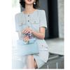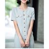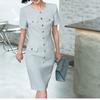 Vestido nuevo de llegada gris de manga corta estilo pequeña fragancia falda delgada femenina