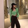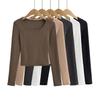Camiseta de manga larga ajustada con pliegues en el pecho de color sólido estilo europeo y americano para chica sexy, camisa de cintura alta con cintura recortada y parte inferior ajustada para mujer