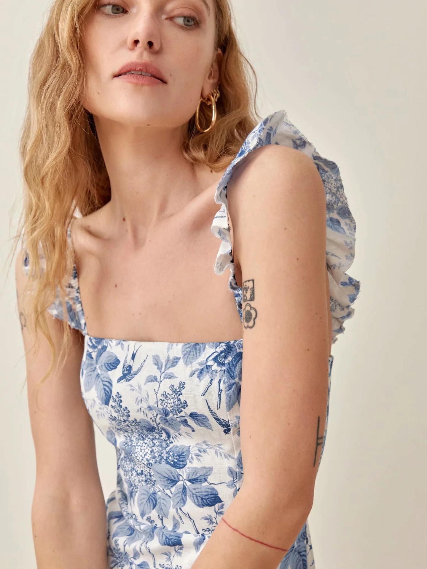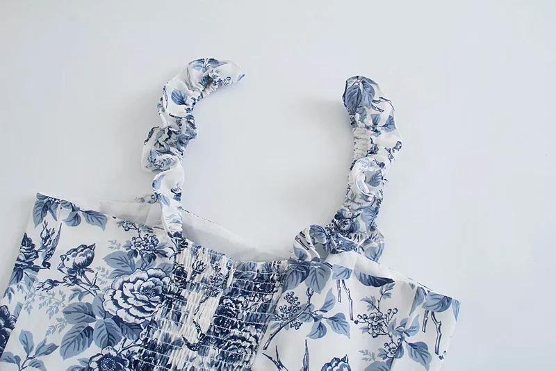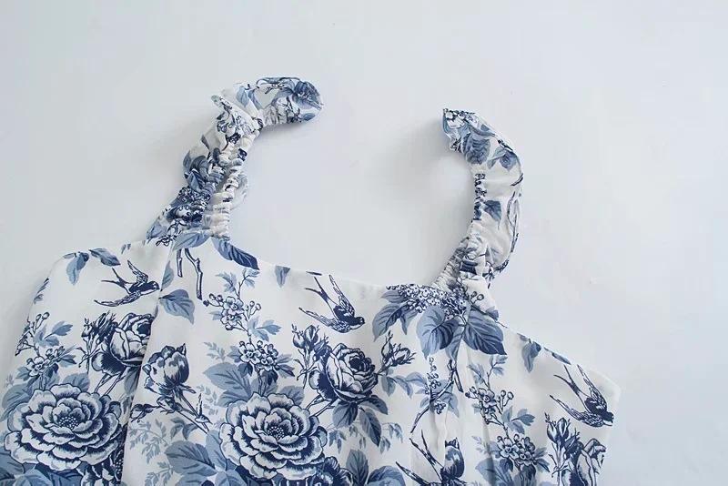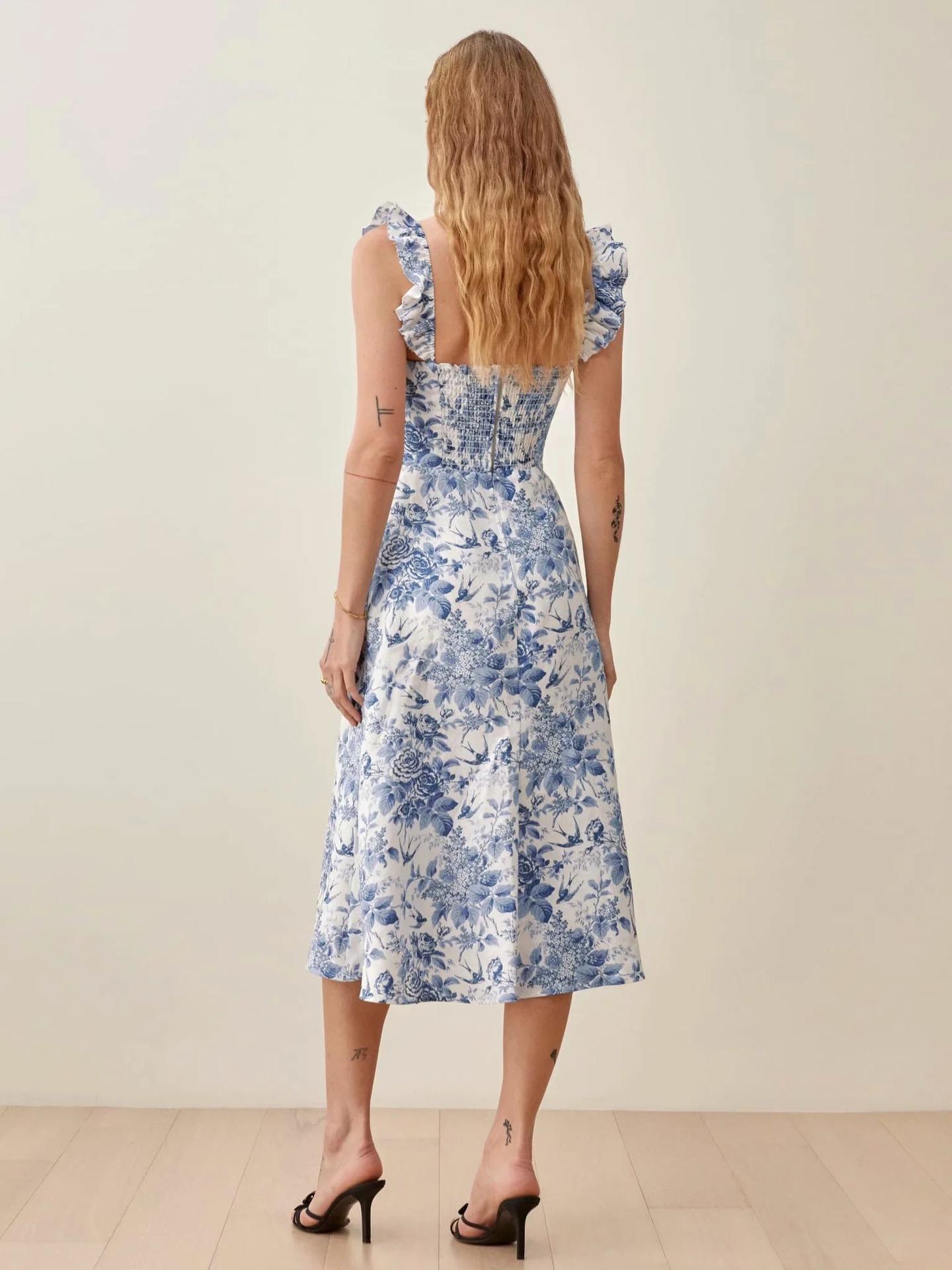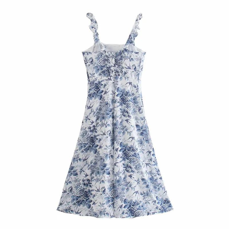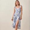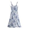 Falda de Tirantes Holgada y Cómoda de Estilo Blogger Retro Estilo Europeo y Americano Moda Trendy Abertura Lateral Vestido Estampado