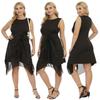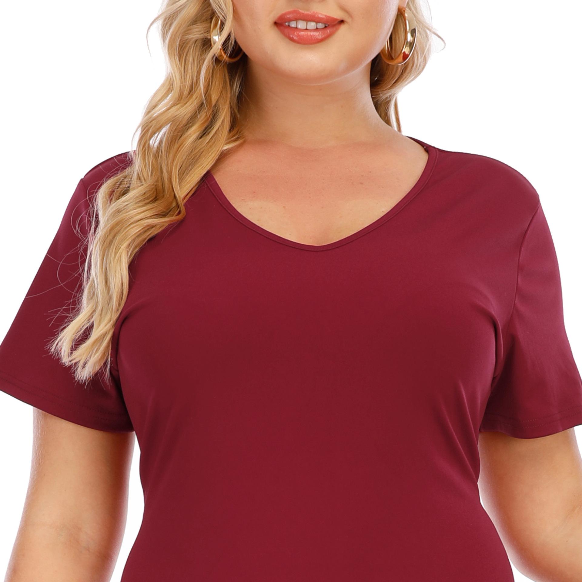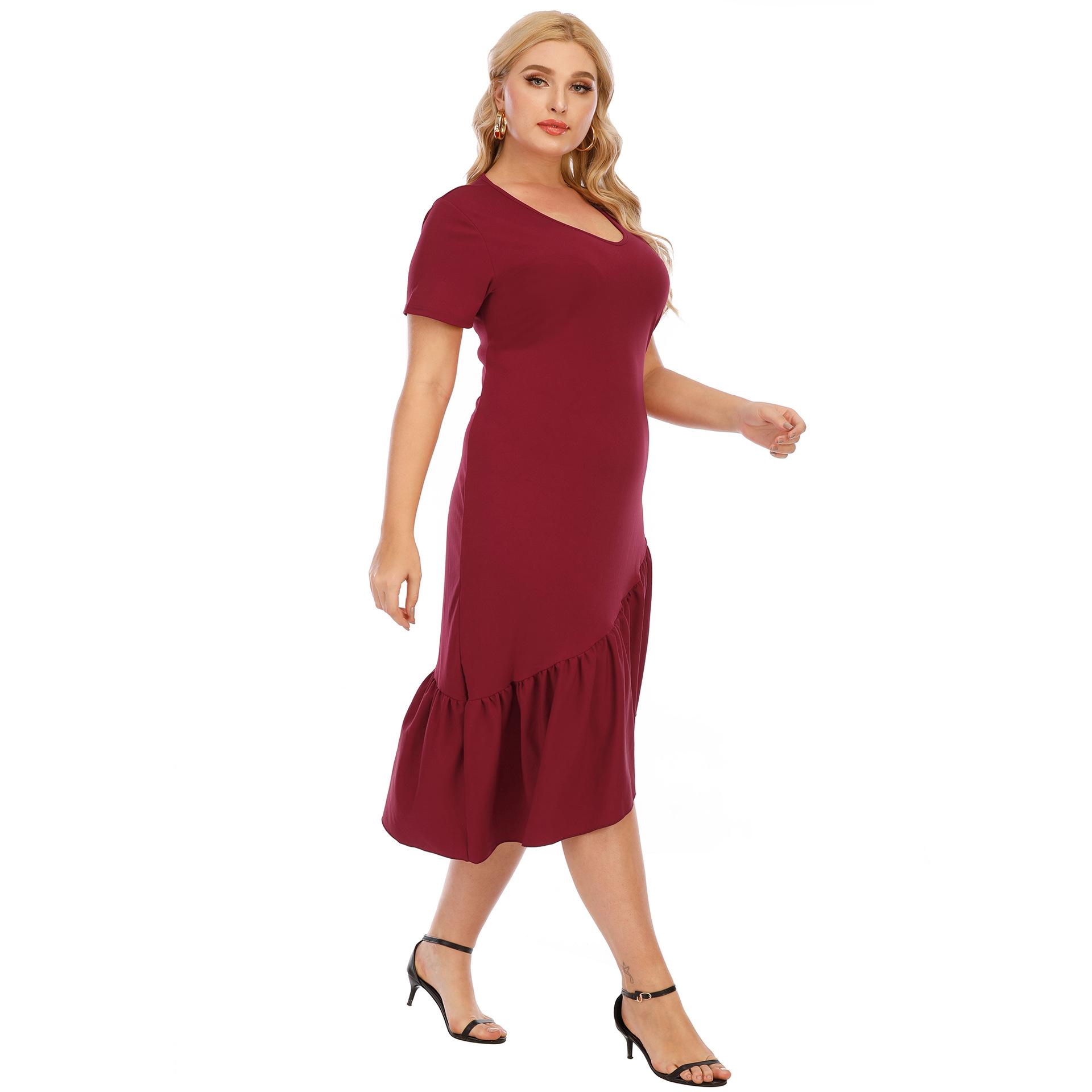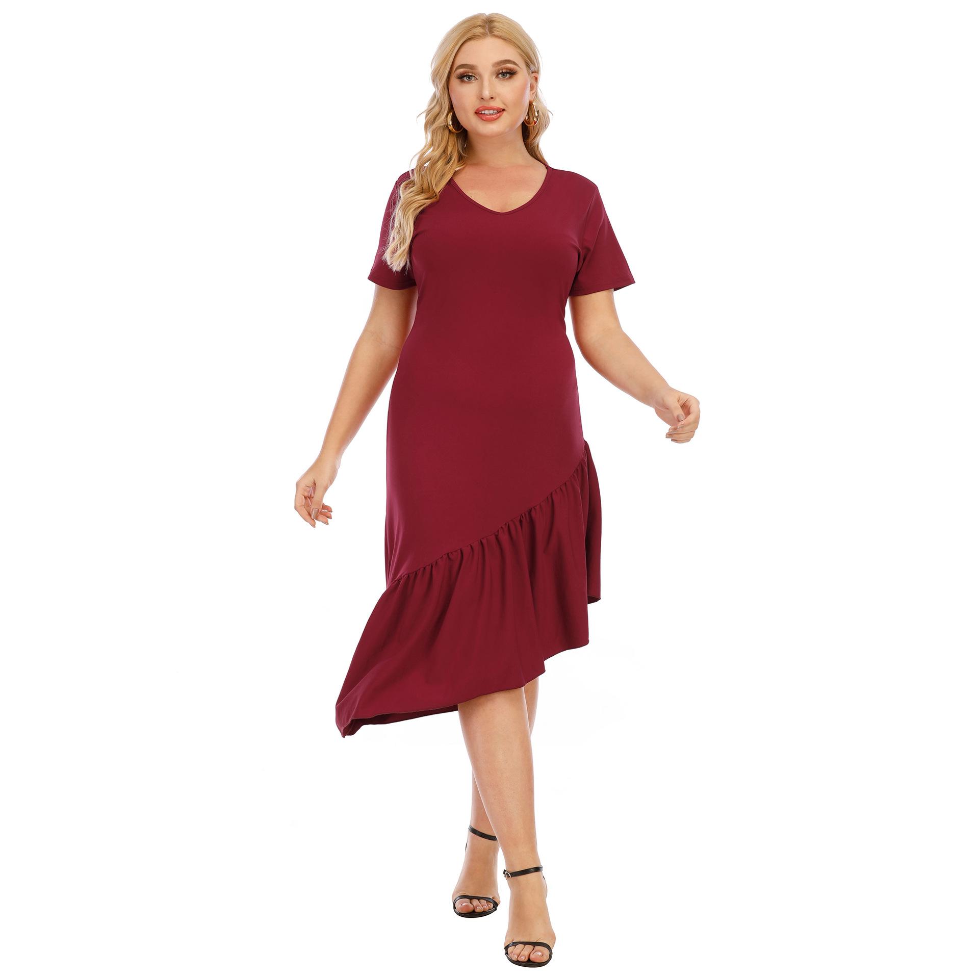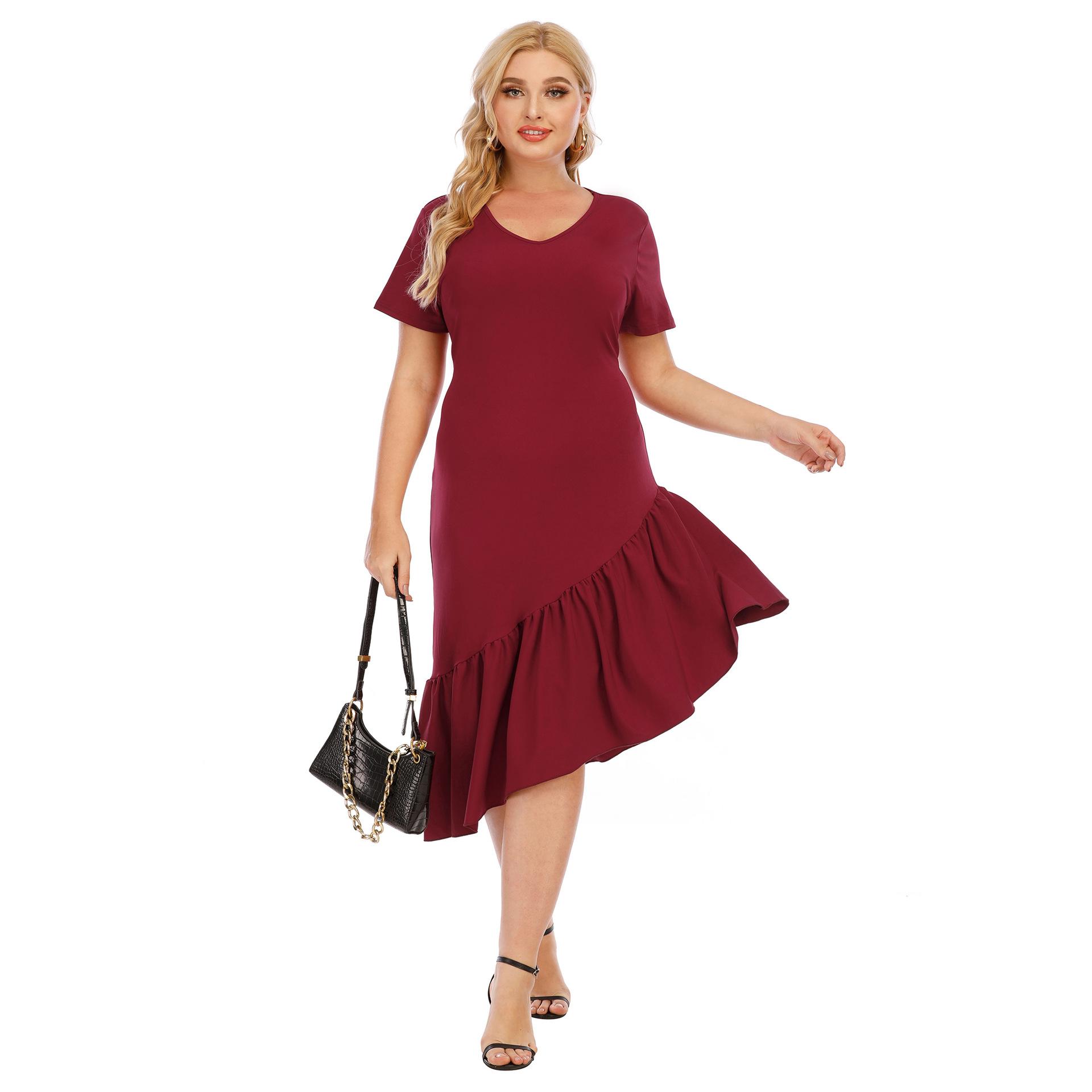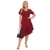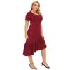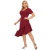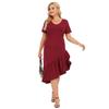 Vestido de noche rojo vino con volantes, cuello en V irregular, manga corta, talla grande, para mujer, F200328