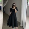 Vestido con solapa de diseño estilo Hepburn francés con mangas abullonadas, vestido negro corto estilo callejero estilo sal, estilo profesional, falda corta madura