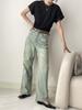 Compra Mengzi Xi Jeans para Mujer de Nuevo Diseño con Cintura Alta y Pierna Ancha Sumergida, Color Claro Retro X1926 al por mayor en Joom.pro