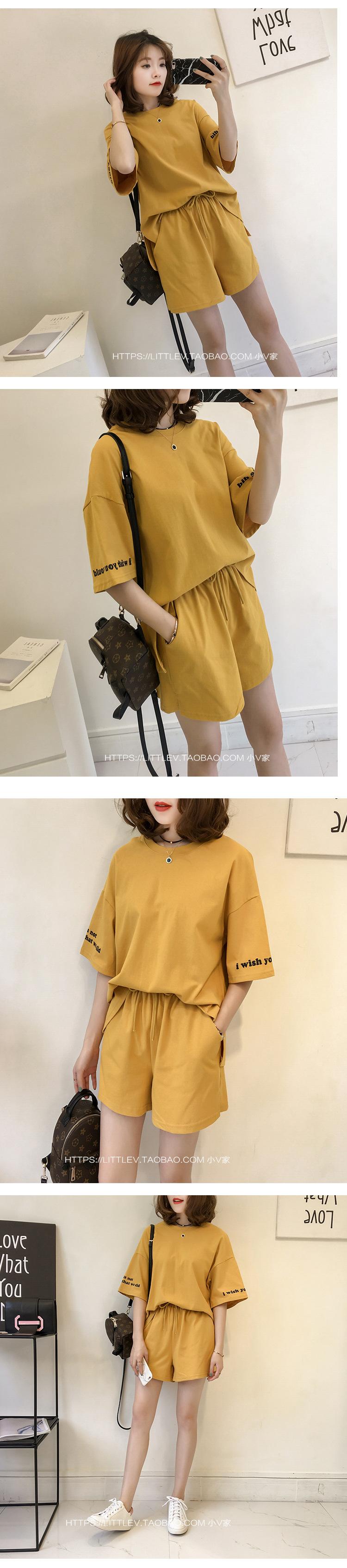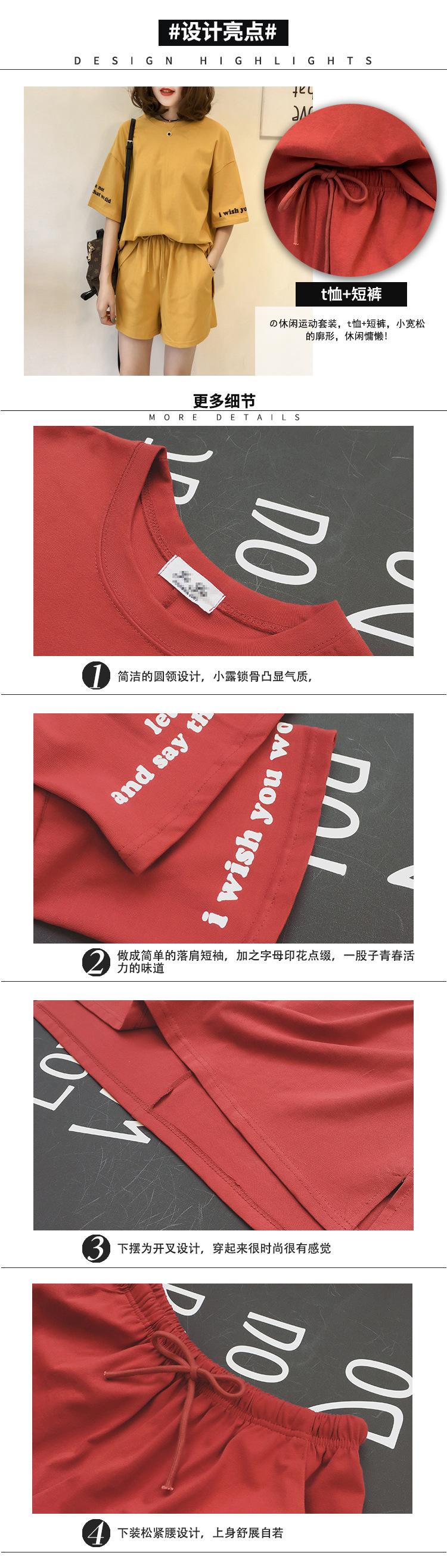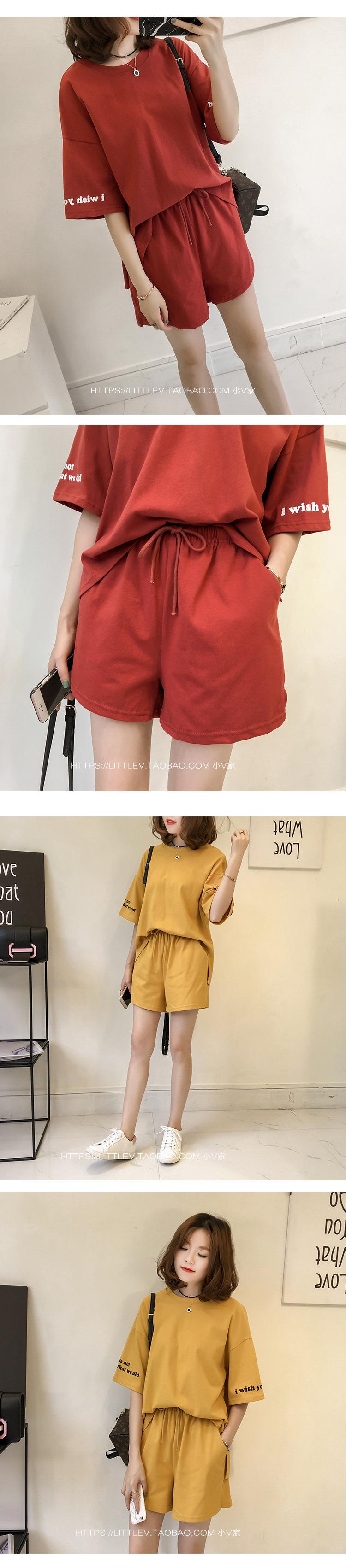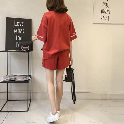Traje Deportivo Casual Estilo Estación Europea para Mujer Verano 2019 Nuevo Estilo Coreano Holgado Manga Corta Shorts Estudiante Correr Conjunto de Dos Piezas
