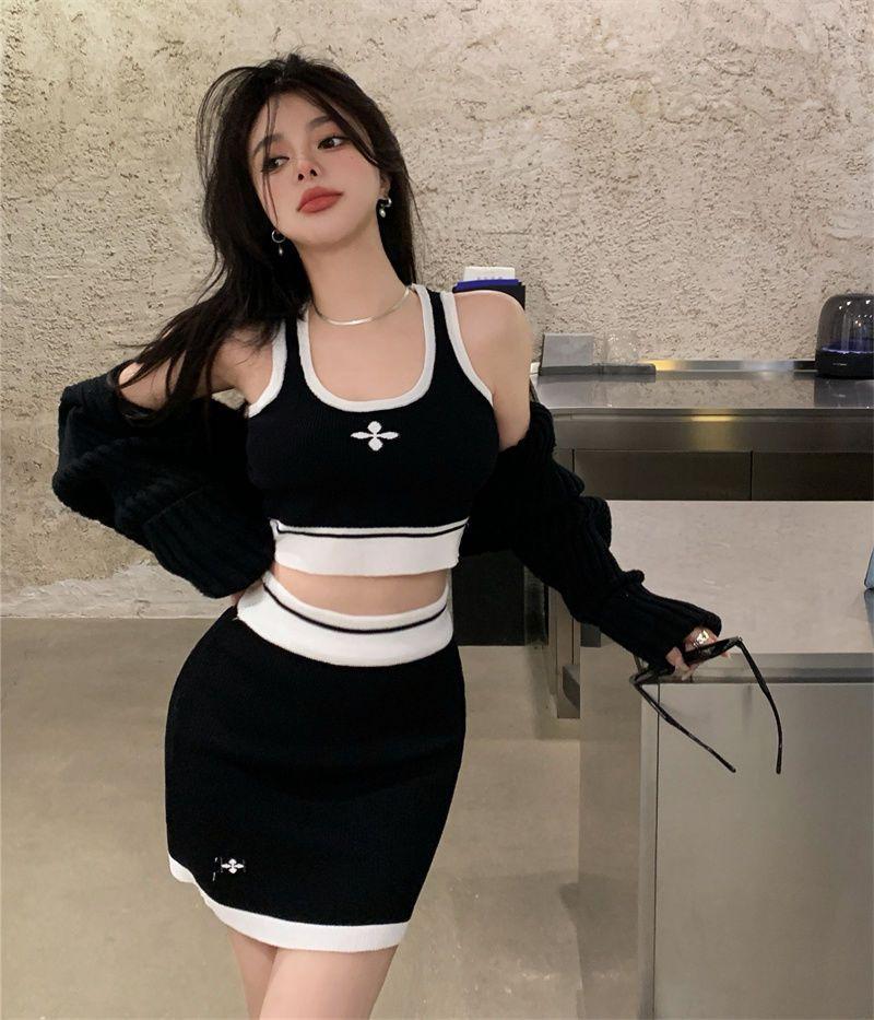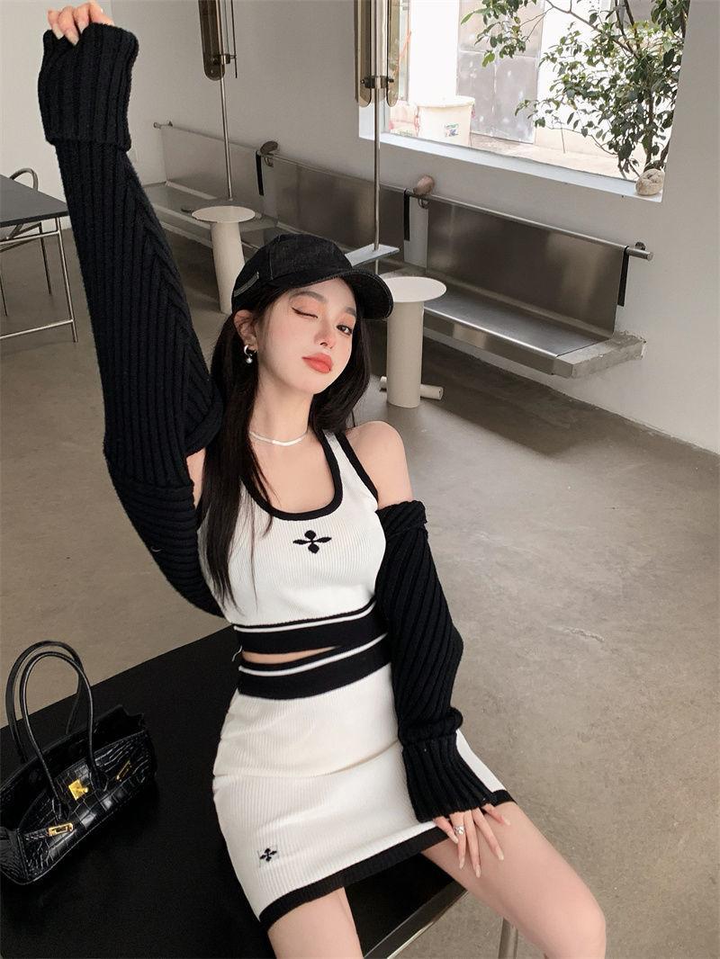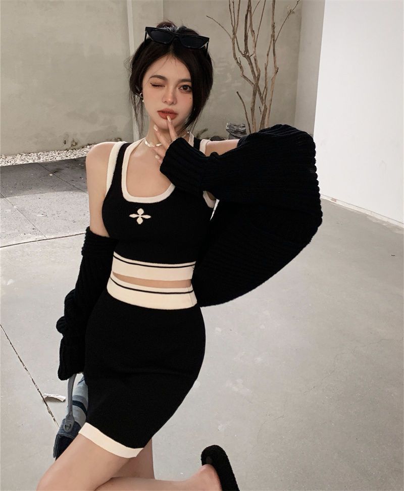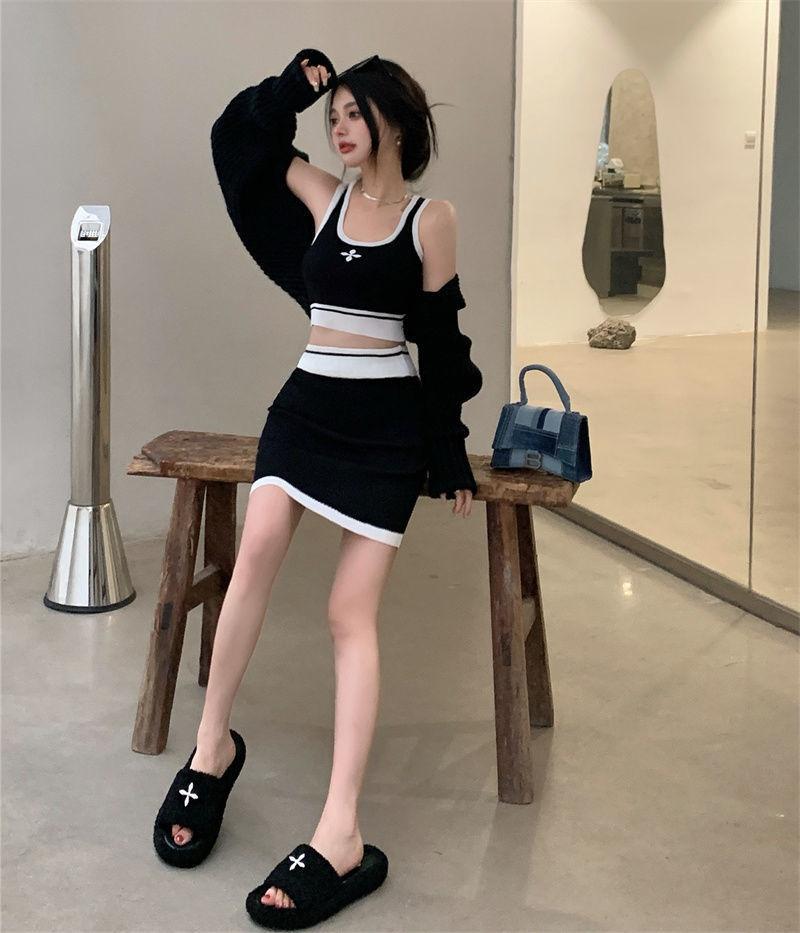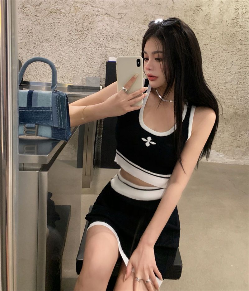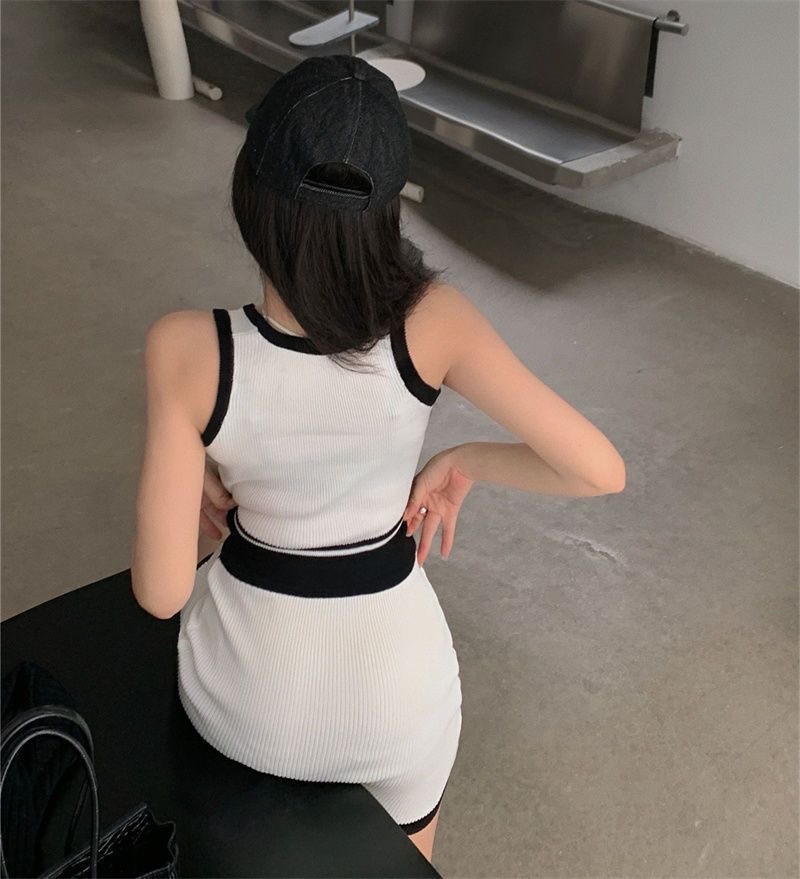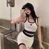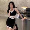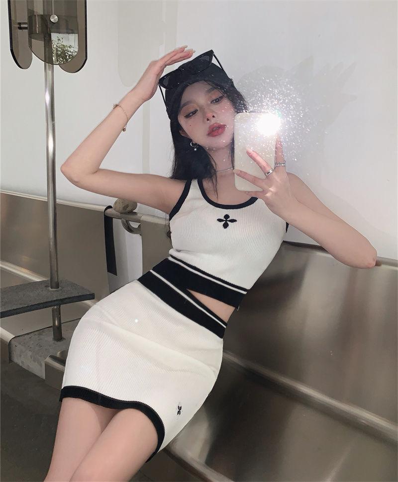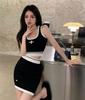 Nuevo estilo de verano, estilo Pure Desire, chaleco cruzado con tirantes sexy para chica, traje de falda de punto adelgazante de cintura alta para mujer