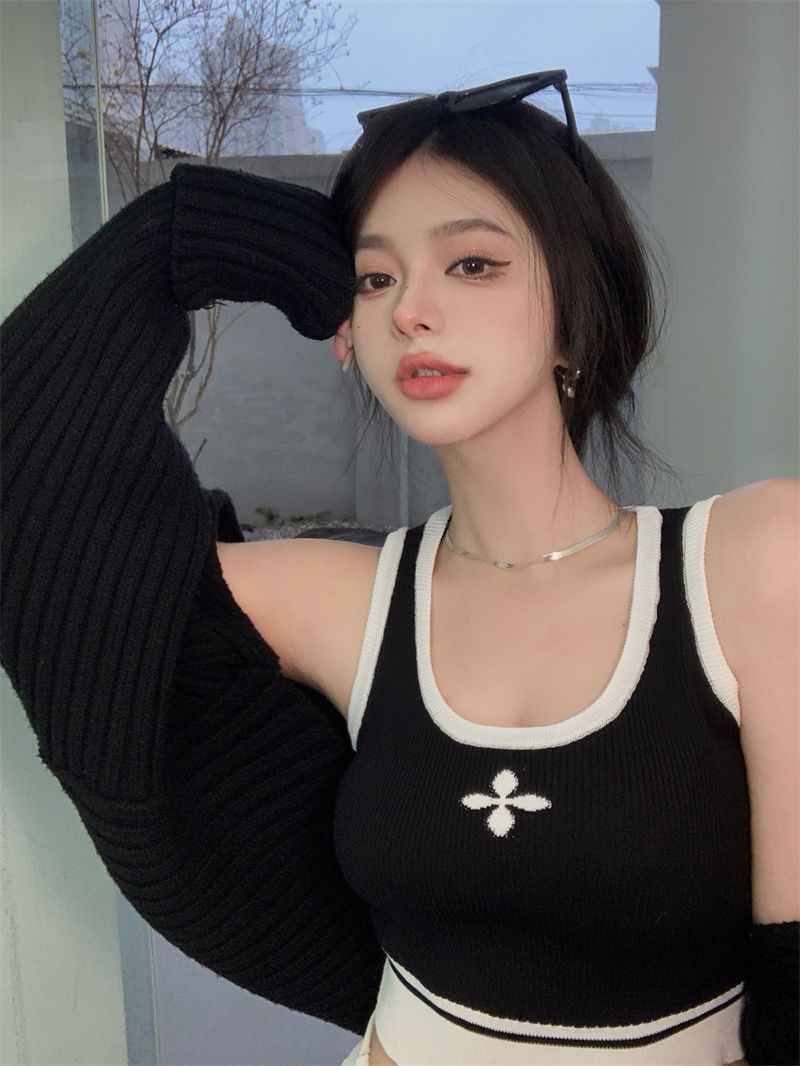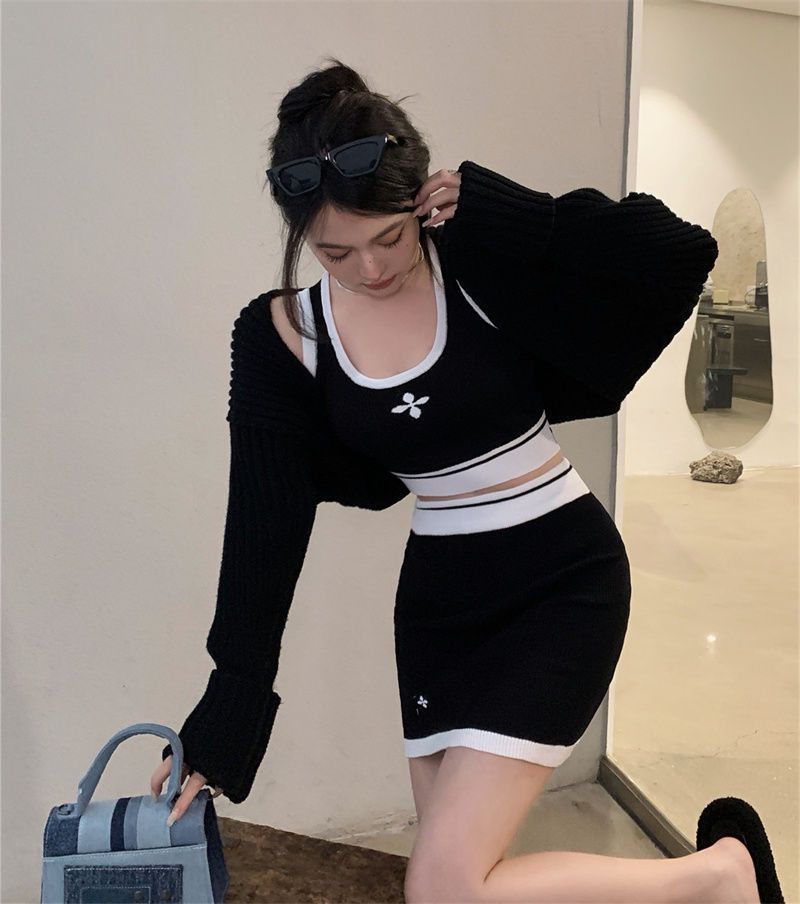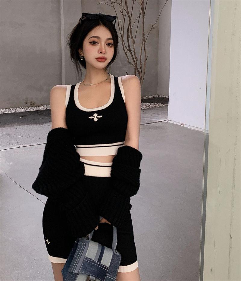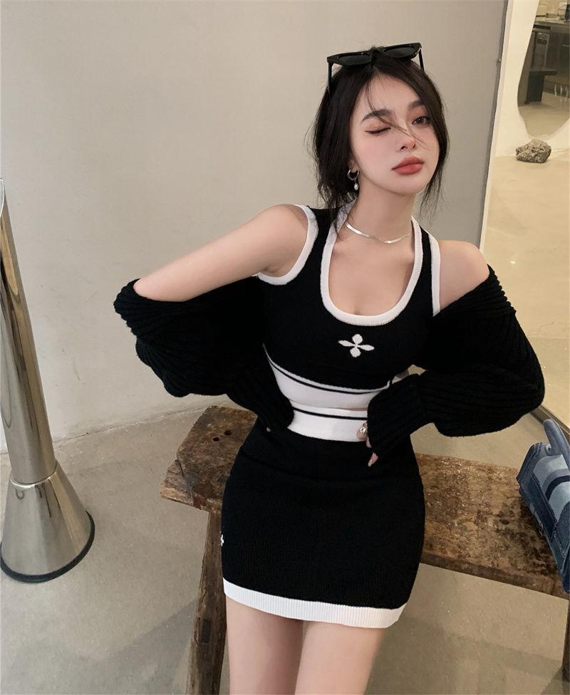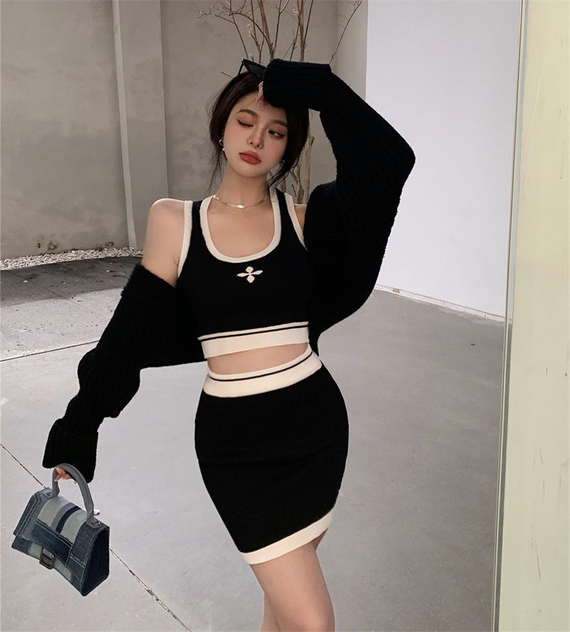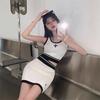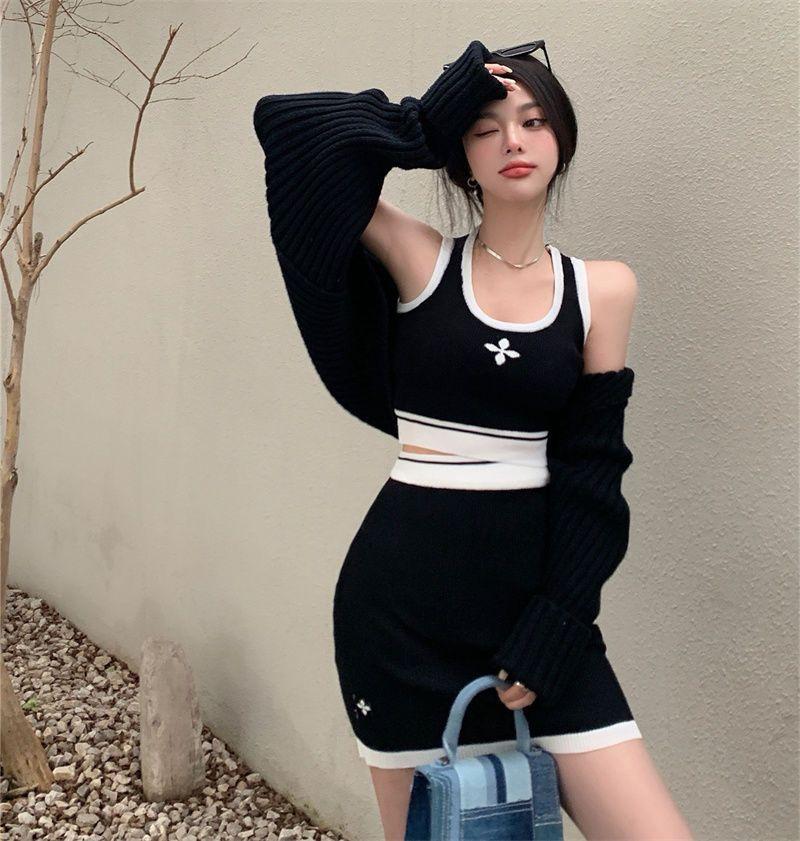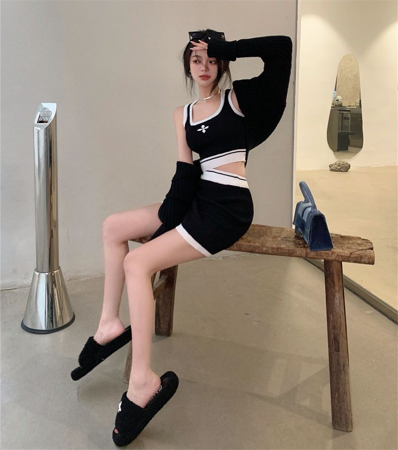 Nuevo estilo de verano, estilo Pure Desire, chaleco cruzado con tirantes sexy para chica, traje de falda de punto adelgazante de cintura alta para mujer