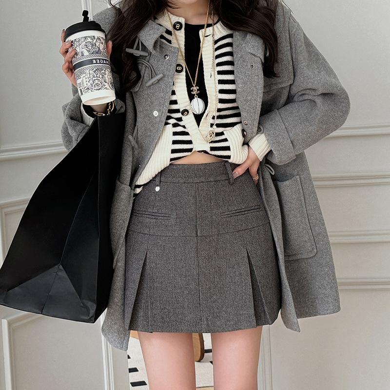 Falda culotte plisada gris súper buena de Nanyou para principios de primavera, nueva, estilo diseñador du, para mujer