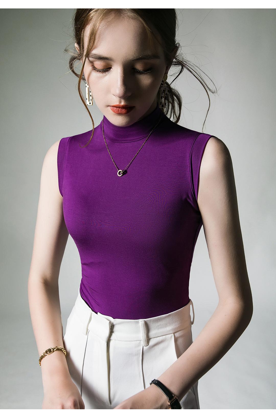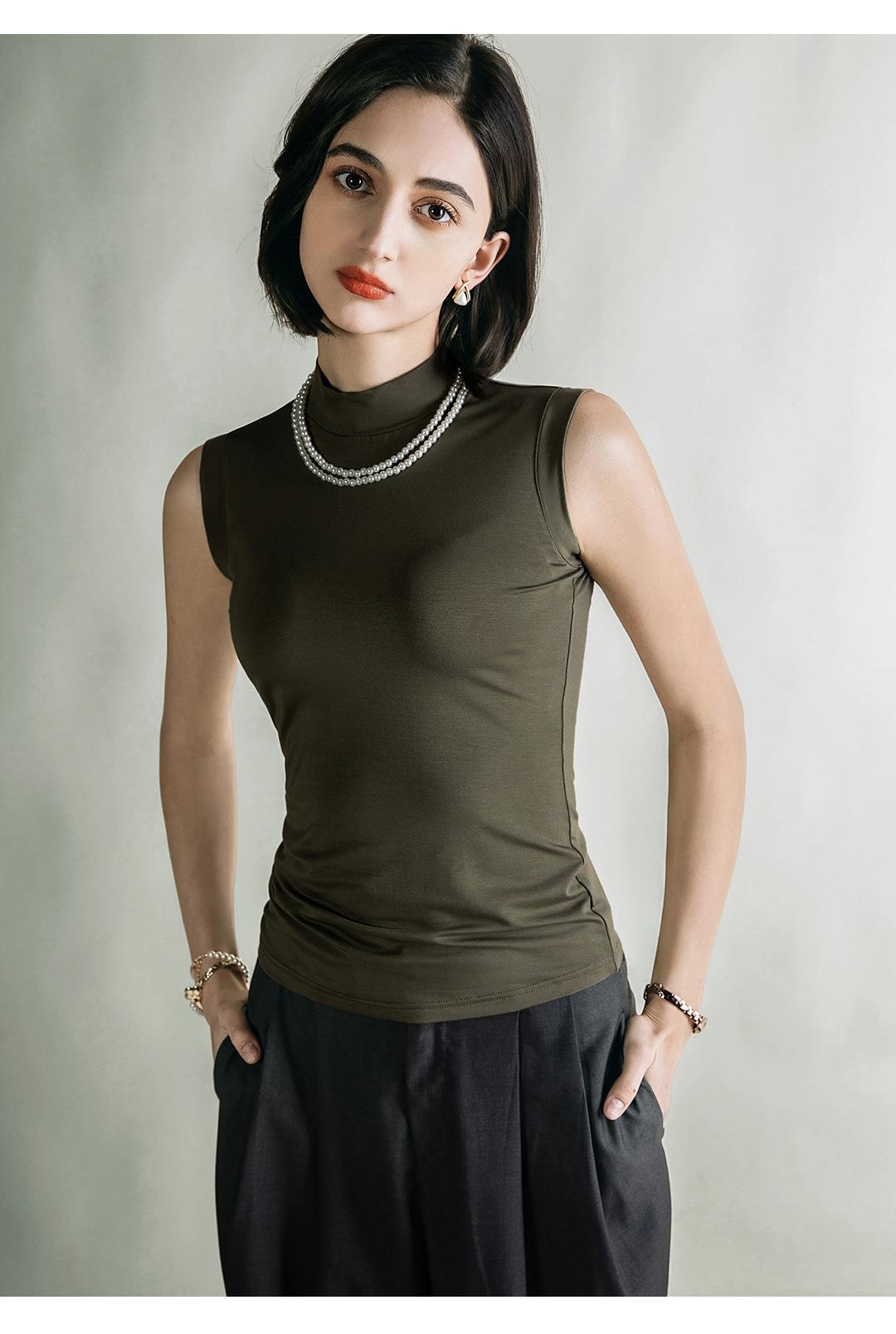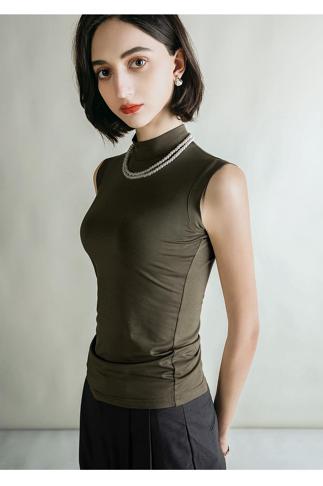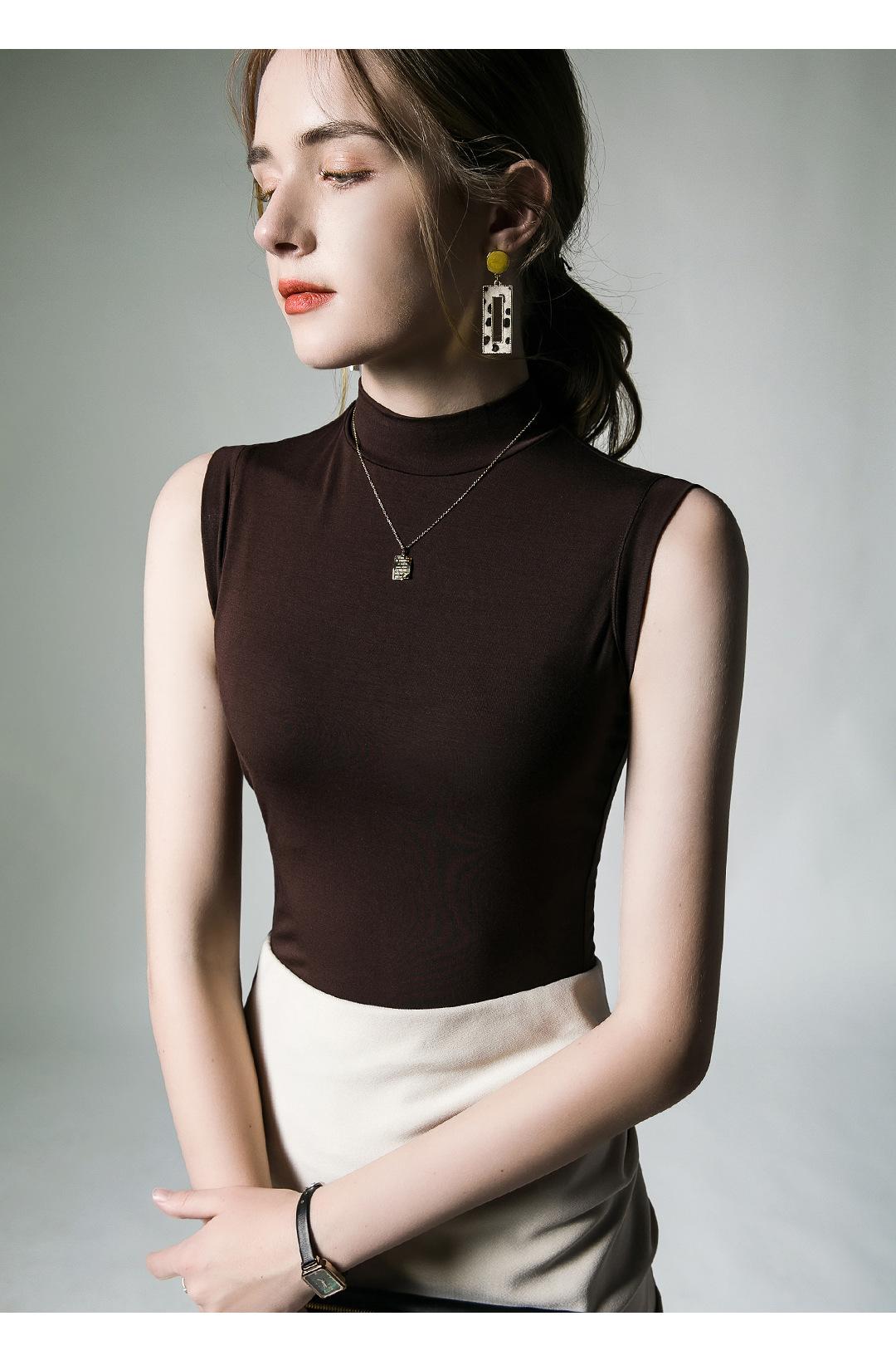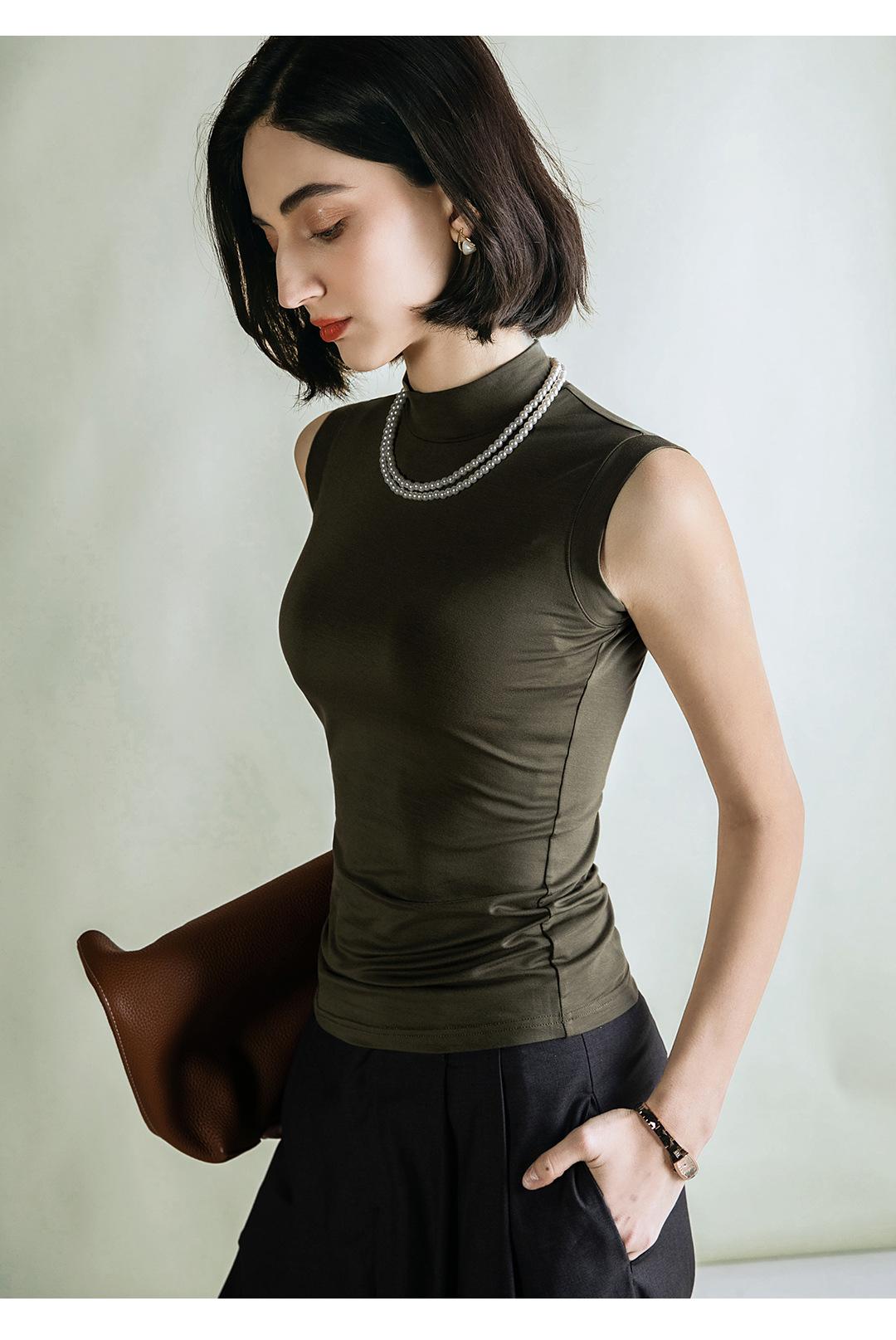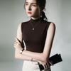 Camisa básica de otoño sin mangas con cuello medio alto, sencilla y generosa, de color sólido, ajustada, estilo occidental, pequeña.