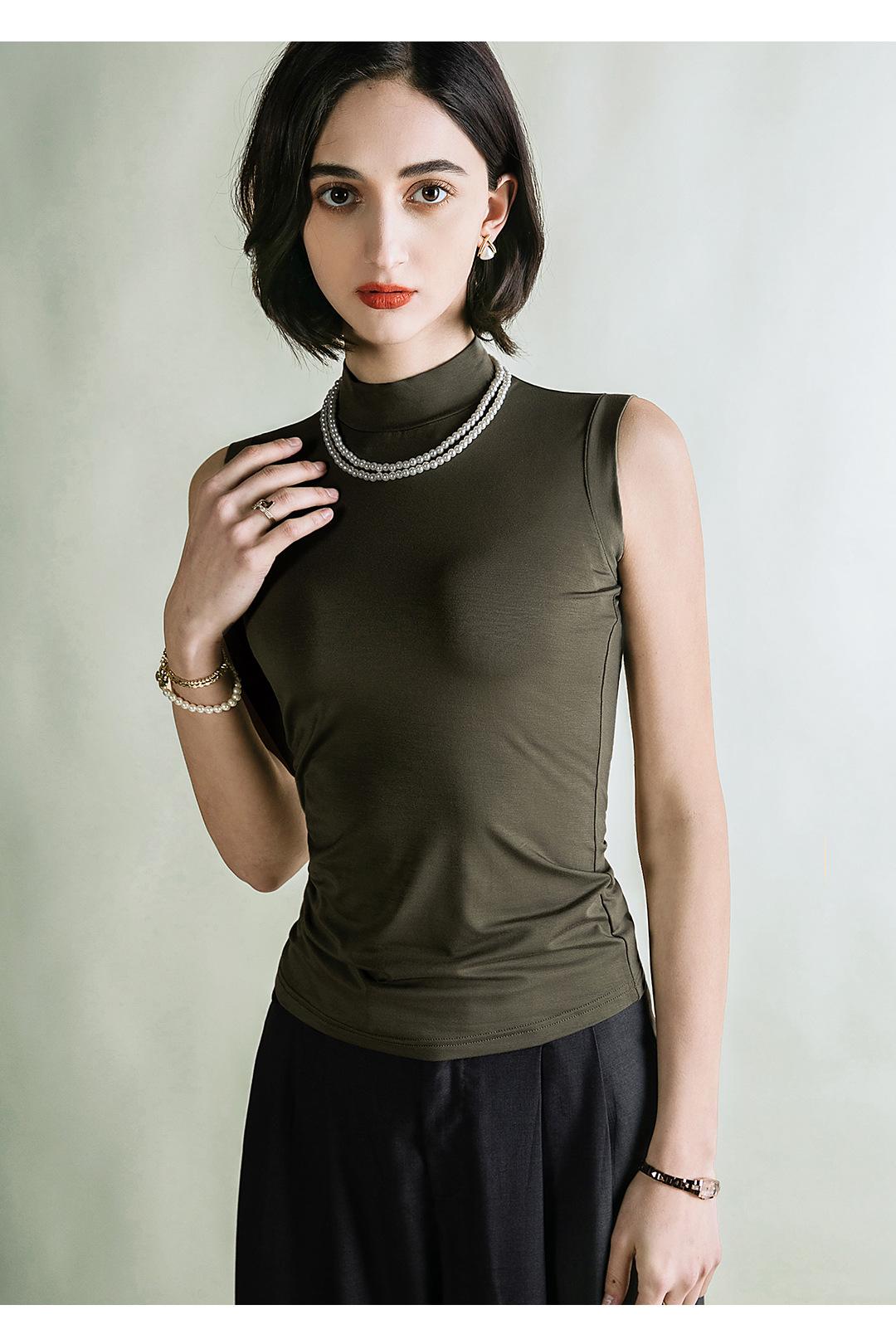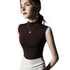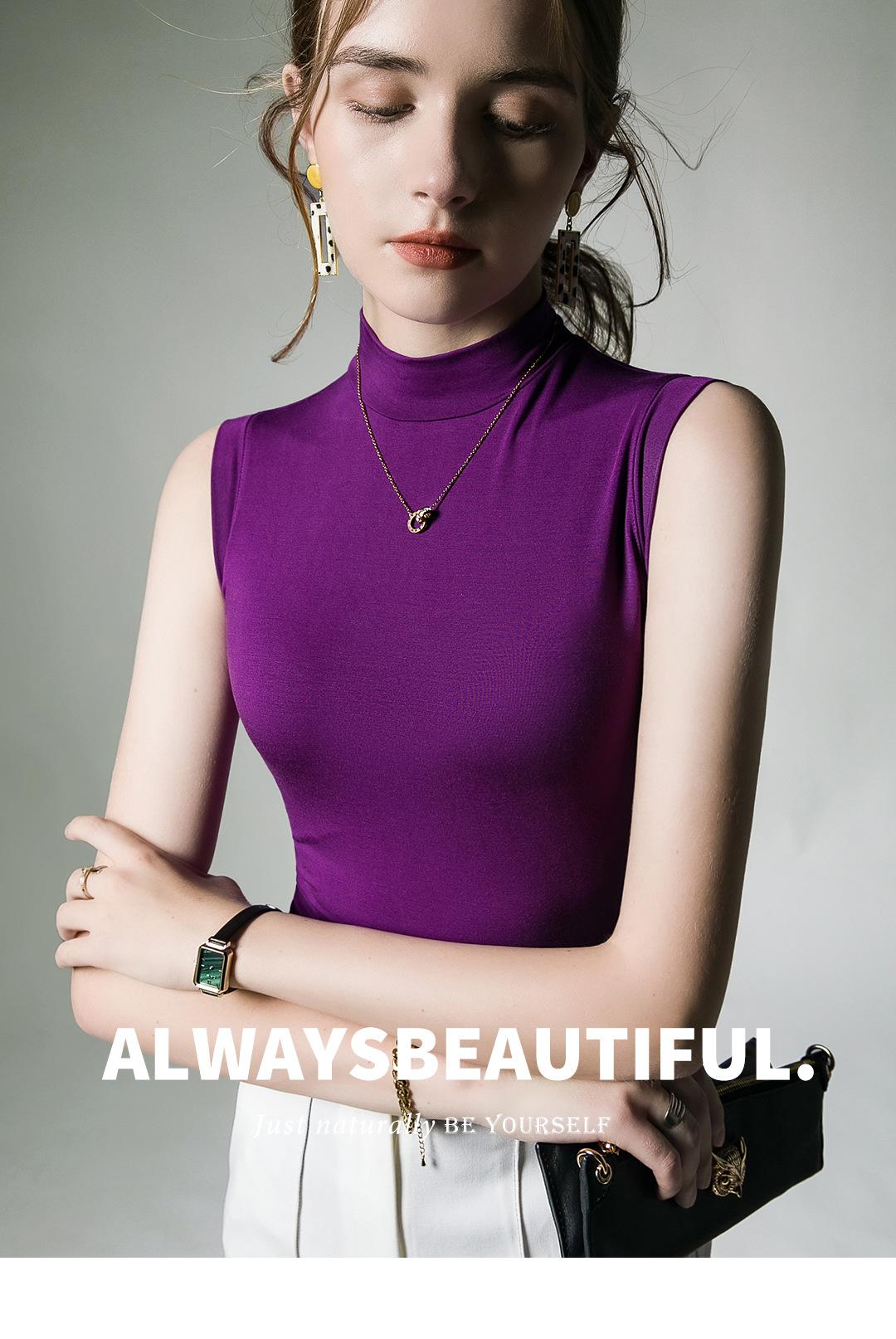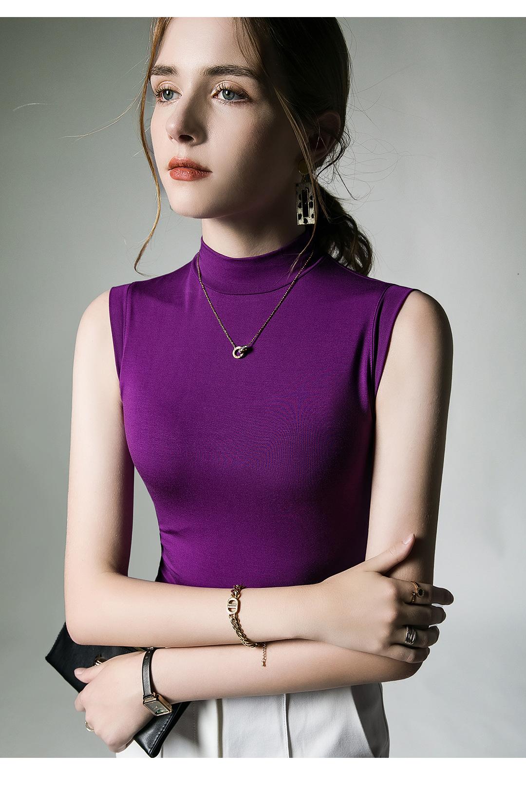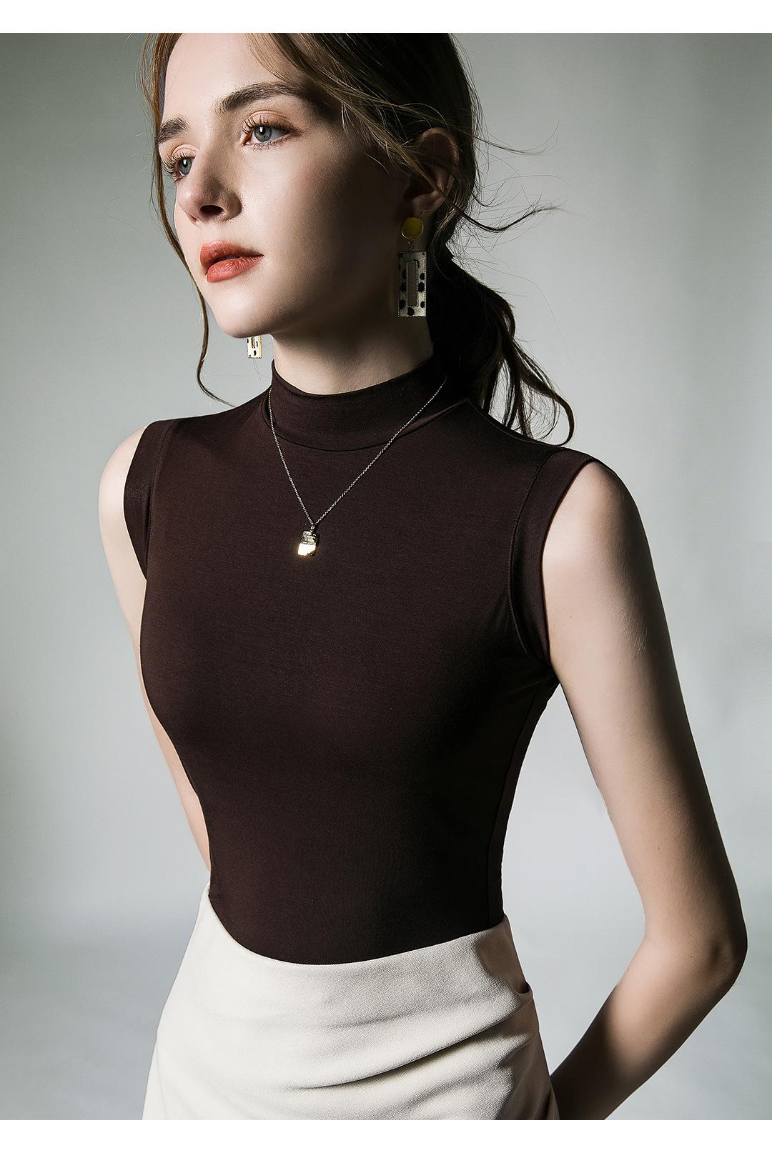 Camisa básica de otoño sin mangas con cuello medio alto, sencilla y generosa, de color sólido, ajustada, estilo occidental, pequeña.