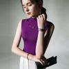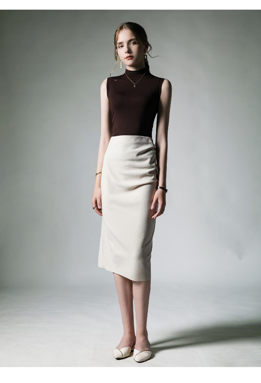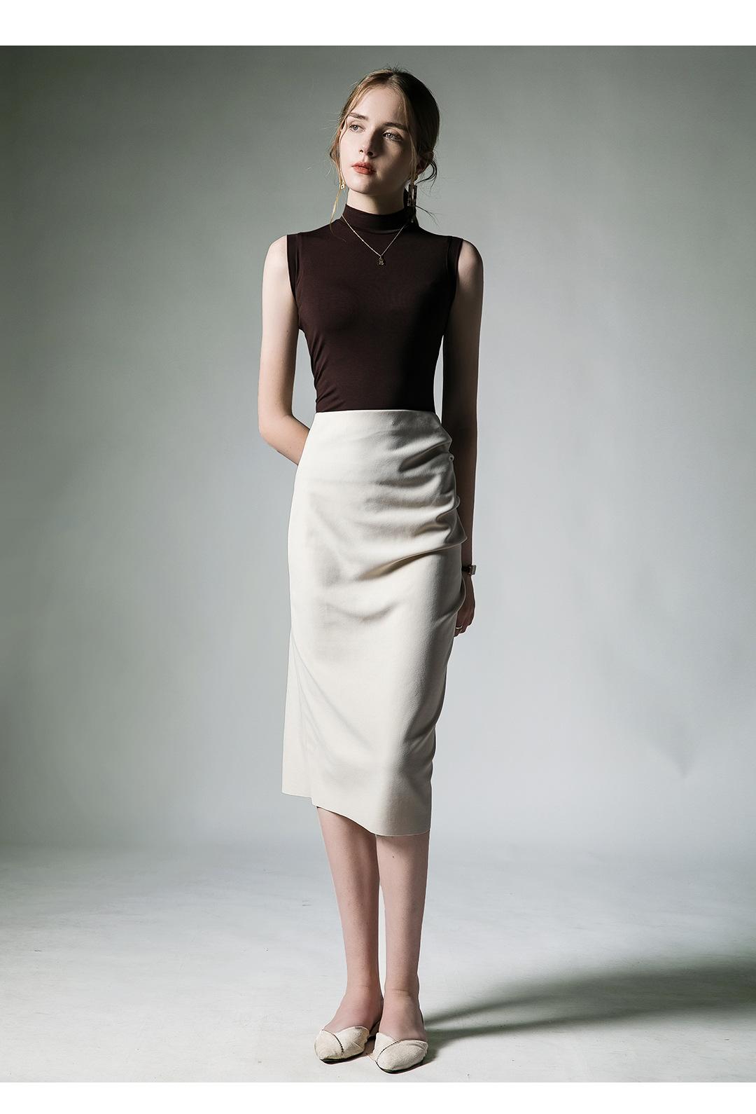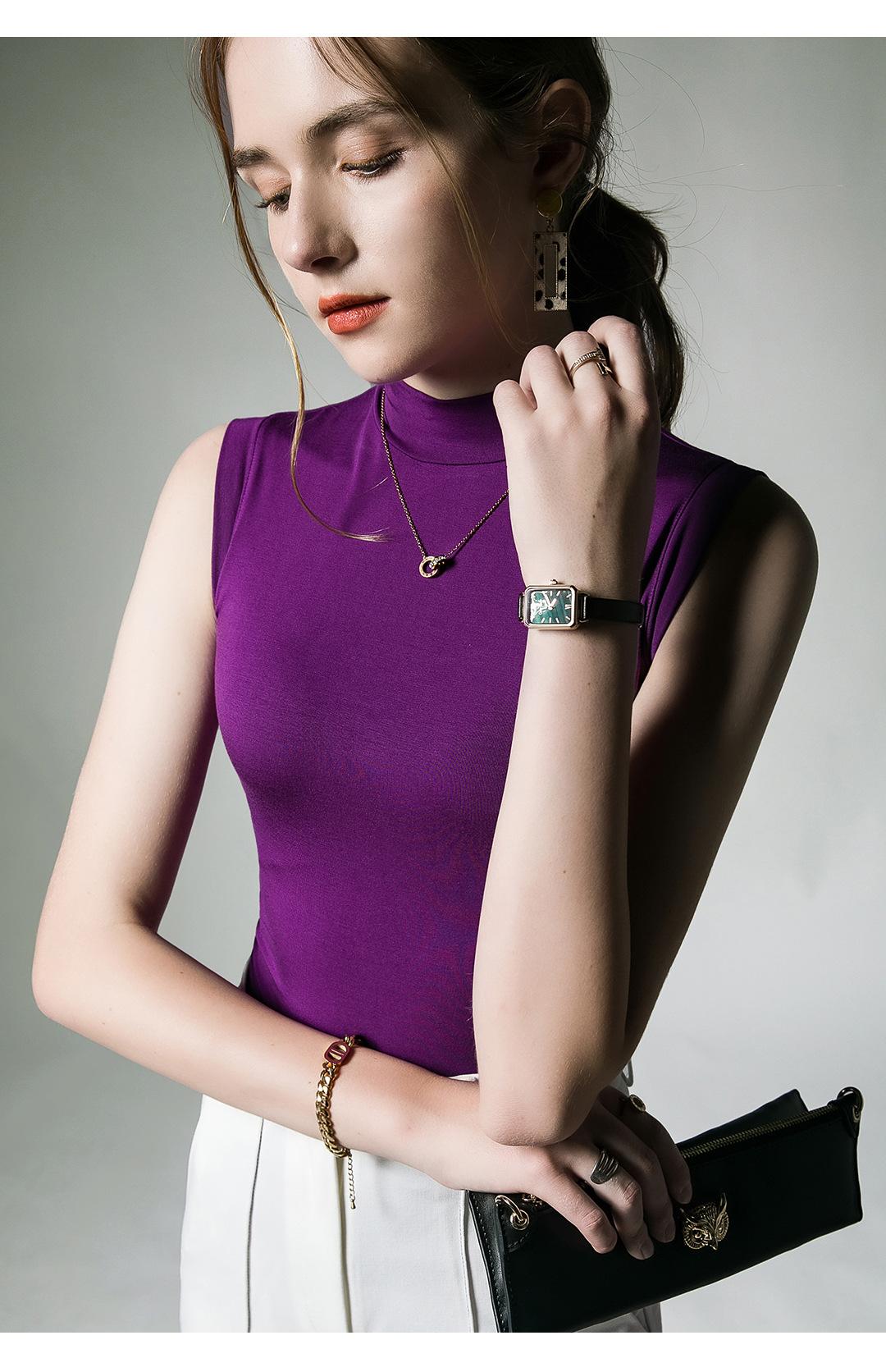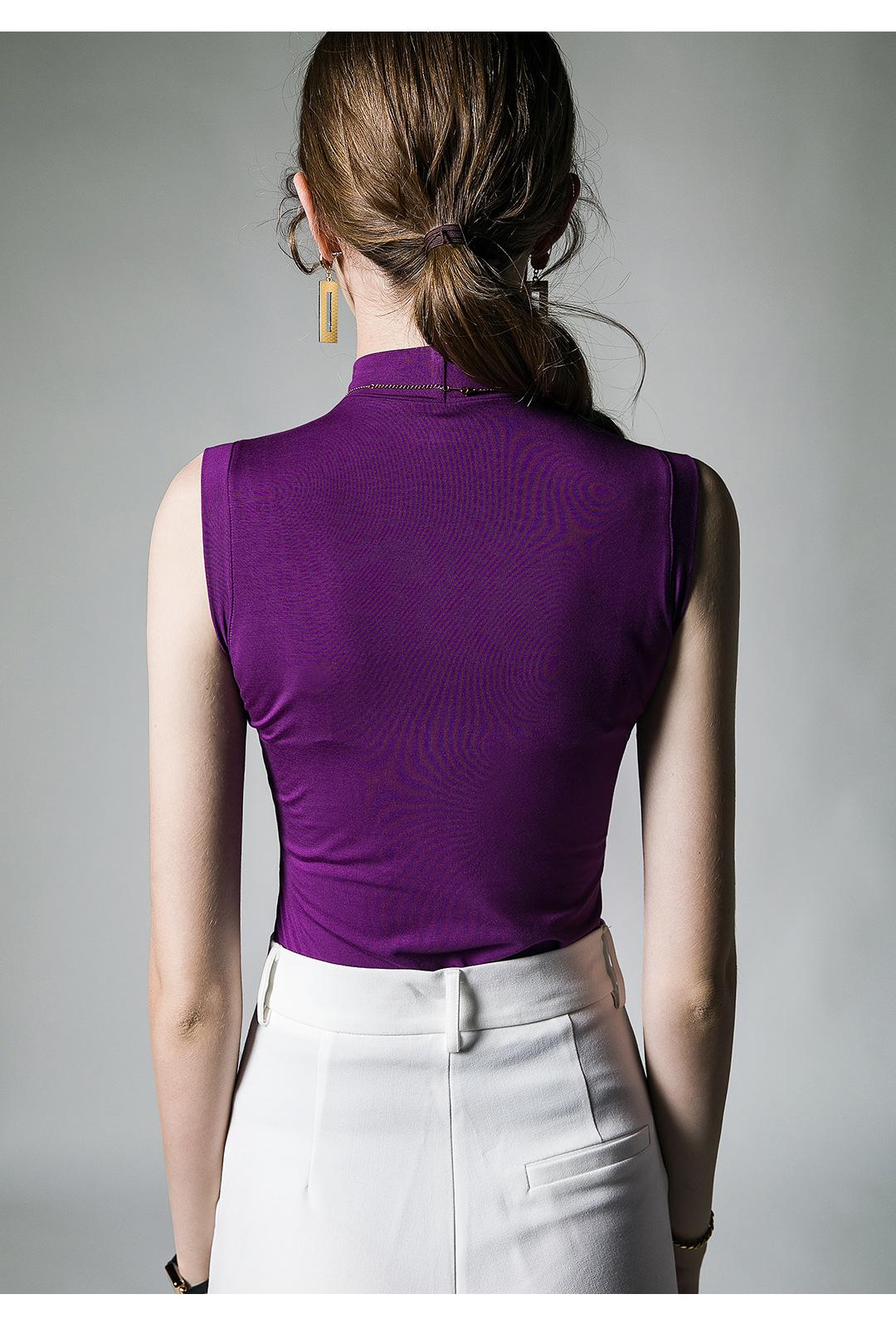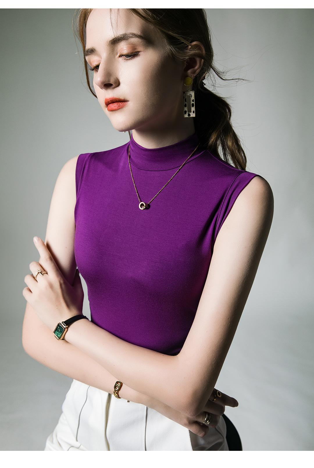 Camisa básica de otoño sin mangas con cuello medio alto, sencilla y generosa, de color sólido, ajustada, estilo occidental, pequeña.