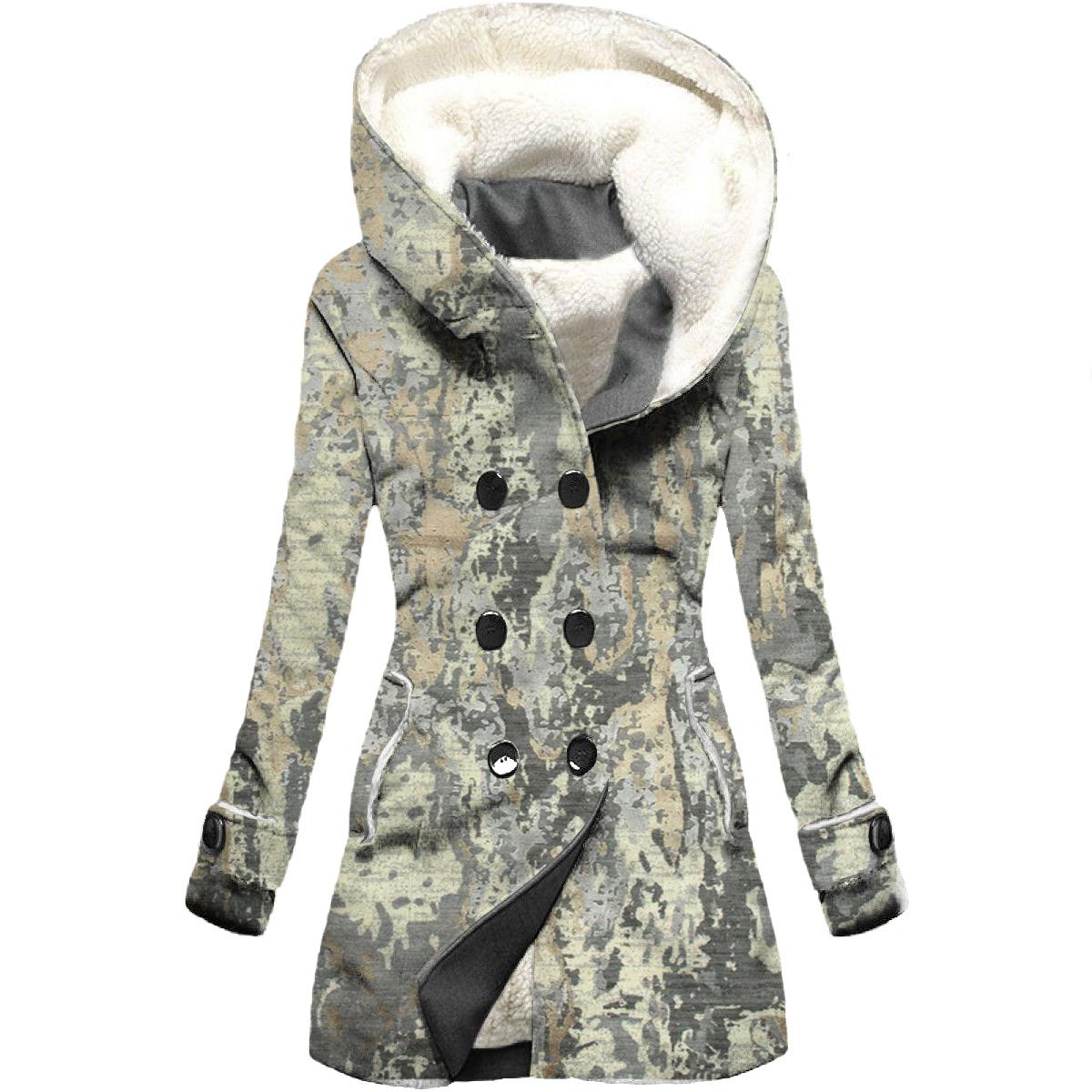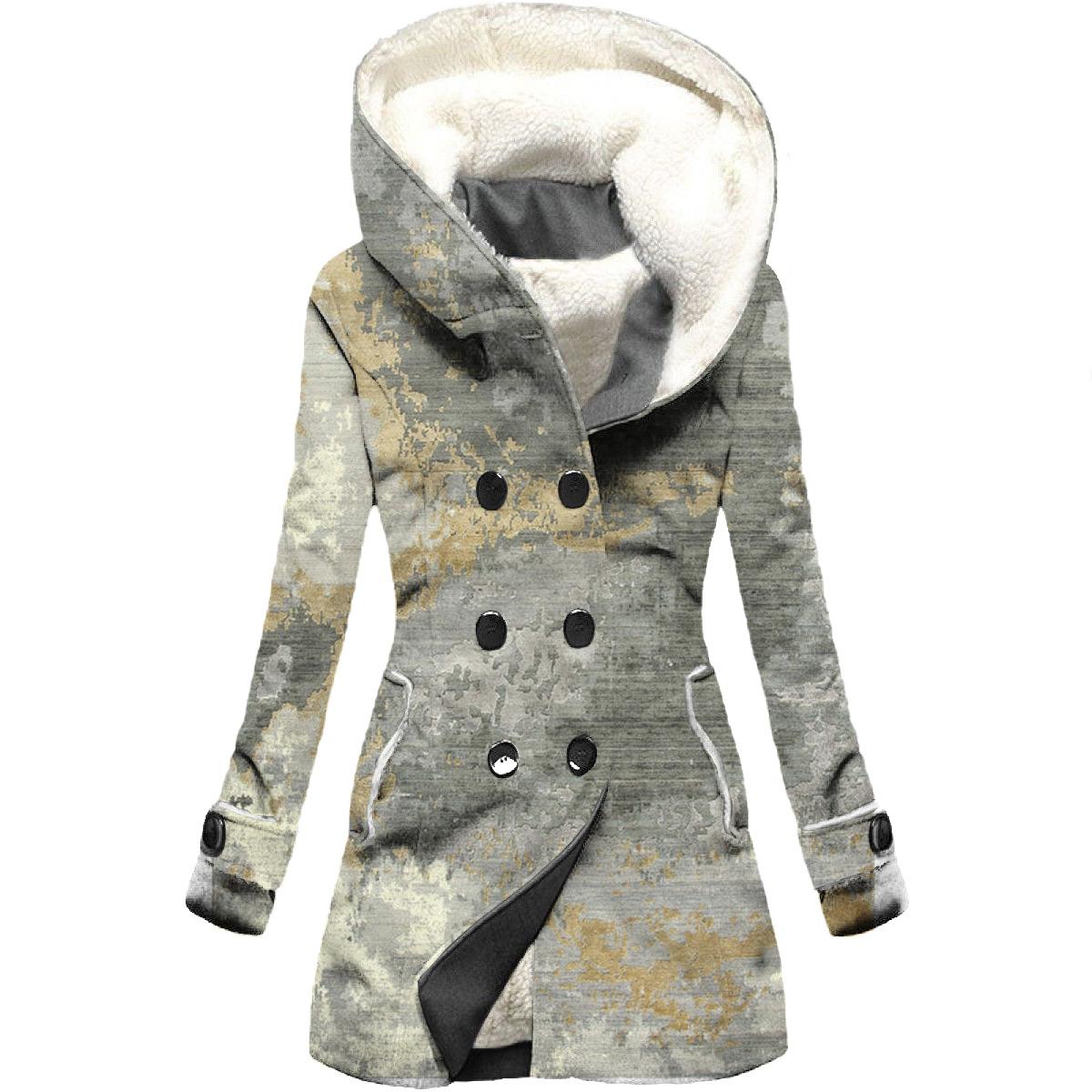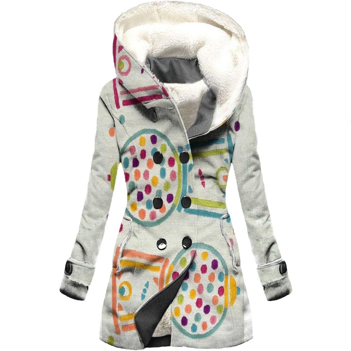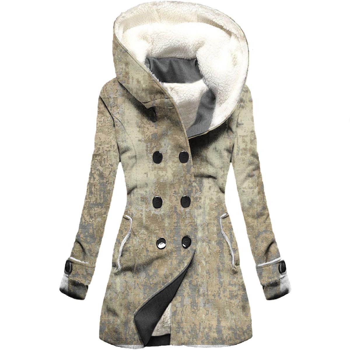Abrigo trench nuevo y moderno para mujer transfronterizo 2023 invierno felpa estilo europeo y americano abrigo con capucha estampado a rayas 3D al por mayor