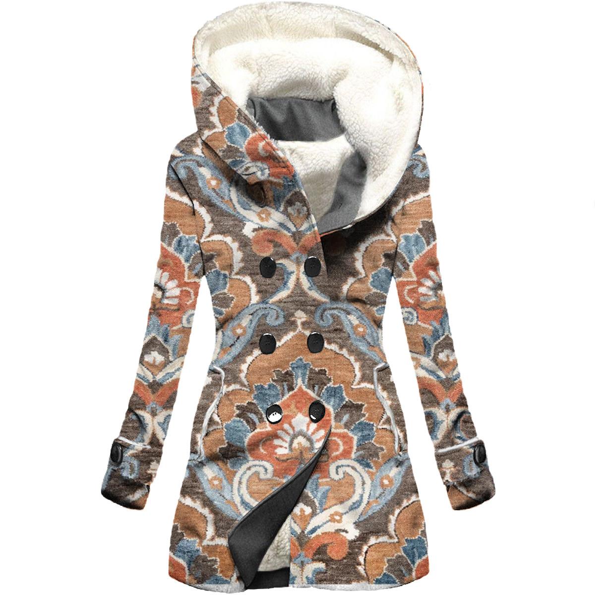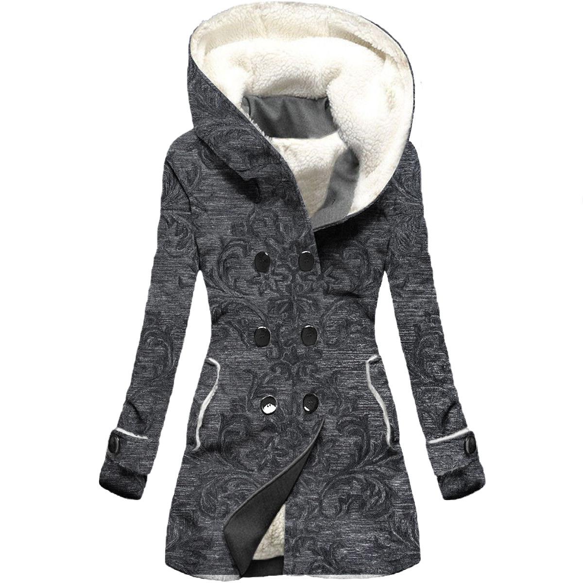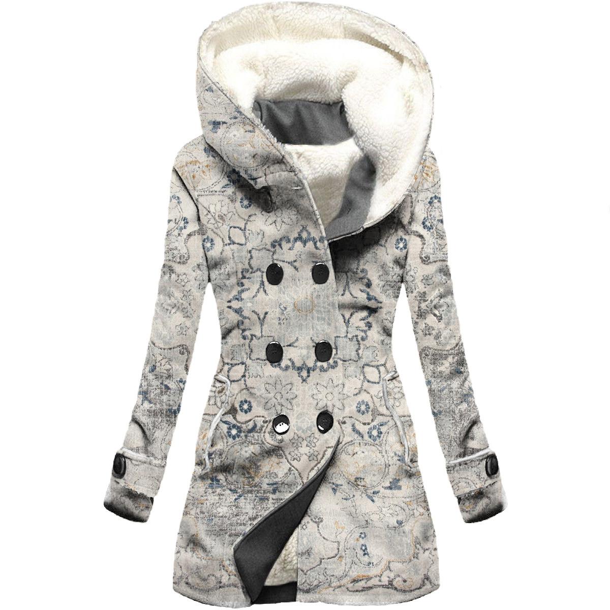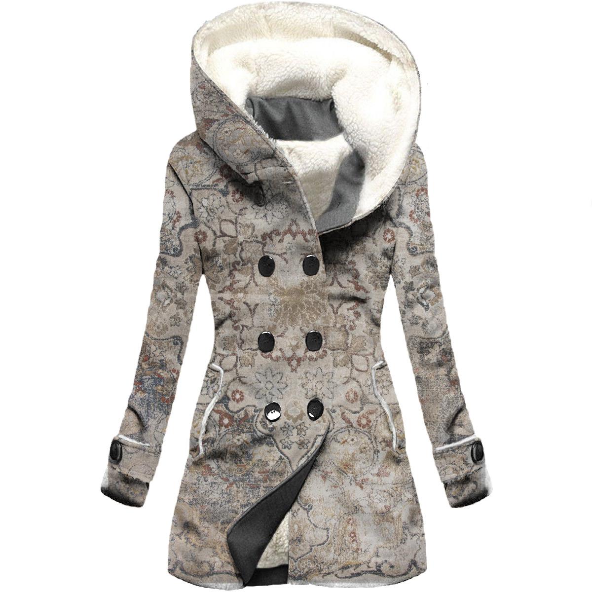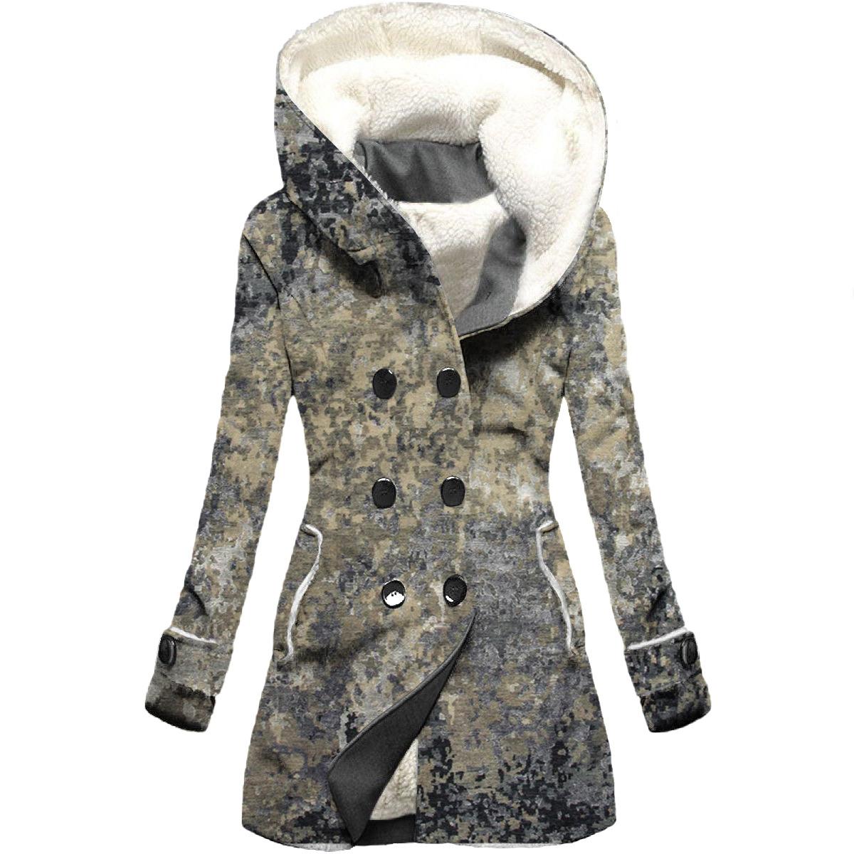 Abrigo trench nuevo y moderno para mujer transfronterizo 2023 invierno felpa estilo europeo y americano abrigo con capucha estampado a rayas 3D al por mayor
