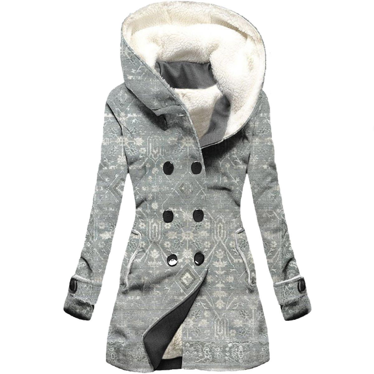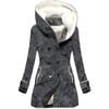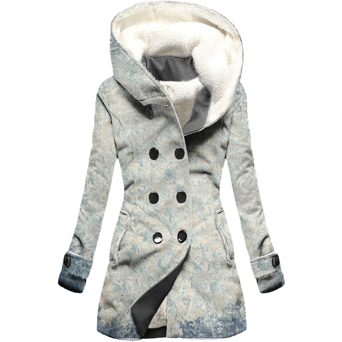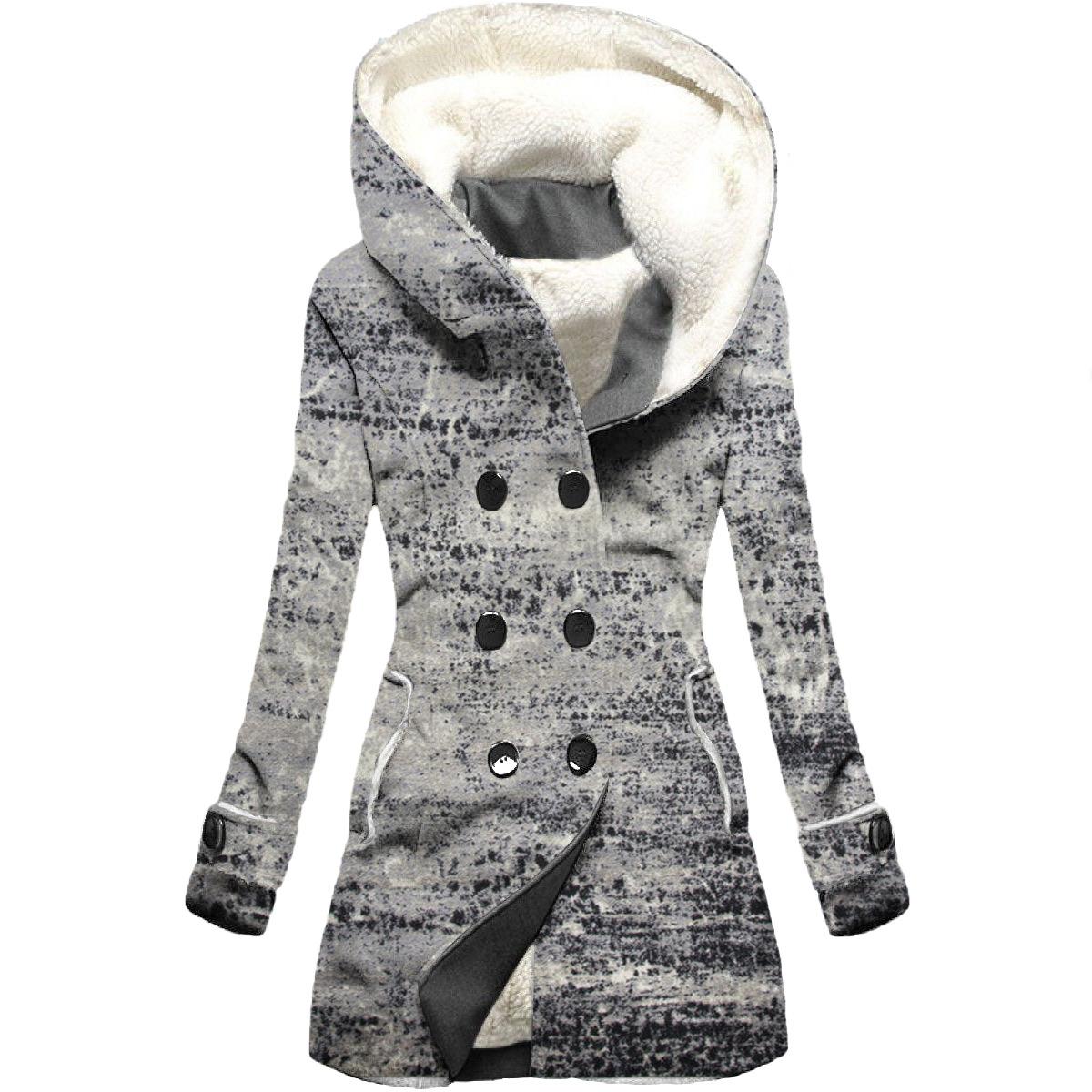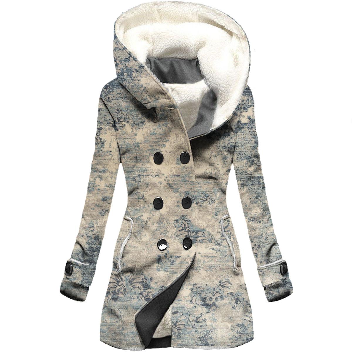 Abrigo trench nuevo y moderno para mujer transfronterizo 2023 invierno felpa estilo europeo y americano abrigo con capucha estampado a rayas 3D al por mayor