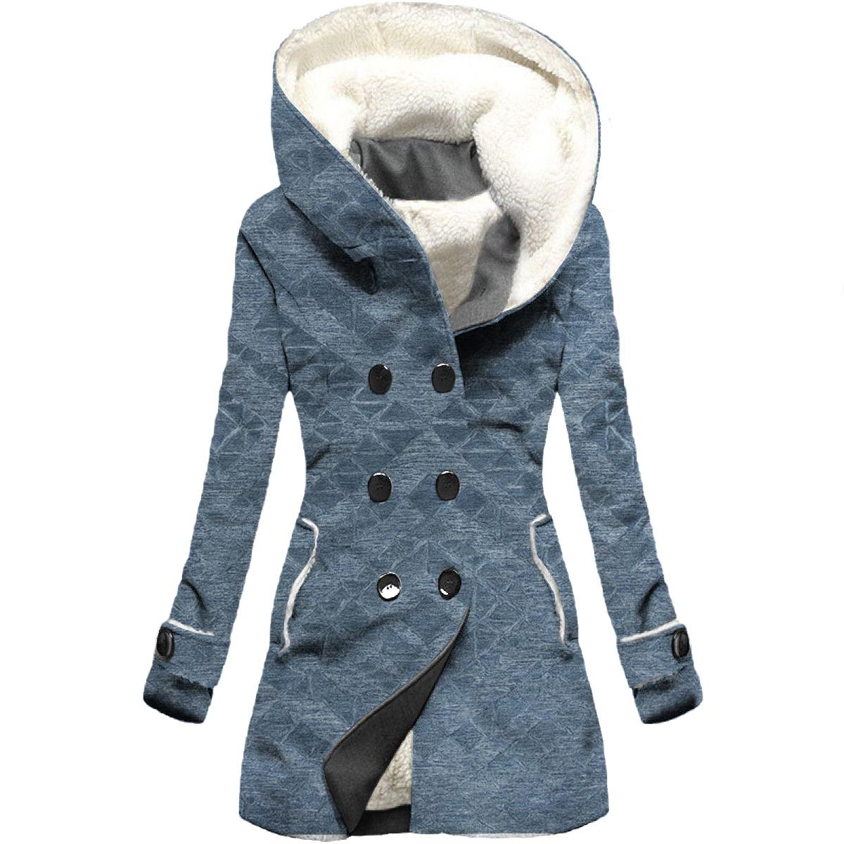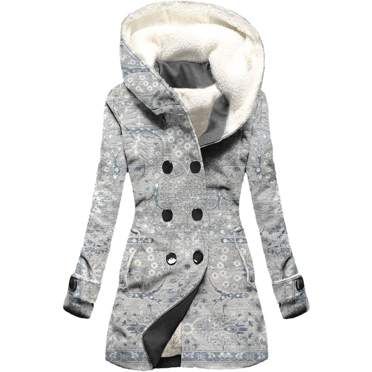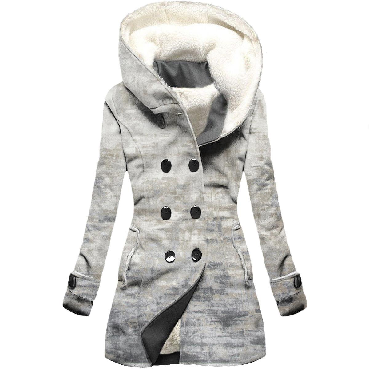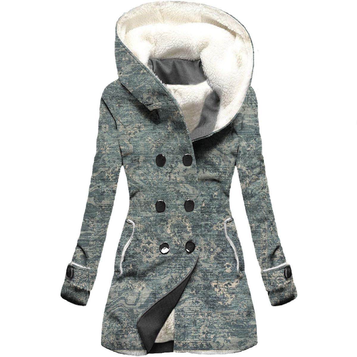 Abrigo trench nuevo y moderno para mujer transfronterizo 2023 invierno felpa estilo europeo y americano abrigo con capucha estampado a rayas 3D al por mayor