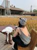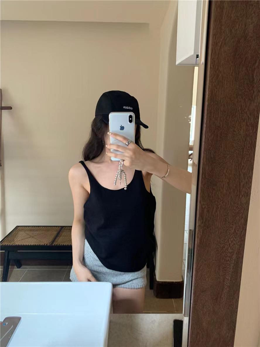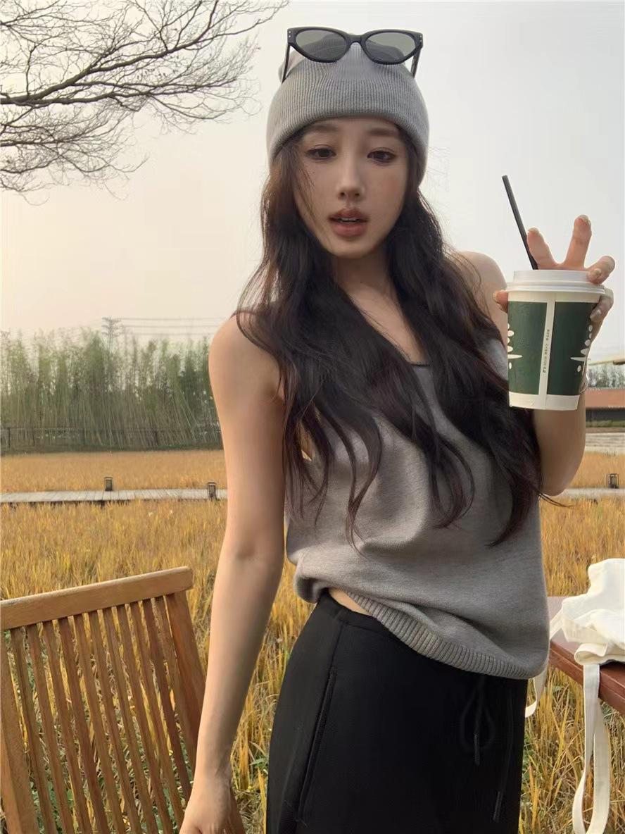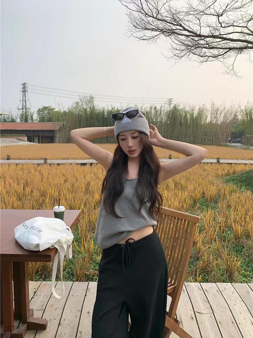 Top de punto sin mangas, sexy, con espalda descubierta y tirantes pequeños para mujer, estilo Spice Girl, de verano, ajustado, único y exquisito, color gris, para uso exterior.