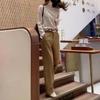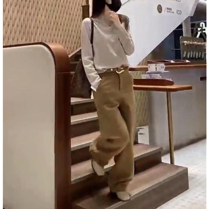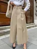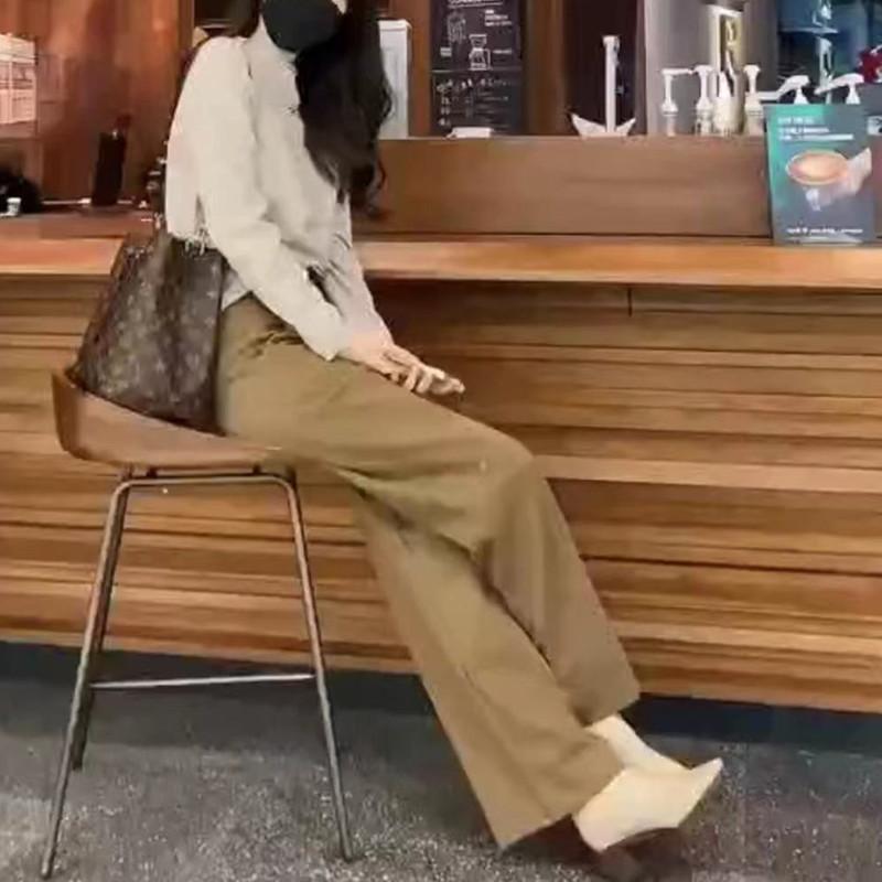 Mai 9019 Damei Aiyuan 2025 Primavera Nuevo Estilo Europeo Pantalones de Pierna Ancha de Cintura Alta para Mujer Caqui Moda Adelgazantes para Mujer