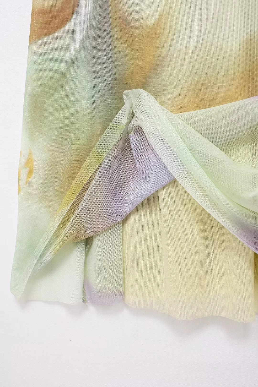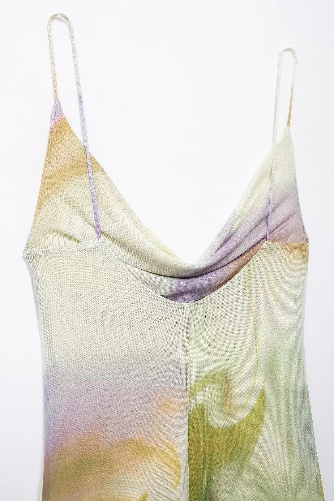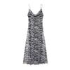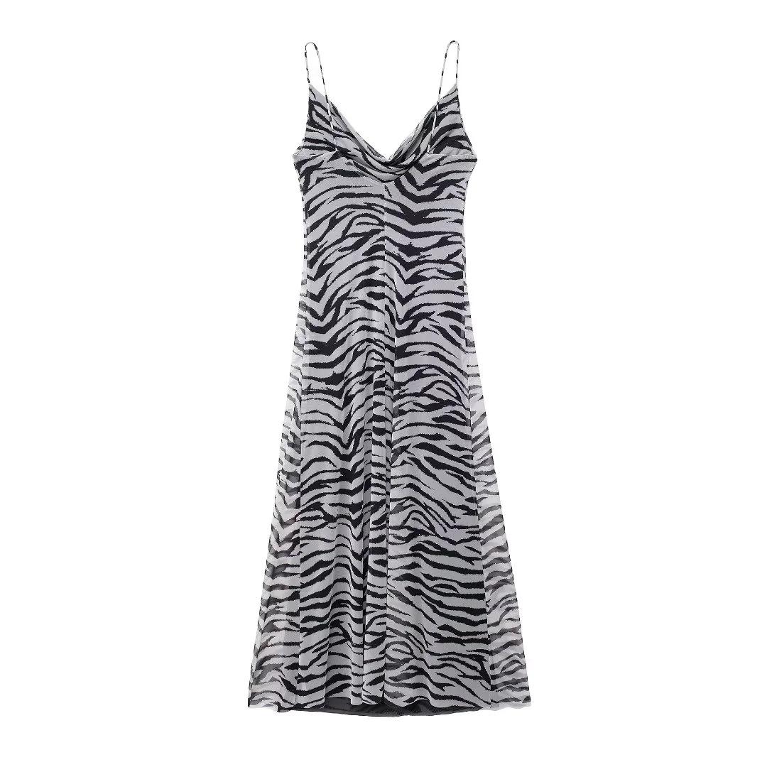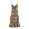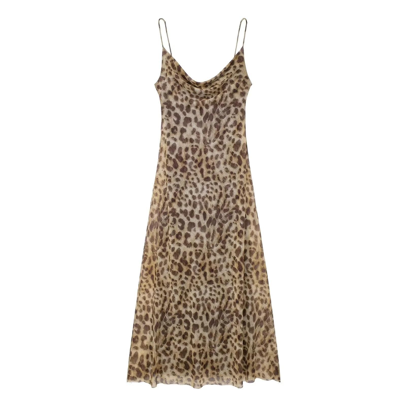 Vestido sexy con estampado de leopardo para mujer, novedad de verano de 2024, vestido de malla escotado con cuello especiado europeo y americano.
