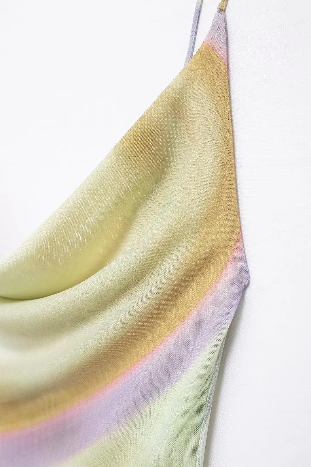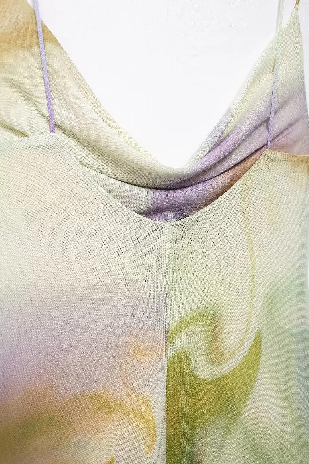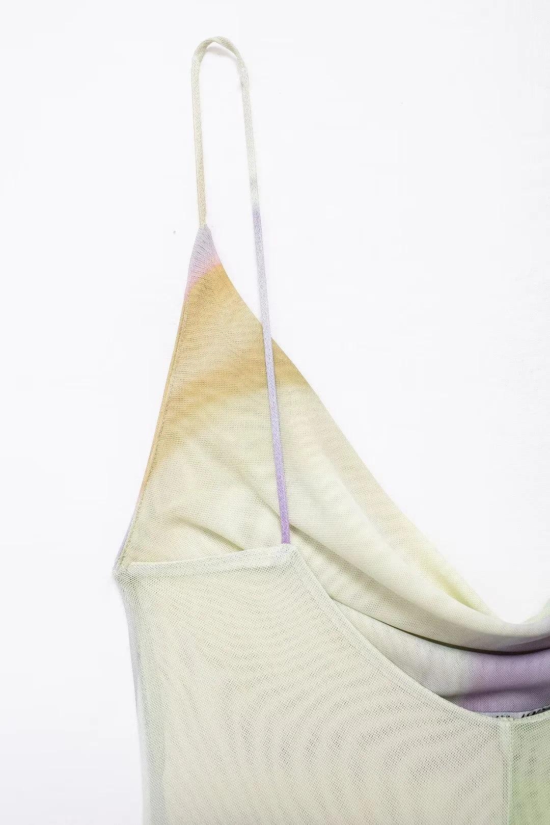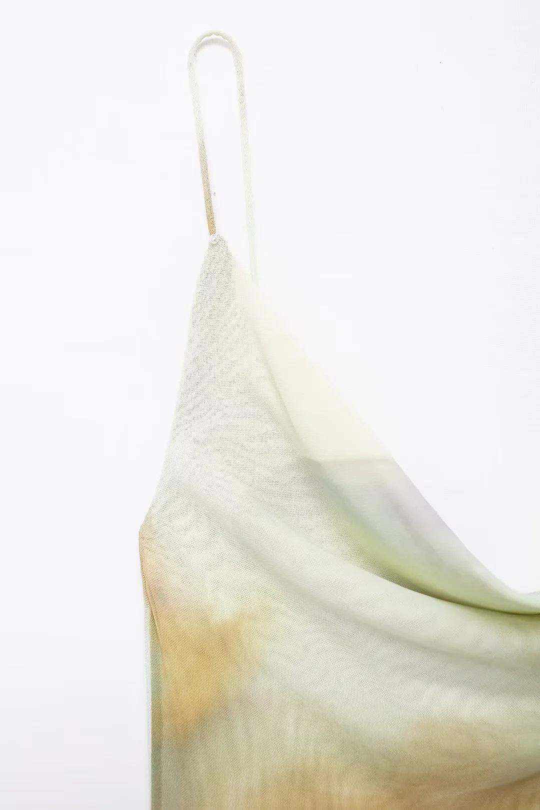 Vestido sexy con estampado de leopardo para mujer, novedad de verano de 2024, vestido de malla escotado con cuello especiado europeo y americano.
