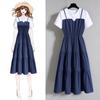 Moda Femenina de Talla Grande Falda Larga Falsa de Dos Piezas con Tirantes Verano 2023 Hermana Gorda Adelgazante de Cintura Vestido de Manga Corta para Mujer