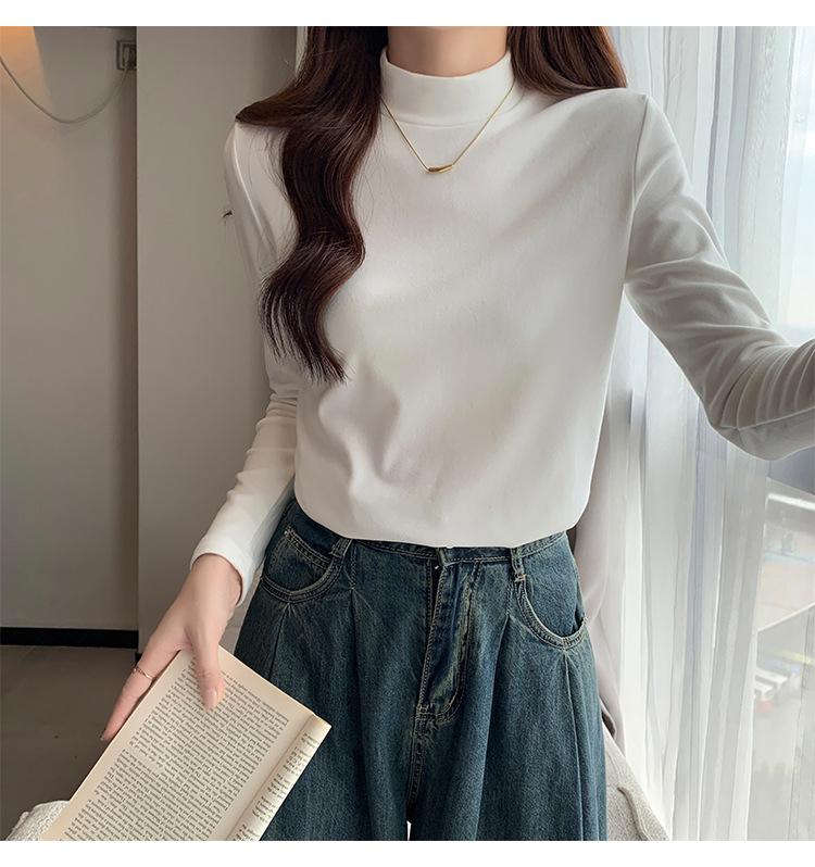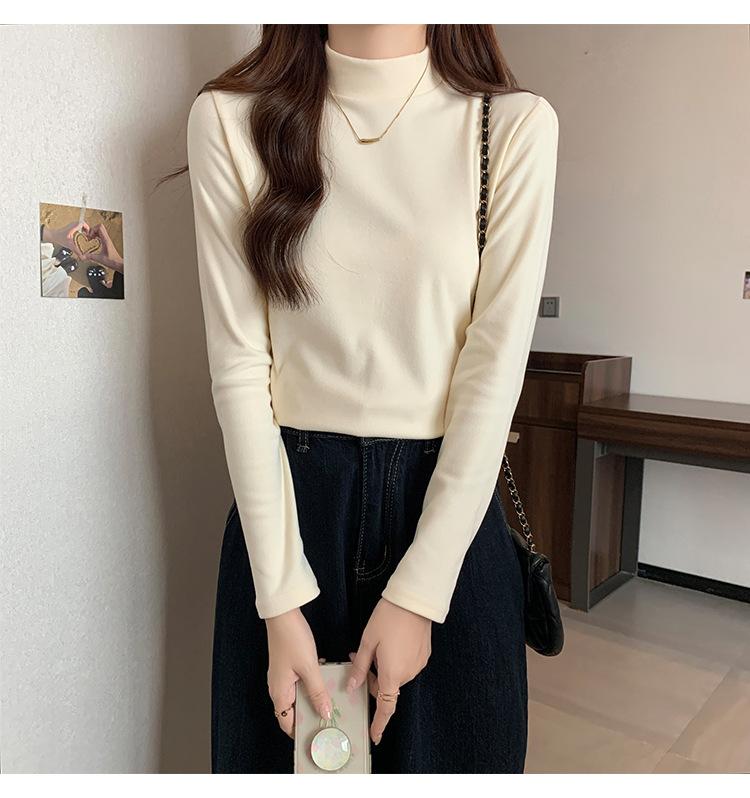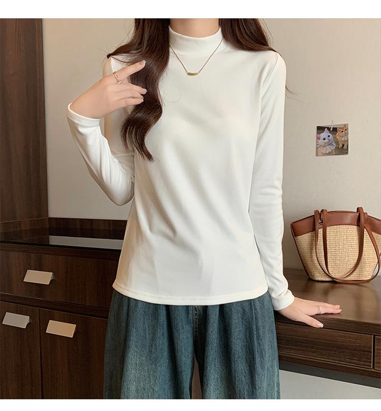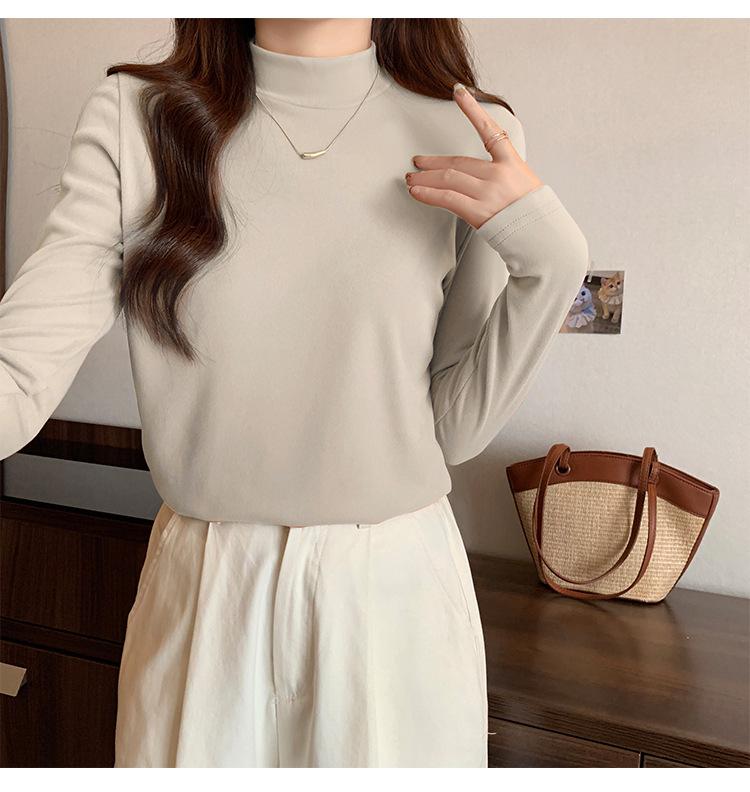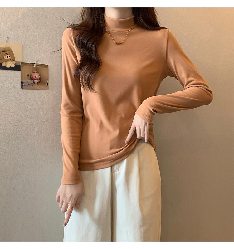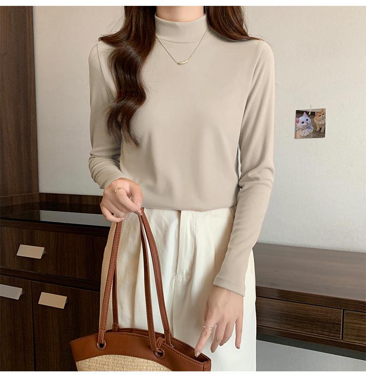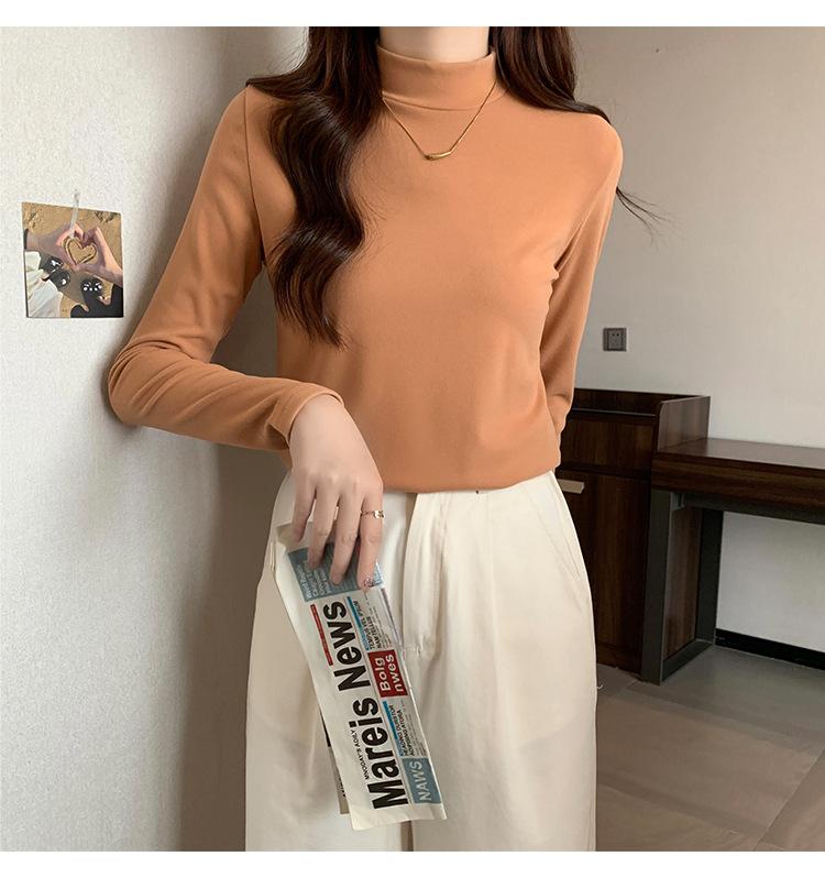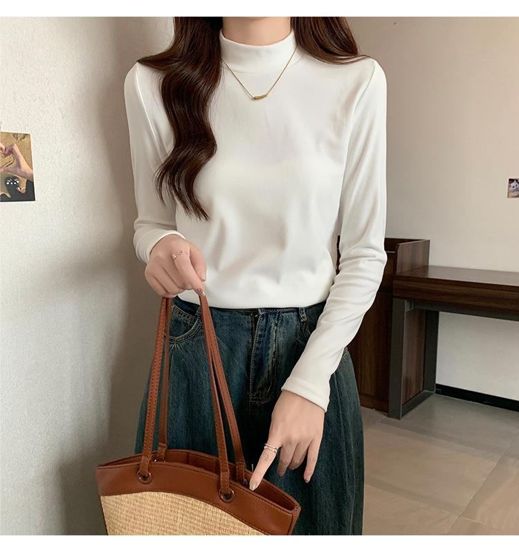 Camiseta básica de cuello alto de terciopelo de doble cara engrosada y cálida para mujer, ropa interior de otoño e invierno con forro polar, moda femenina