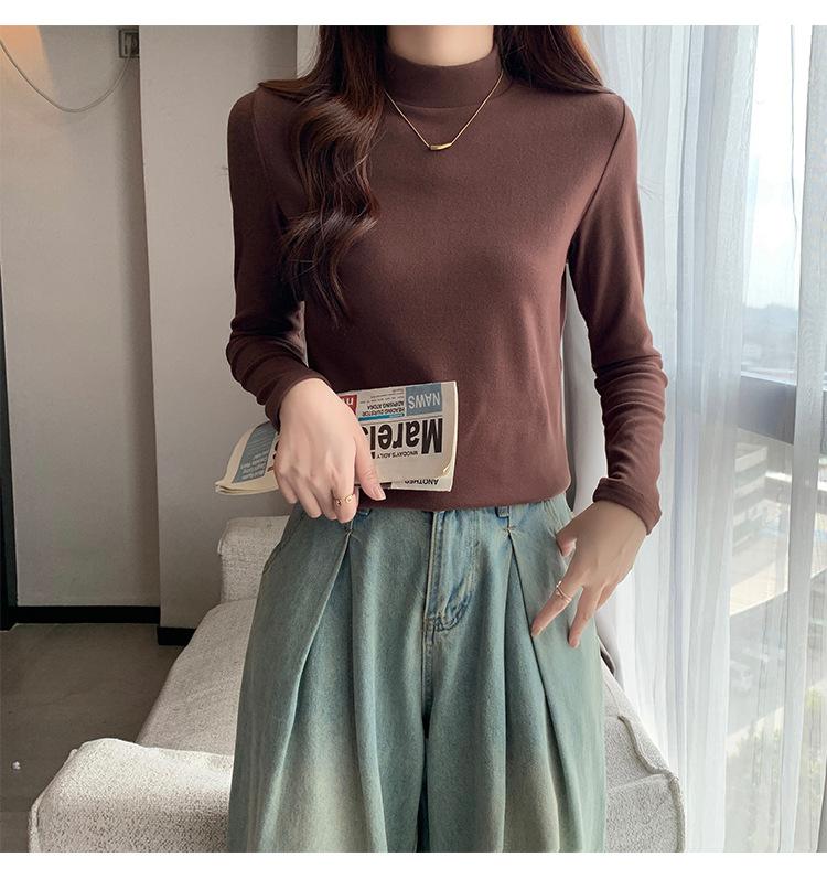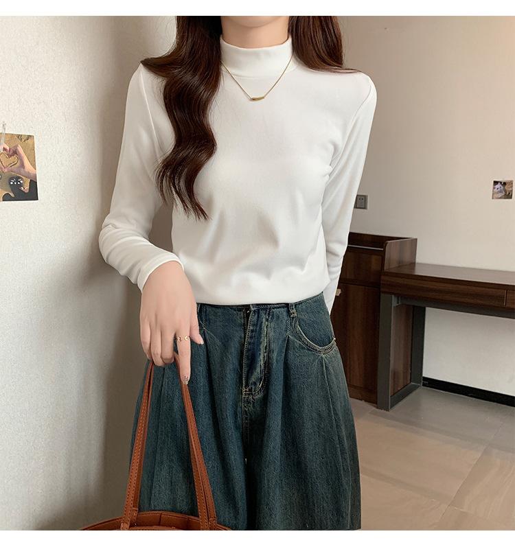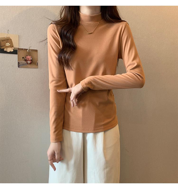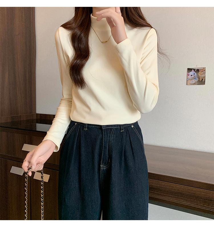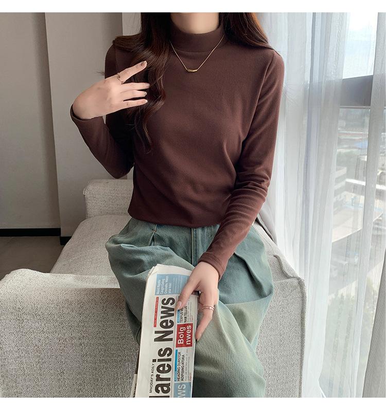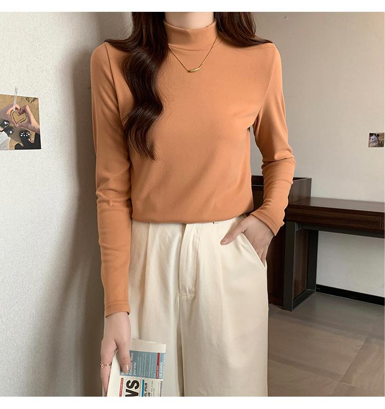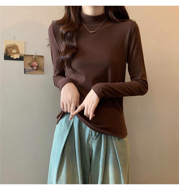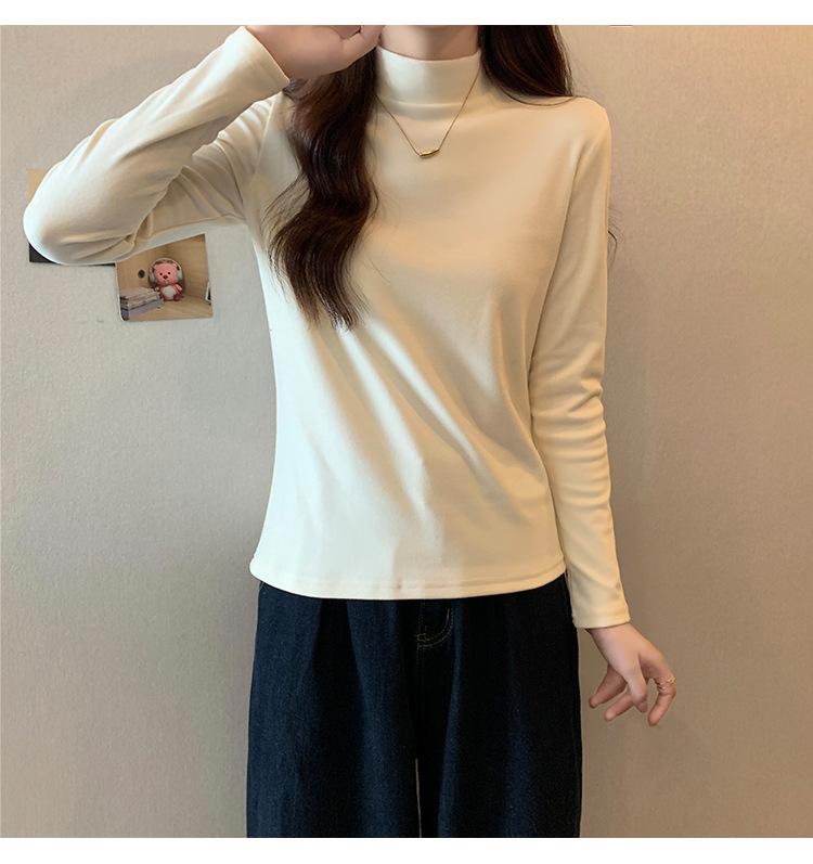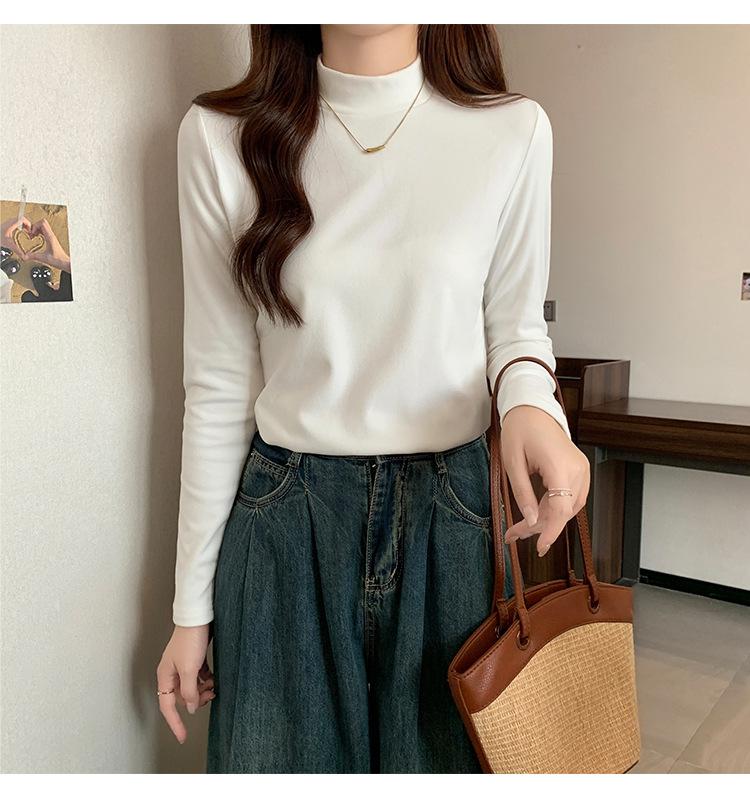 Camiseta básica de cuello alto de terciopelo de doble cara engrosada y cálida para mujer, ropa interior de otoño e invierno con forro polar, moda femenina